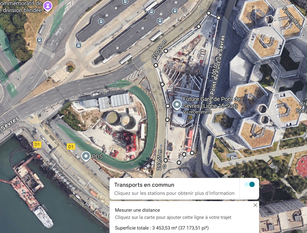La zone fait environ 6 607 m², sérieusement je ne peux pas croire qu’on ne peut pas faire plus compacte en prenant sur la rue, d’autres chantiers en Asie sont bien plus circoncit même pour une station de métro.