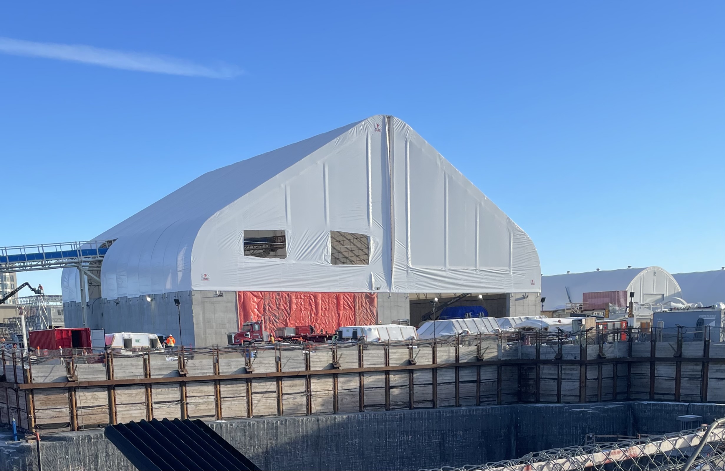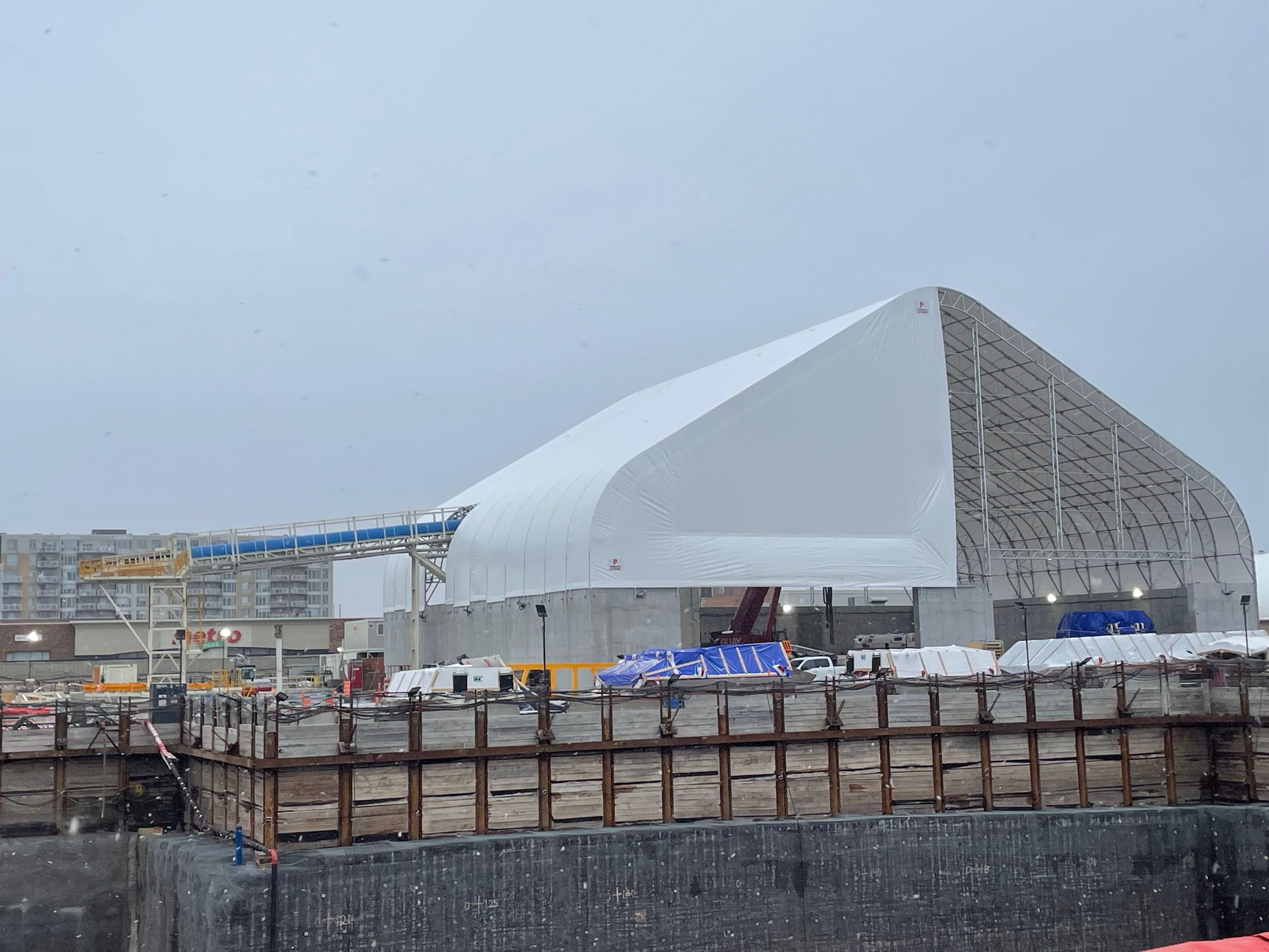 Voici l’abri qui couvrira la roche broyée par le tunnelier de la ligne Bleue et transportée jusque-là via un système de convoyeurs.
