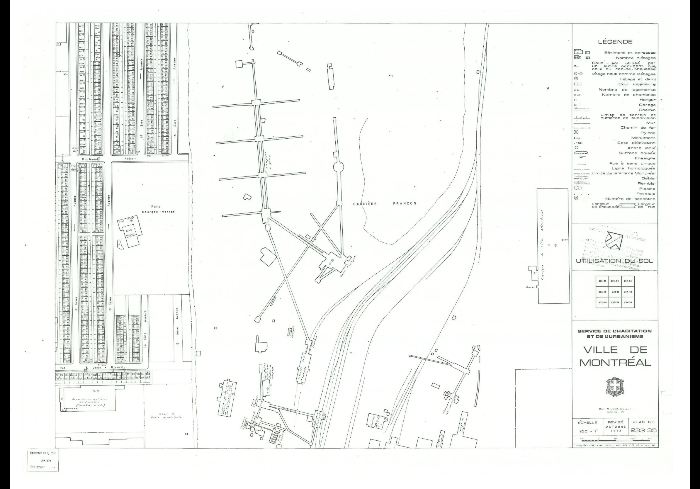 Il reste qu’on à gardé une carrière en opération à proximité d’un secteur résidentiel. Bien qu’au début de son exploitation, la côte Saint-Michel était encore un village, il était possible de prévoir que la ville rattraperait le site. Une fois l’urbanisation complète, on se retrouvait avec une situation quasi absurde. Sur cette carte de 1973 on voit la cohabitation entre des maisons en rangées et une carrière en exploitation.