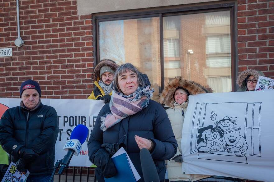 Véronique Laflamme, porte-parole du Front d’action populaire en réaménagement urbain (FRAPRU), lors d’une conférence de presse de la Fédération des locataires de HLM du Québec (FLHLMQ)