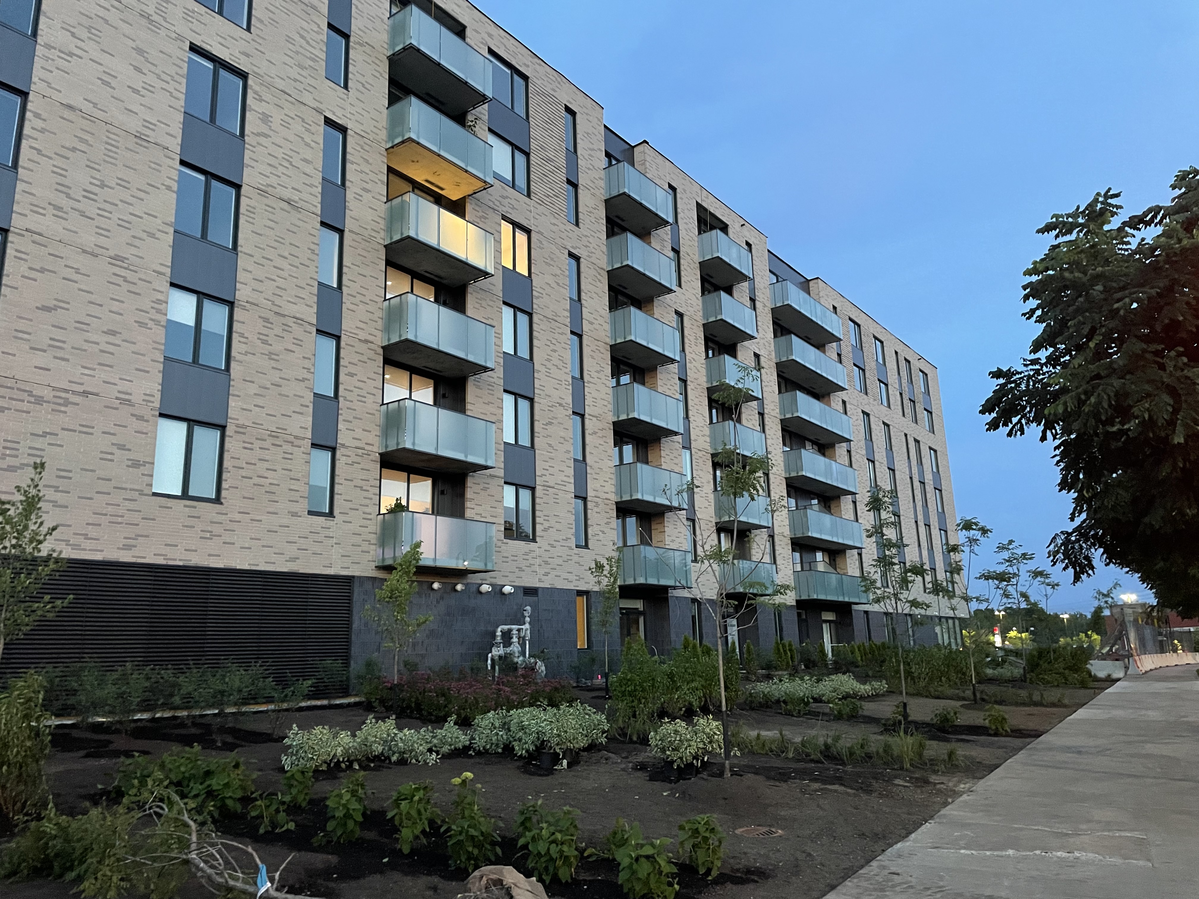 Le redéveloppement d’un espace de stationnement en un ensemble d’immeubles d’habitation met l’accent sur le verdissement et la revitalisation du site.