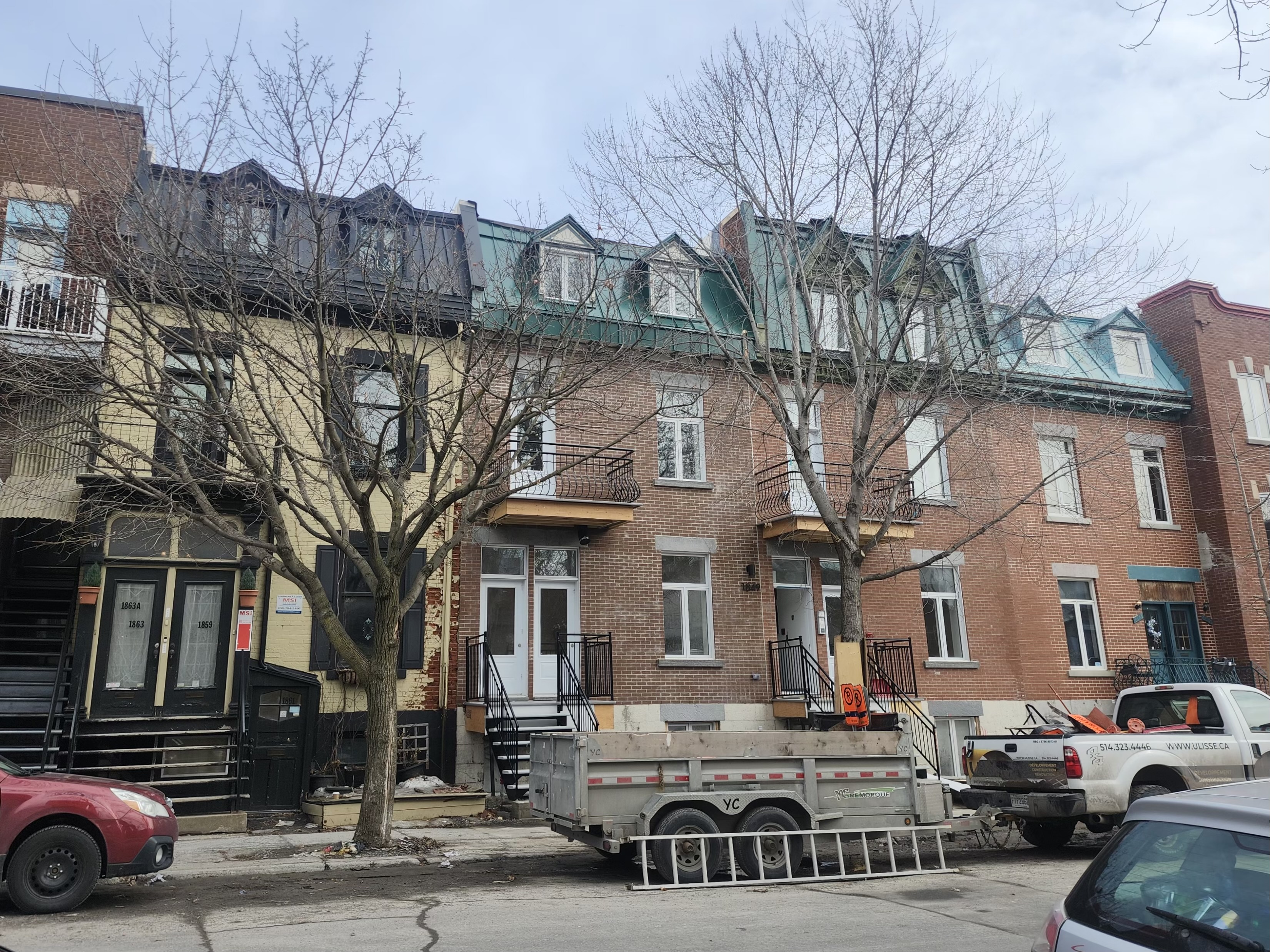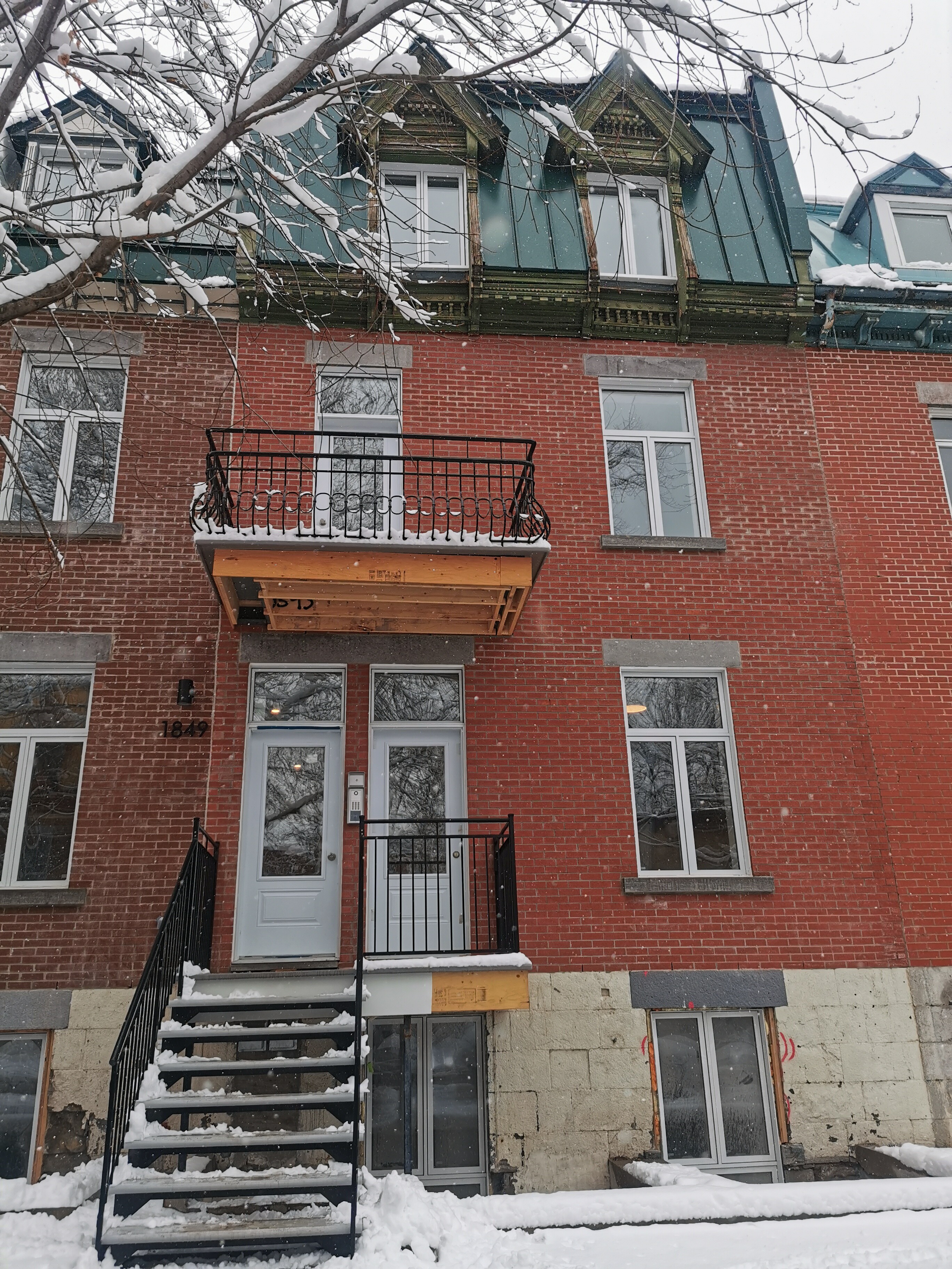 Bâtiment, face à la rue Labrecque, agrandir en aire de bâtiment de 300 m² sur 3 étages afin d’aménager 32 logements sociaux avec services. En façade de Saint-André, remplacer les portes et fenêtres. Travaux tels qu’aux plans approuvés.