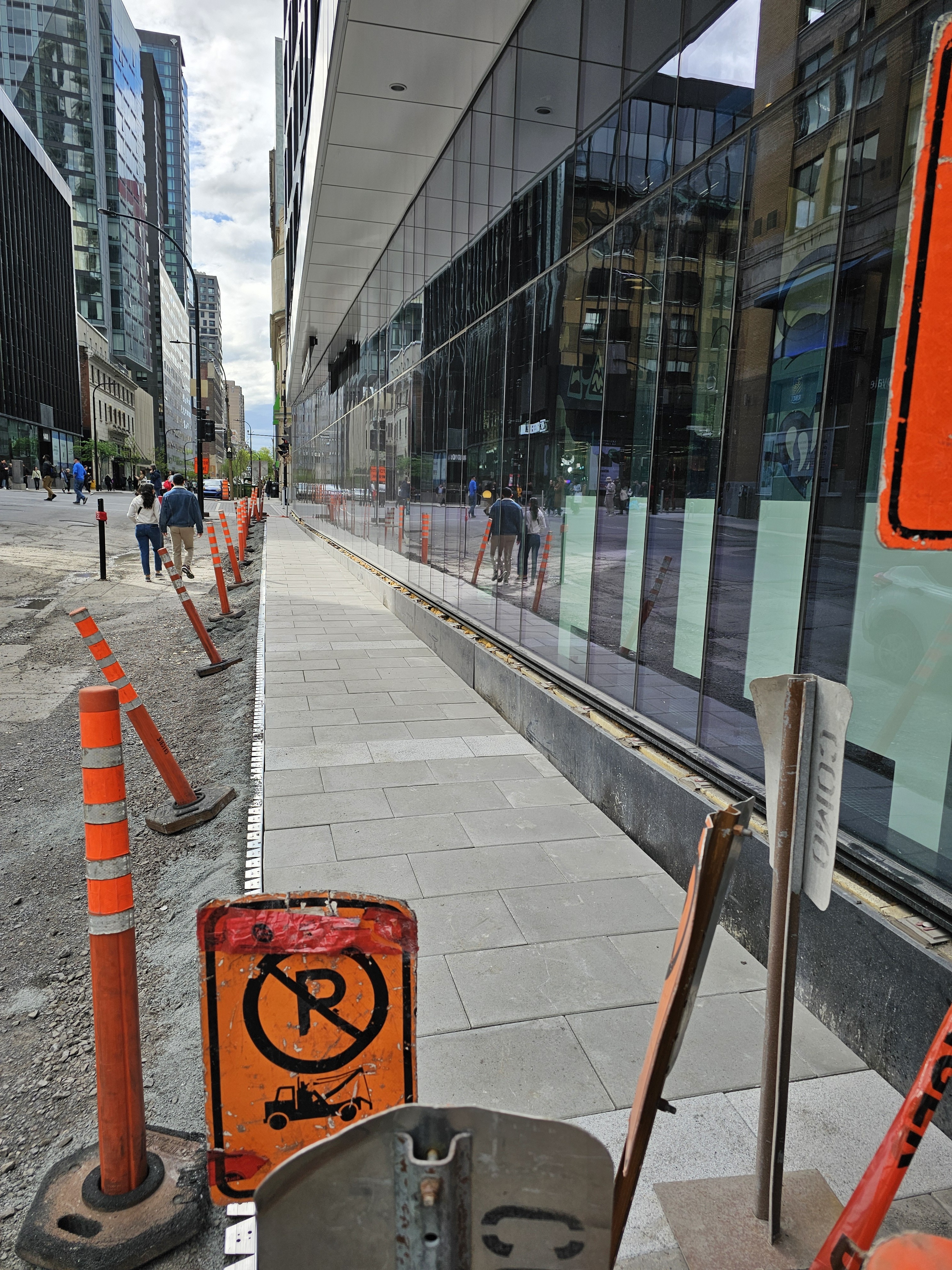 J’adore ces nouveaux bollards minces, beaucoup moins intrusifs et plus malléables que les gros cônes lourds habituels. On voit ces nouveaux bollards un peu partout et c’est rafraîchissant.