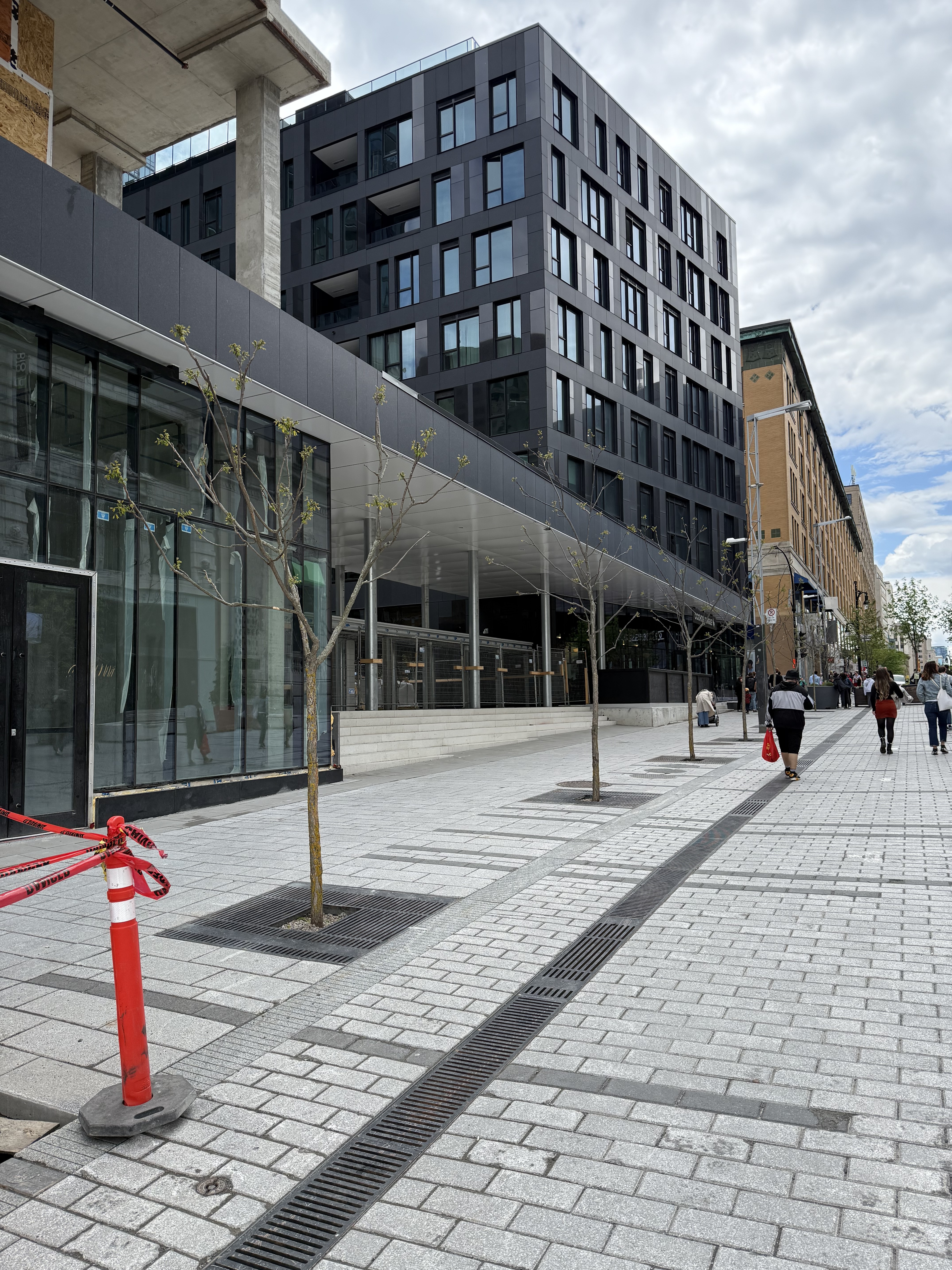 Cela améliore l’expérience piéton, spécialement pour l’entrée locataire qui est au fond (porte et adresse 1235 de Bleury); par contre l’entrée devient officiellement inutilisable pour les livraisons et contracteurs ponctuels.
