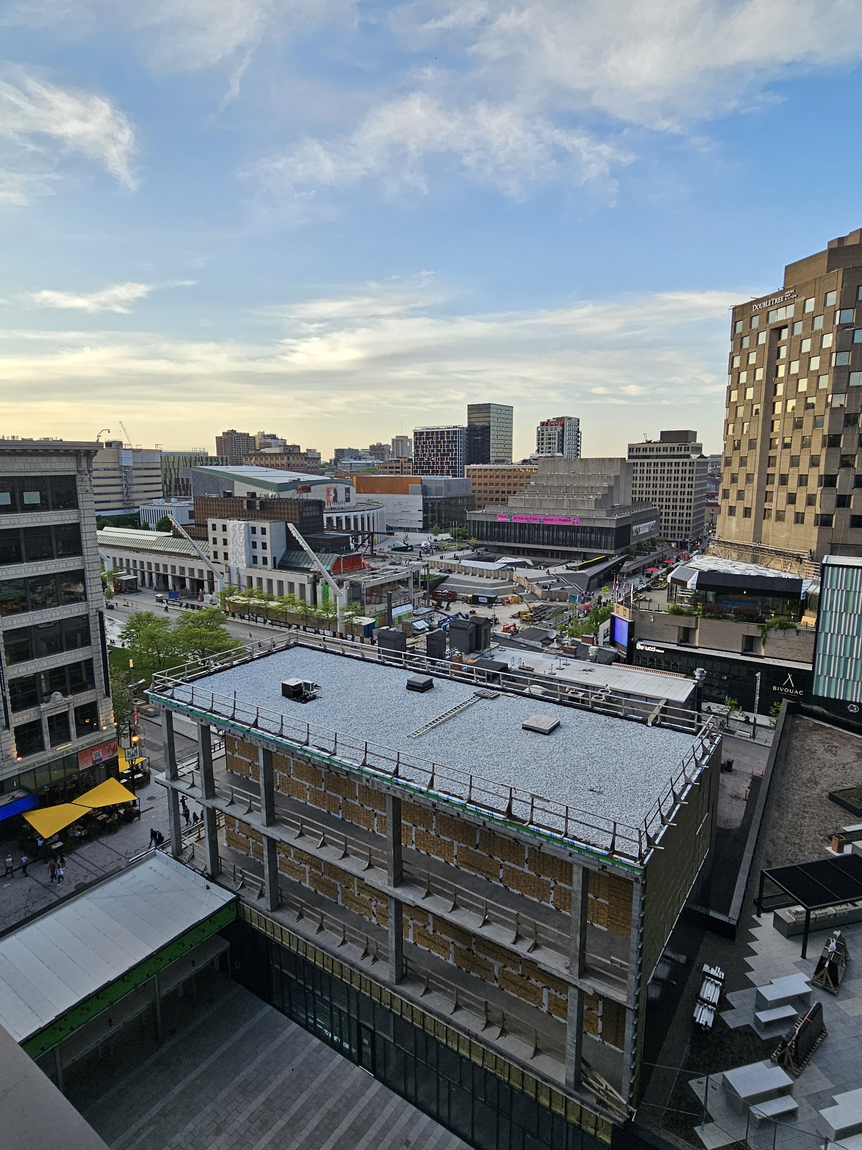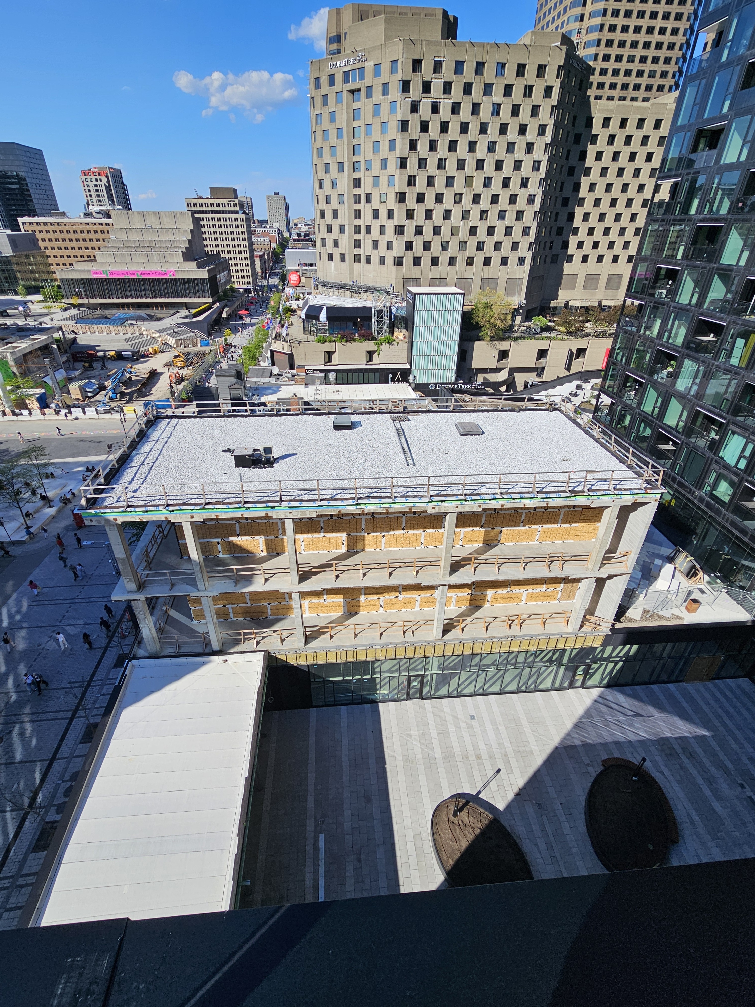 Est-ce qu’ils vont nous laisser ce squelette dégueulasse en plein milieu du quartier des spectacles encore longtemps? à Paris ou New York la ville serait déjà en train d’invectiver les promoteurs. Ou c’est peut-être l’oeuvre d’art “Ilot” qui nous rappelle l’ilot voyageur.