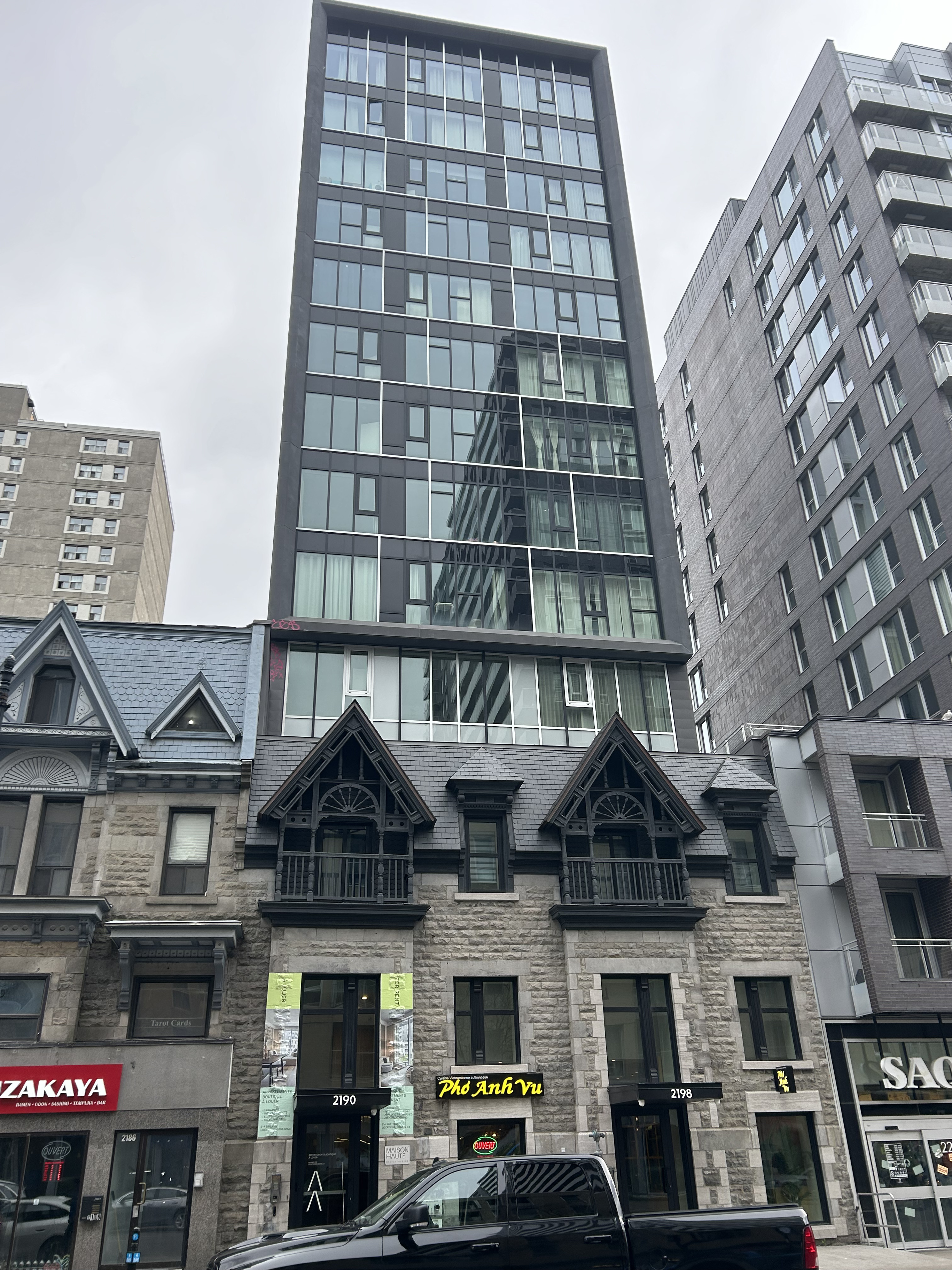 Situé au 2190, rue Sainte-Catherine Ouest, dans le secteur Shaughnessy Village de l’arrondissement Ville-Marie, l’immeuble de 13 étages a été réalisé par Demonfort.