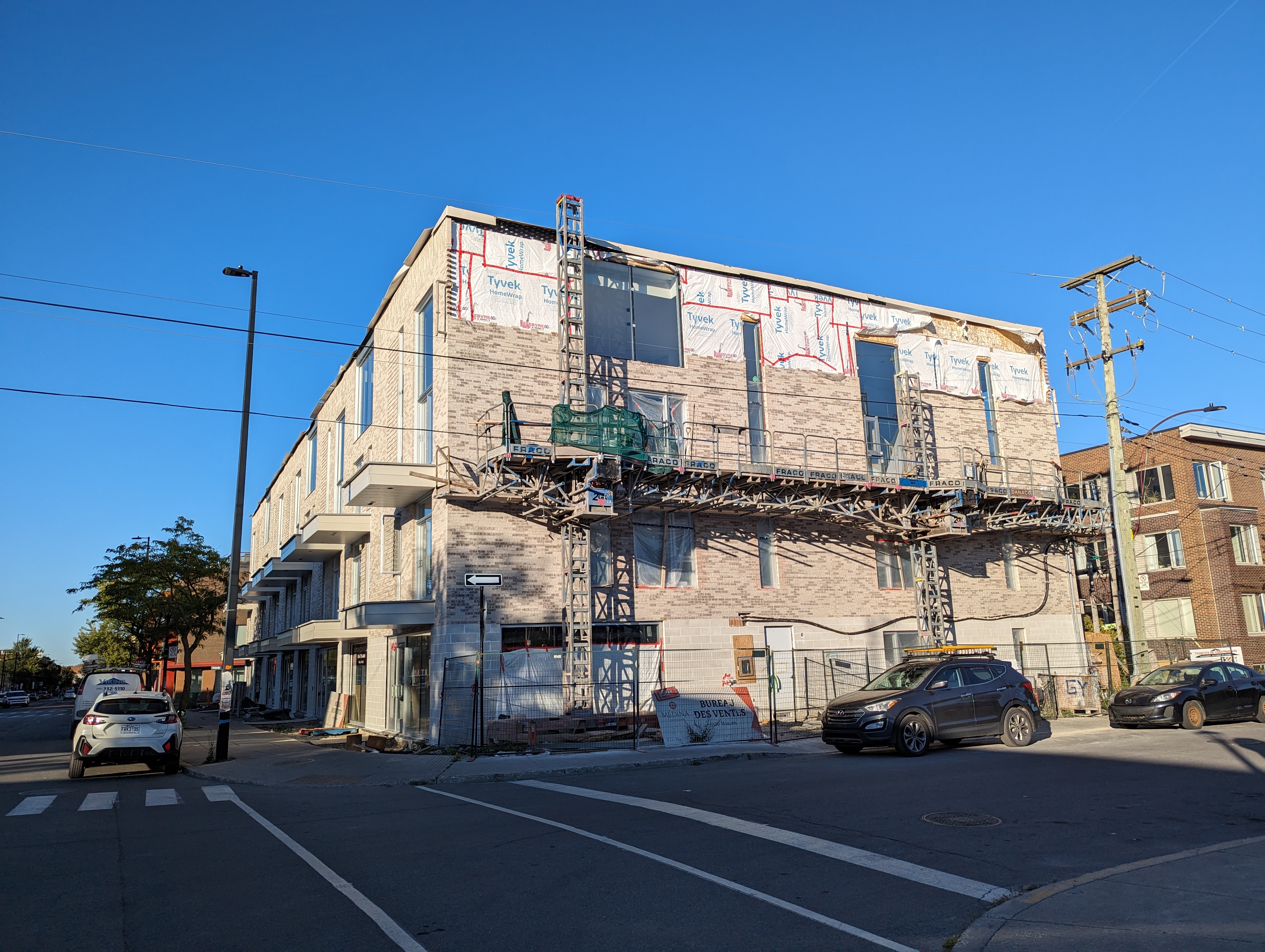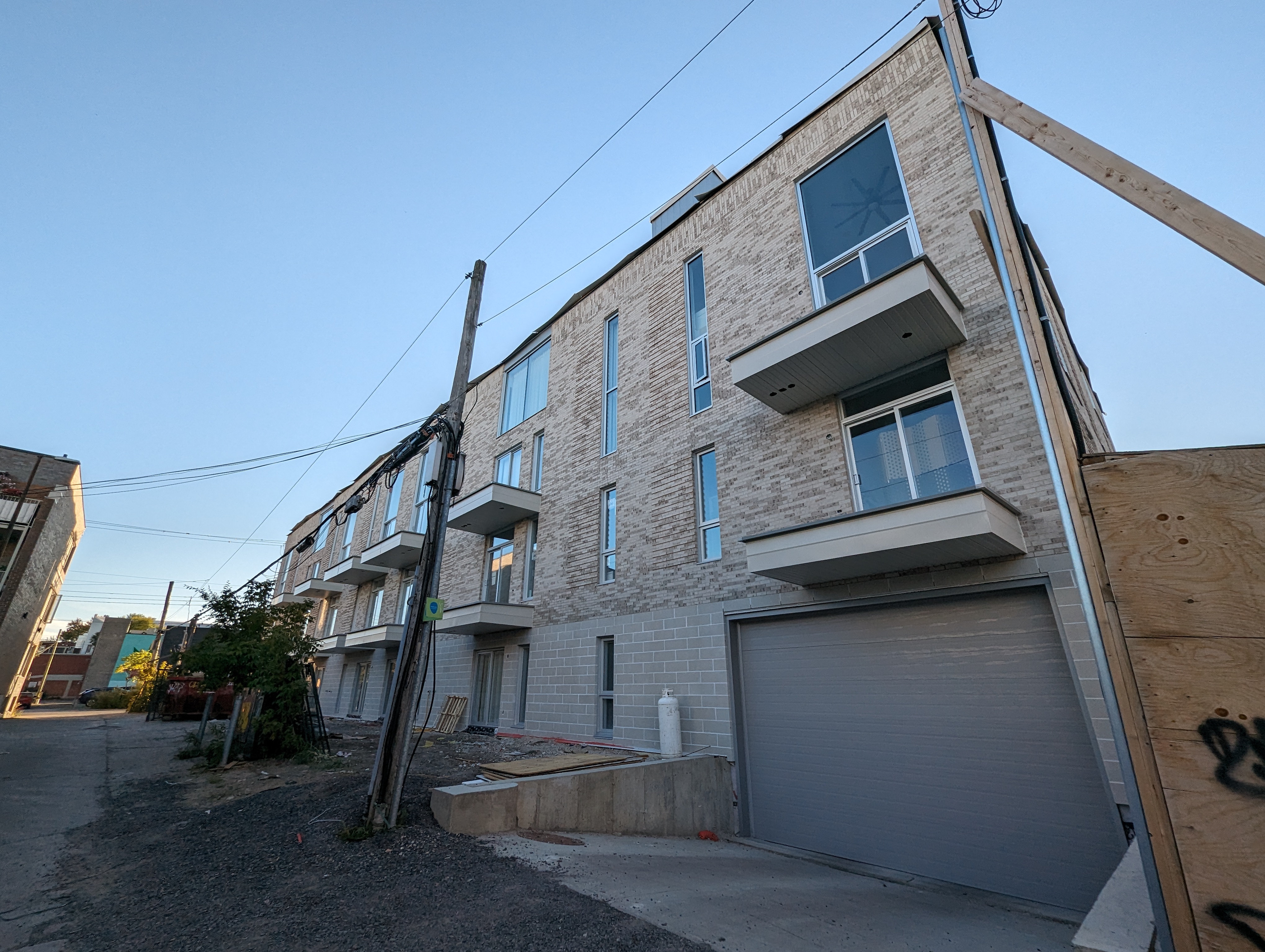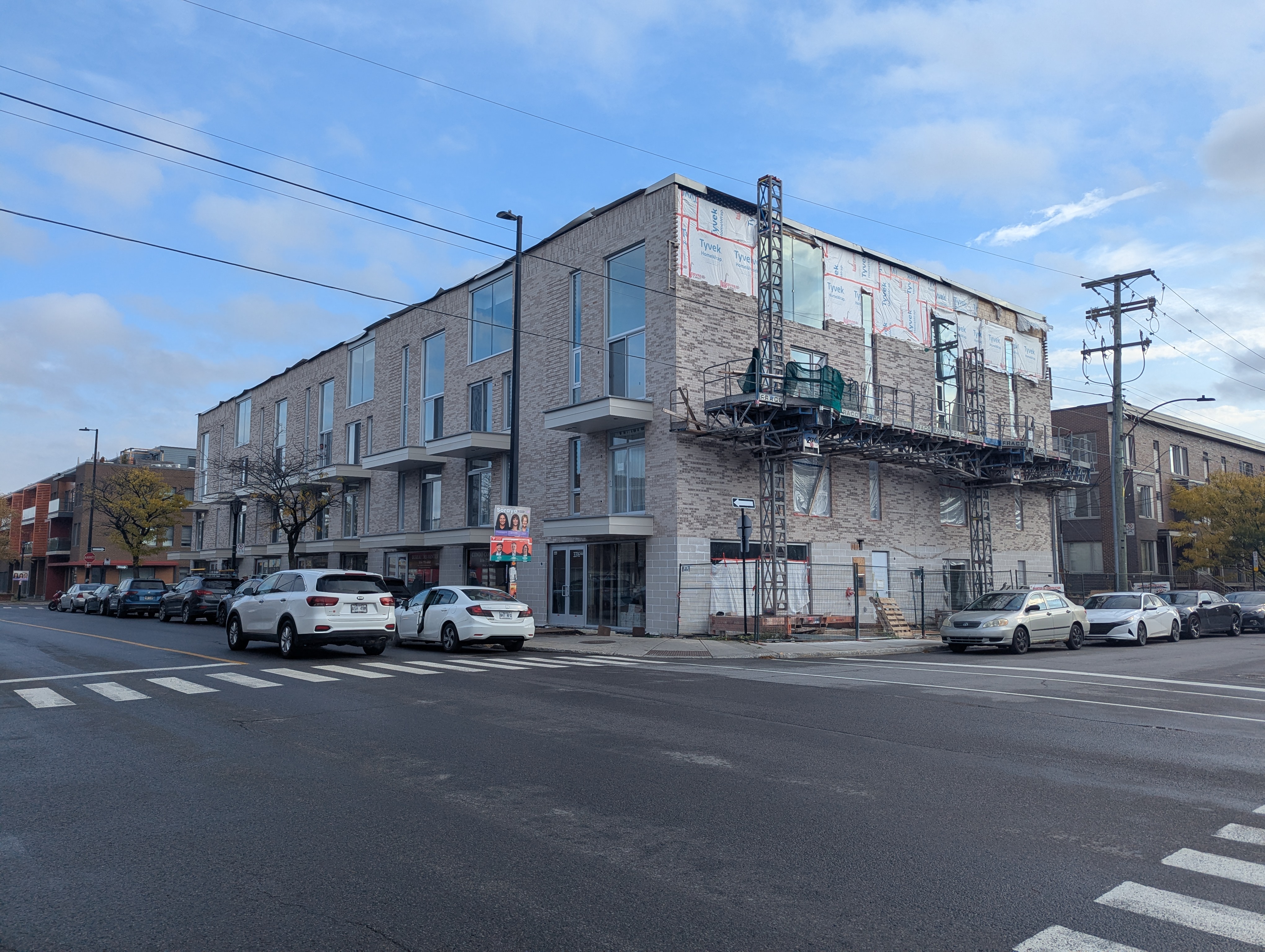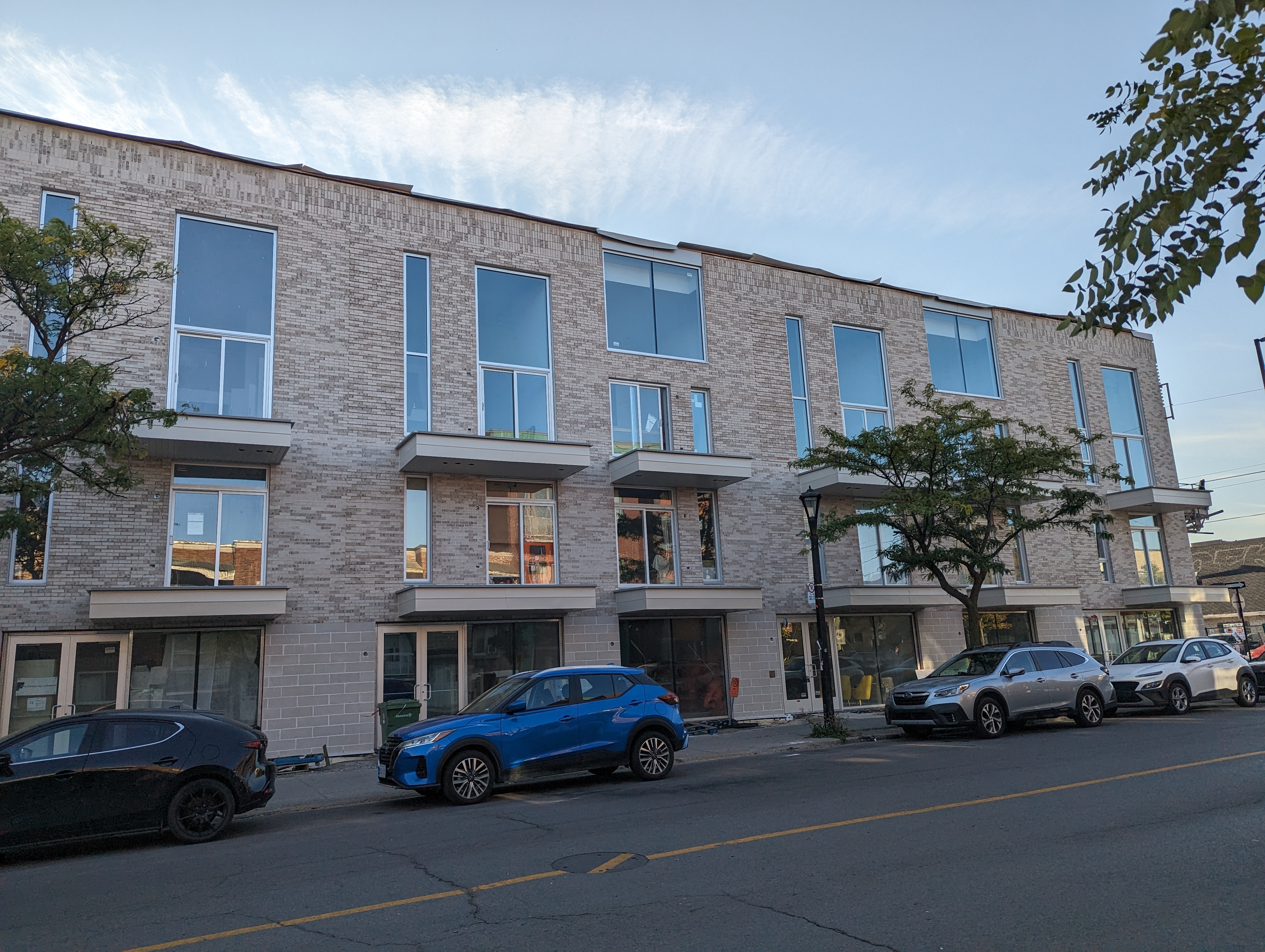 Les unités residentielles semblent plus près d’être achevées. Les cloisons sèches sont installées et enduites de boue, mais non peintes. Pour les unités commerciales, seulement l’unité d’est semble fini à ce niveau.