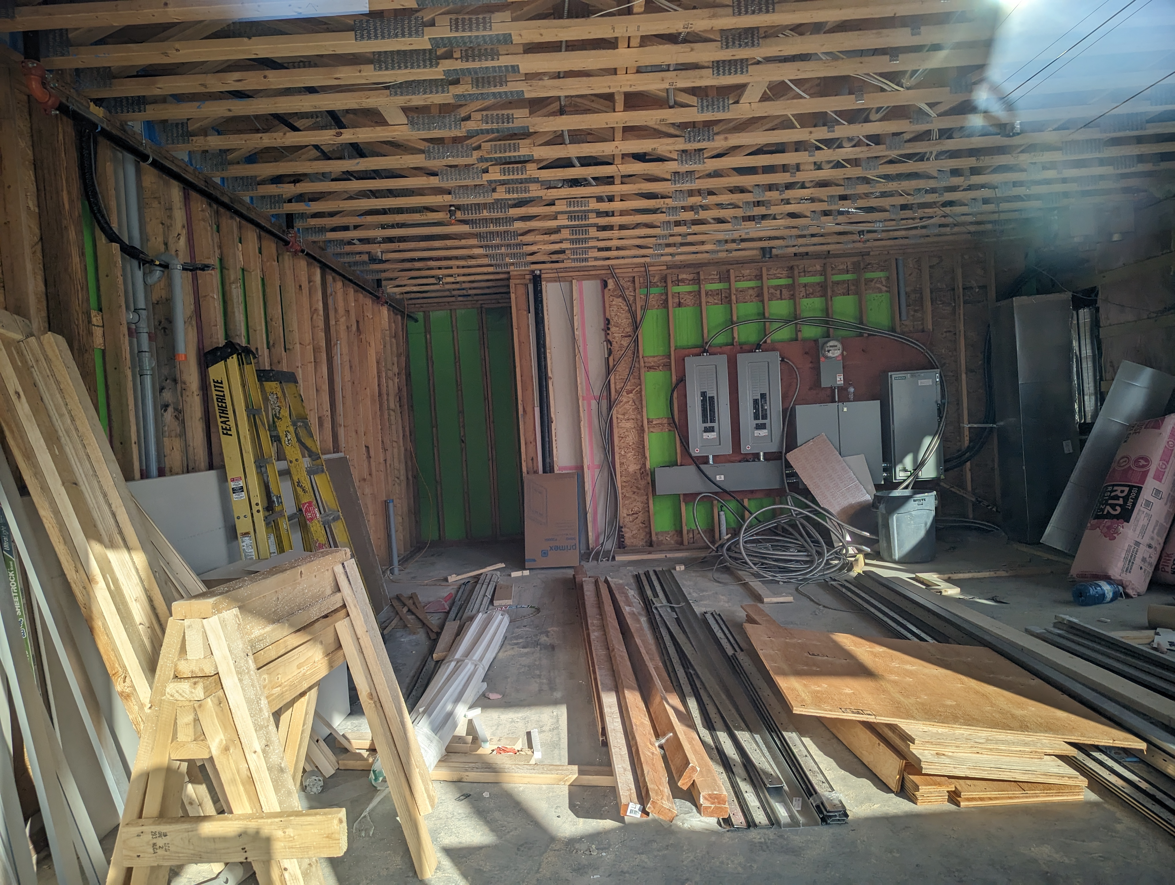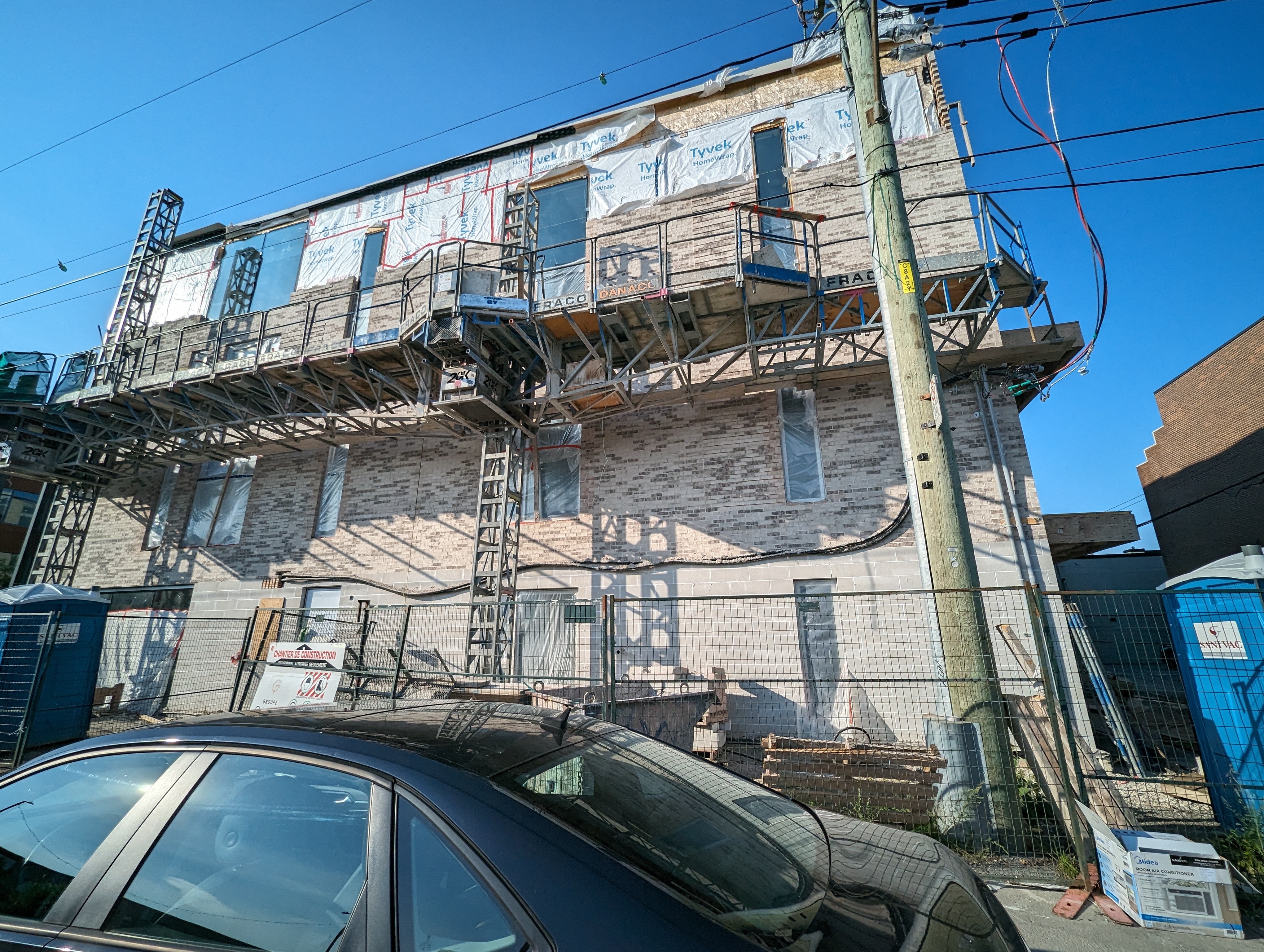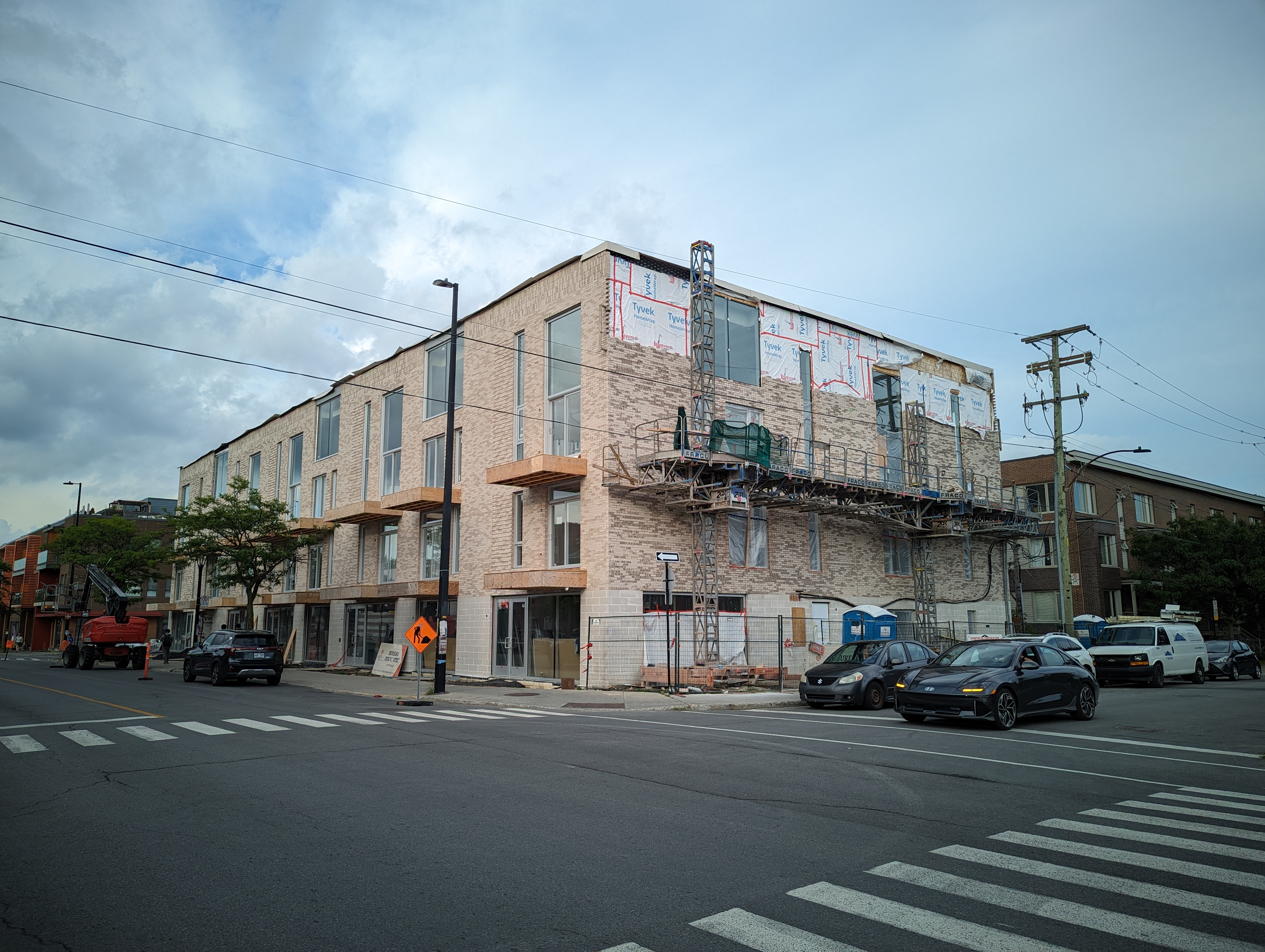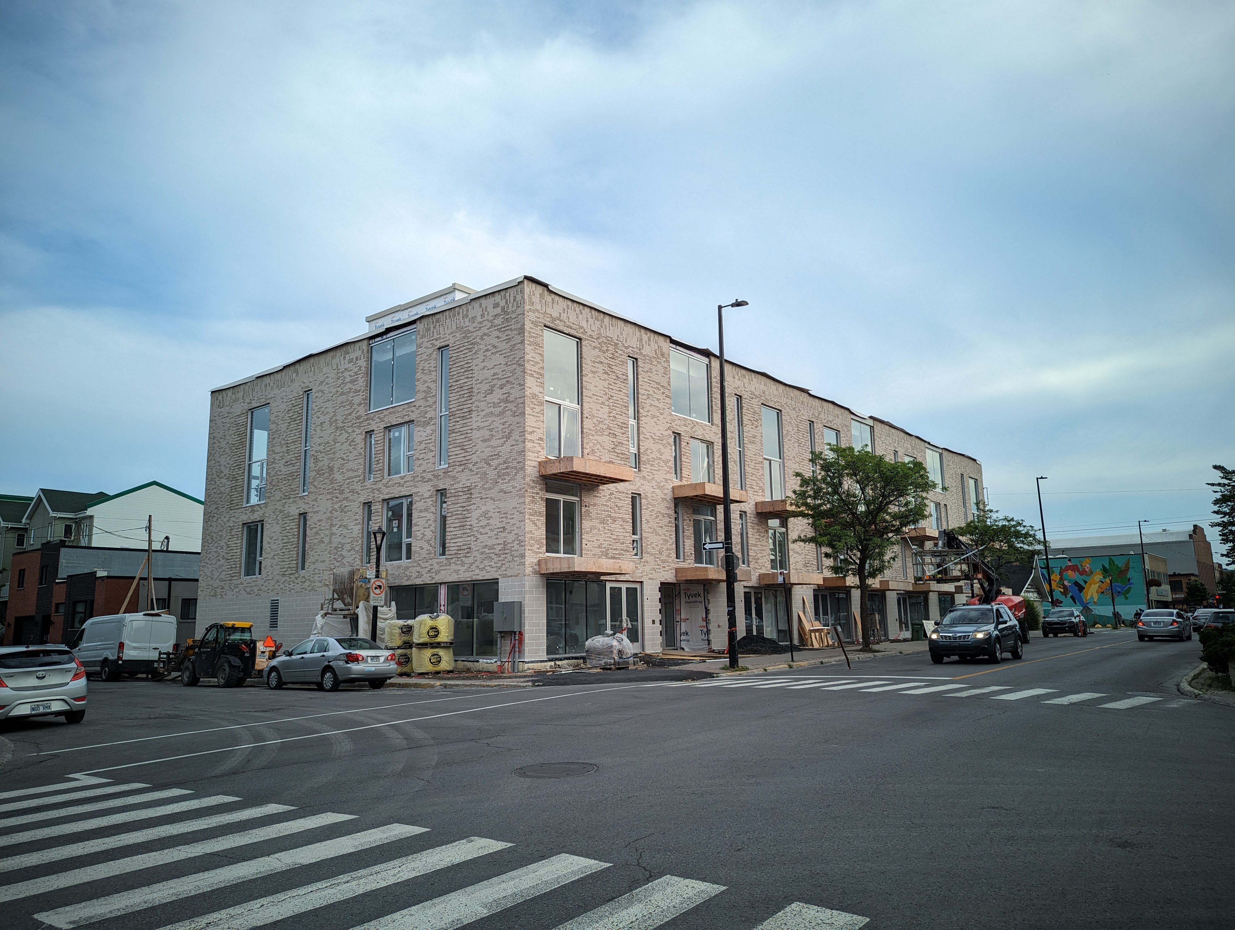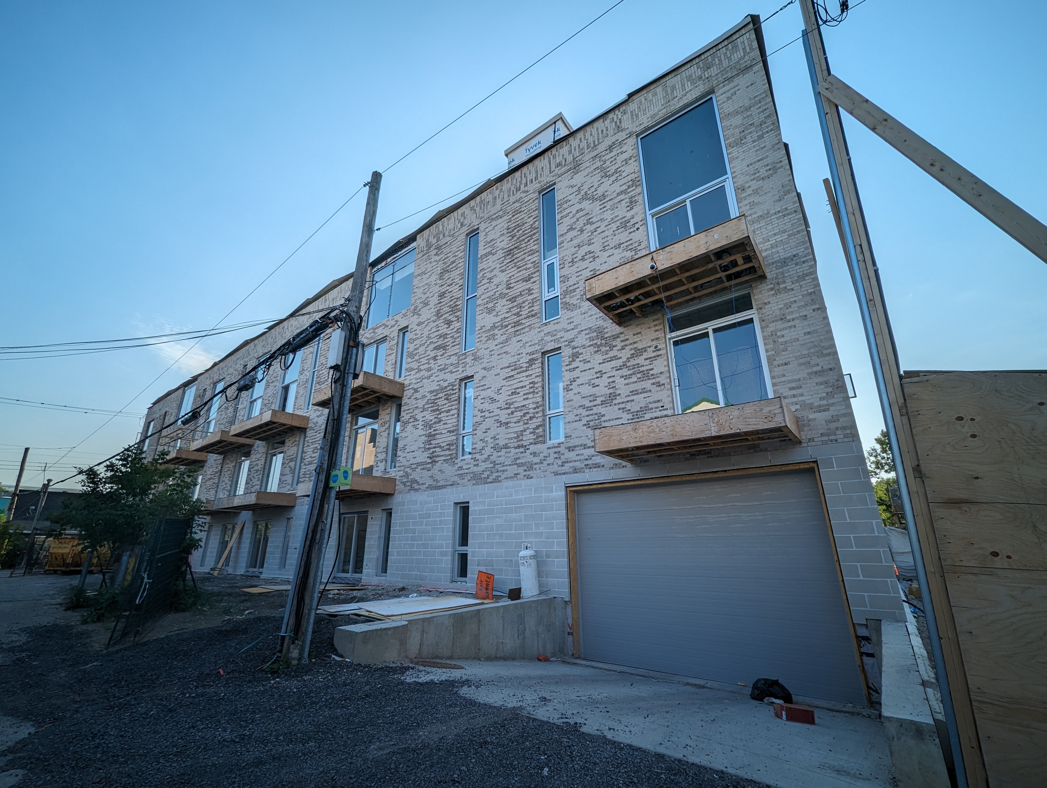 Les unités residentielles semblent plus près d’être achevées. Les cloisons sèches sont installées et enduites de boue, mais non peintes. Pour les unités commerciales, seulement l’unité d’est semble fini à ce niveau.