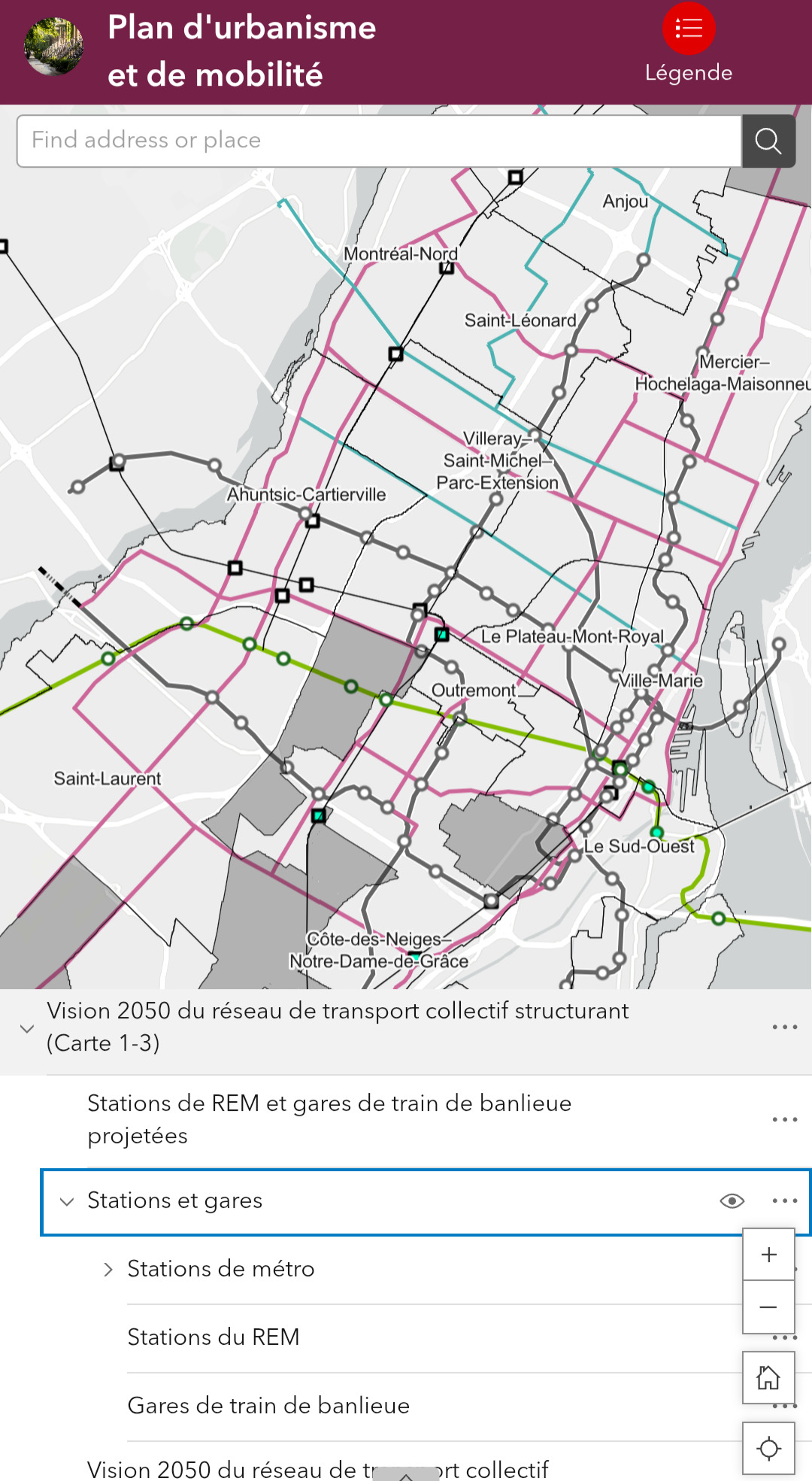 Voici une autre vue. La carte est interactive, alors on peut choisir quelles données voir. Ici la Vision 2050 du réseau structurant dans le même plan que l’exemple de @ vincemtl :