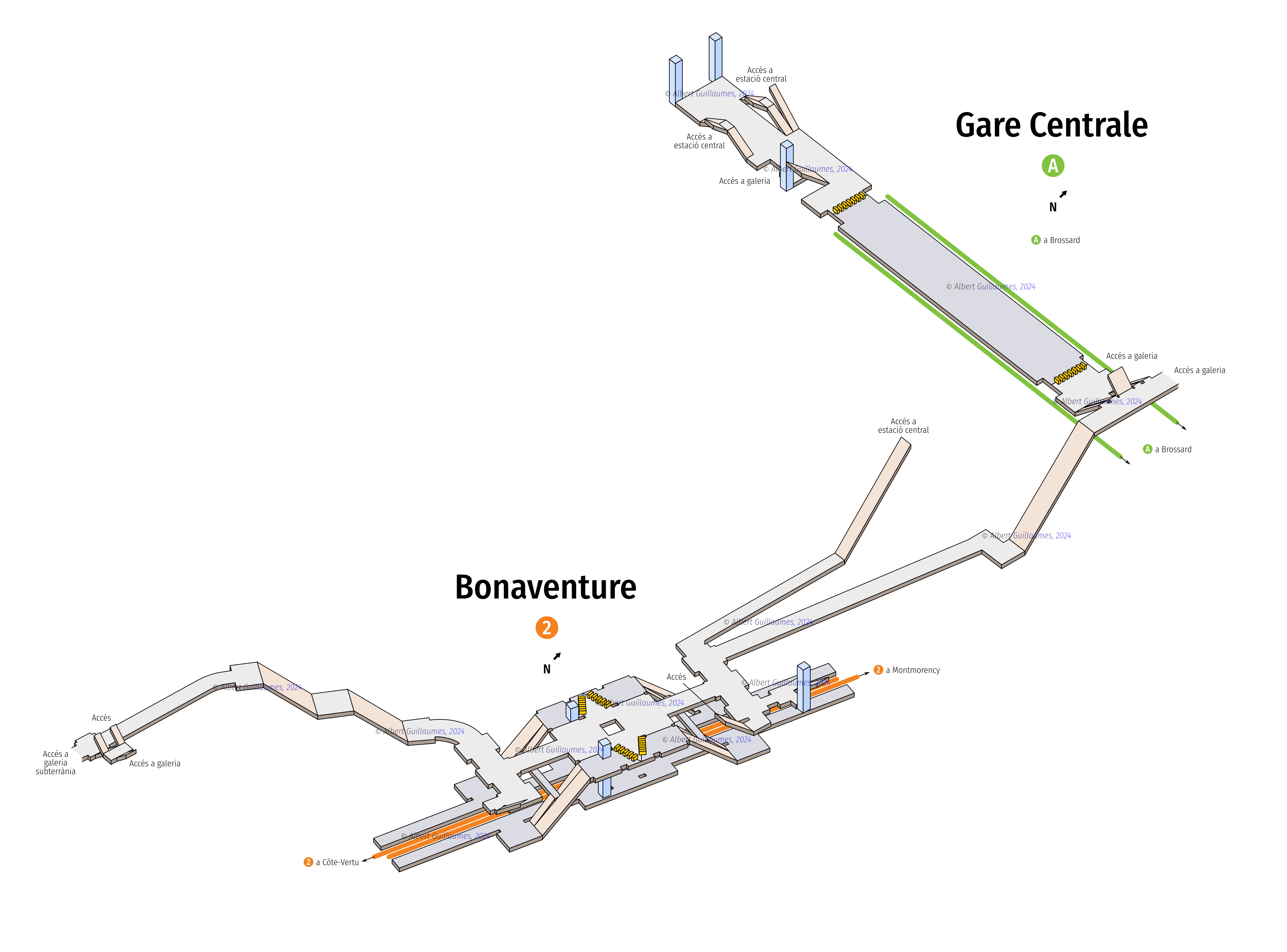 Super série de diagrammes 3D de plusieurs stations du Métro de Montréal (entre autres) par Albert Guillaumes Marcer. Il y a même des modèles interactifs pour les quatre stations de correspondance qui m’ont permis d’enfin comprendre ce qui se passe à Jean-Talon.