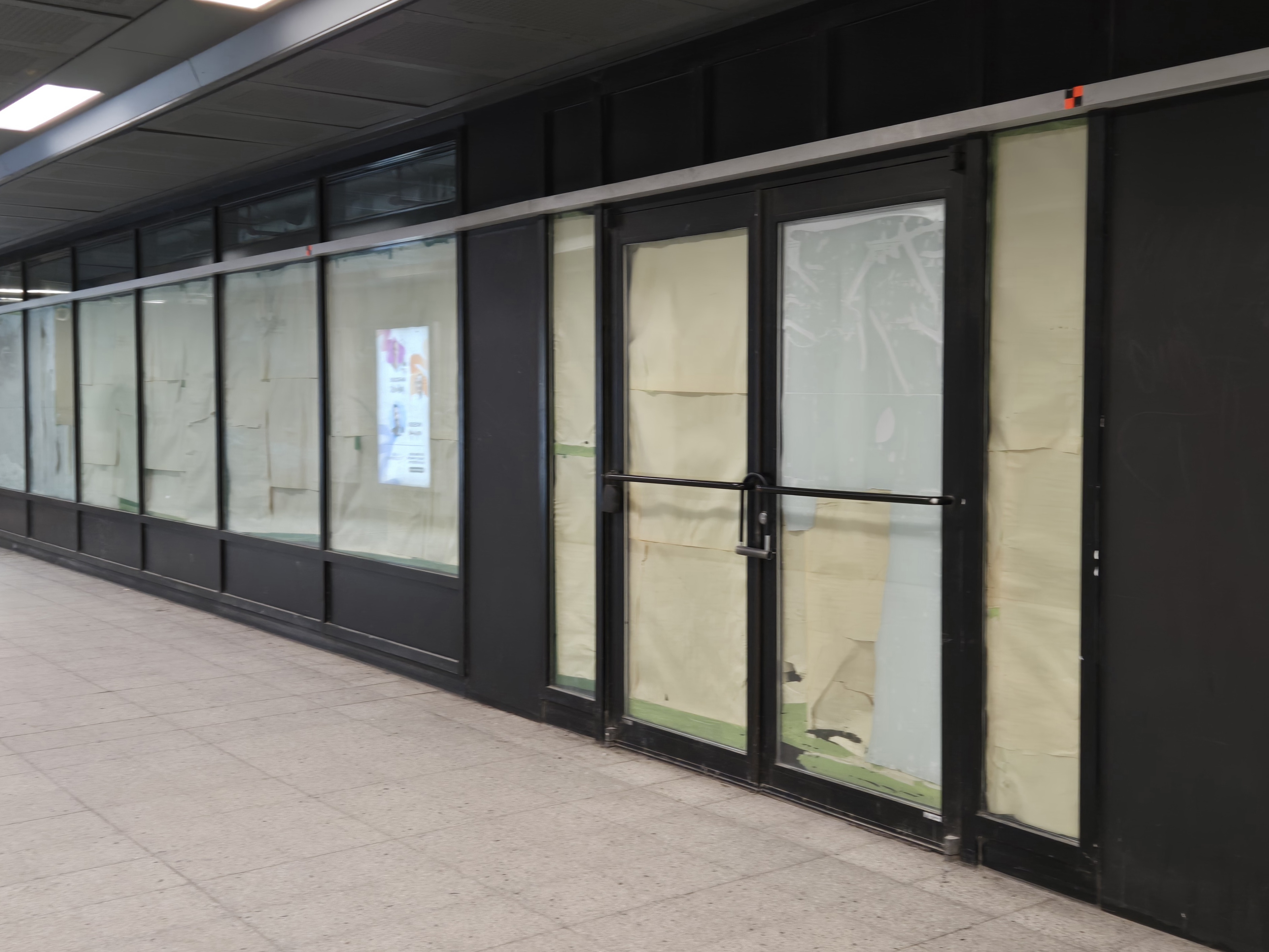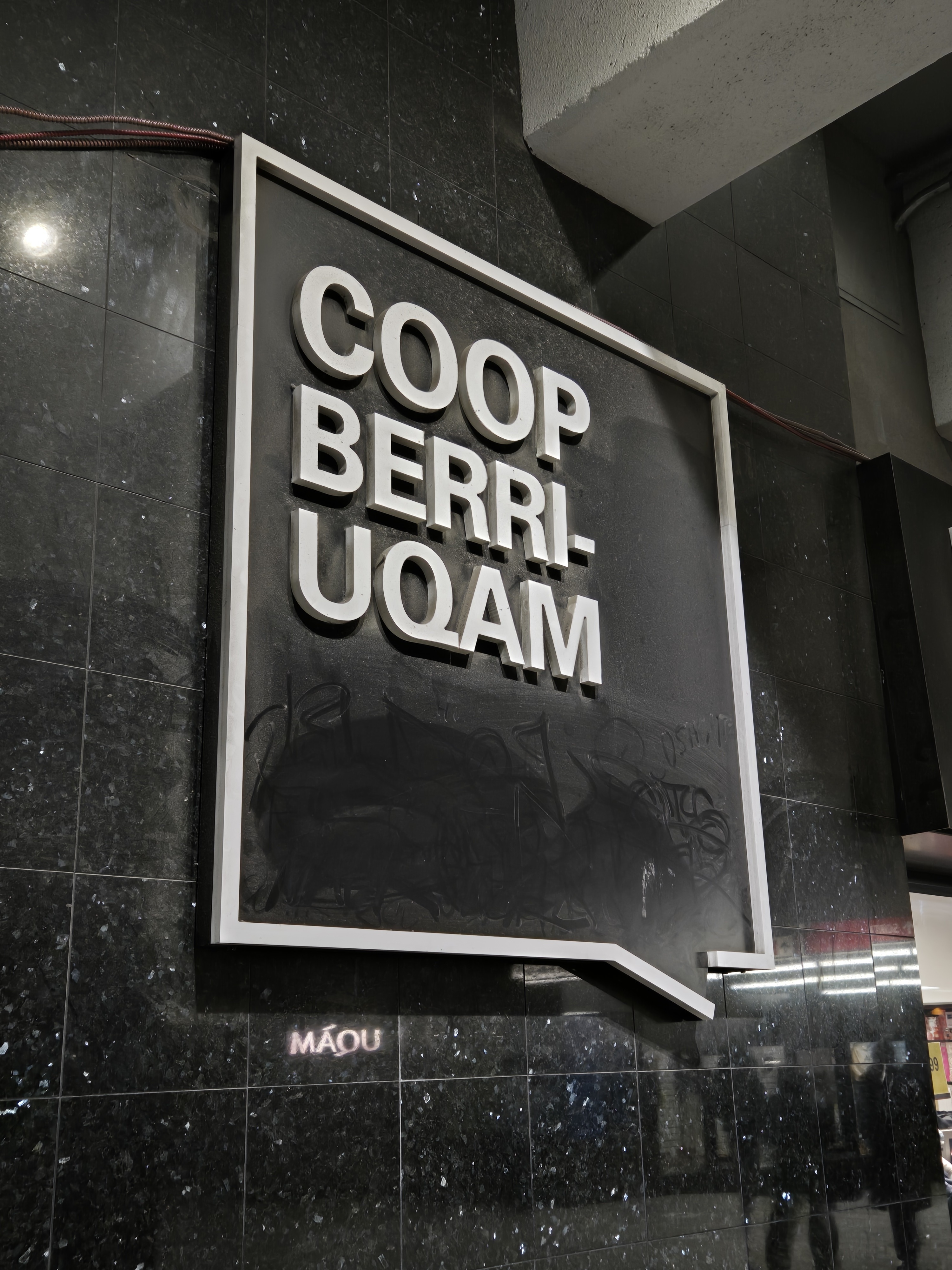 Le local qui avait autrefois une charcuterie à Berri-Uqam, sortie Sainte-Catherine. J’ai aussi remarqué énormément de poussière sur les murs un peu partout dans la station. Les gens semblent l’avoir constaté aussi et laissent leur trace. L’entretien semble vraiment en fort déclin, dans le métro.