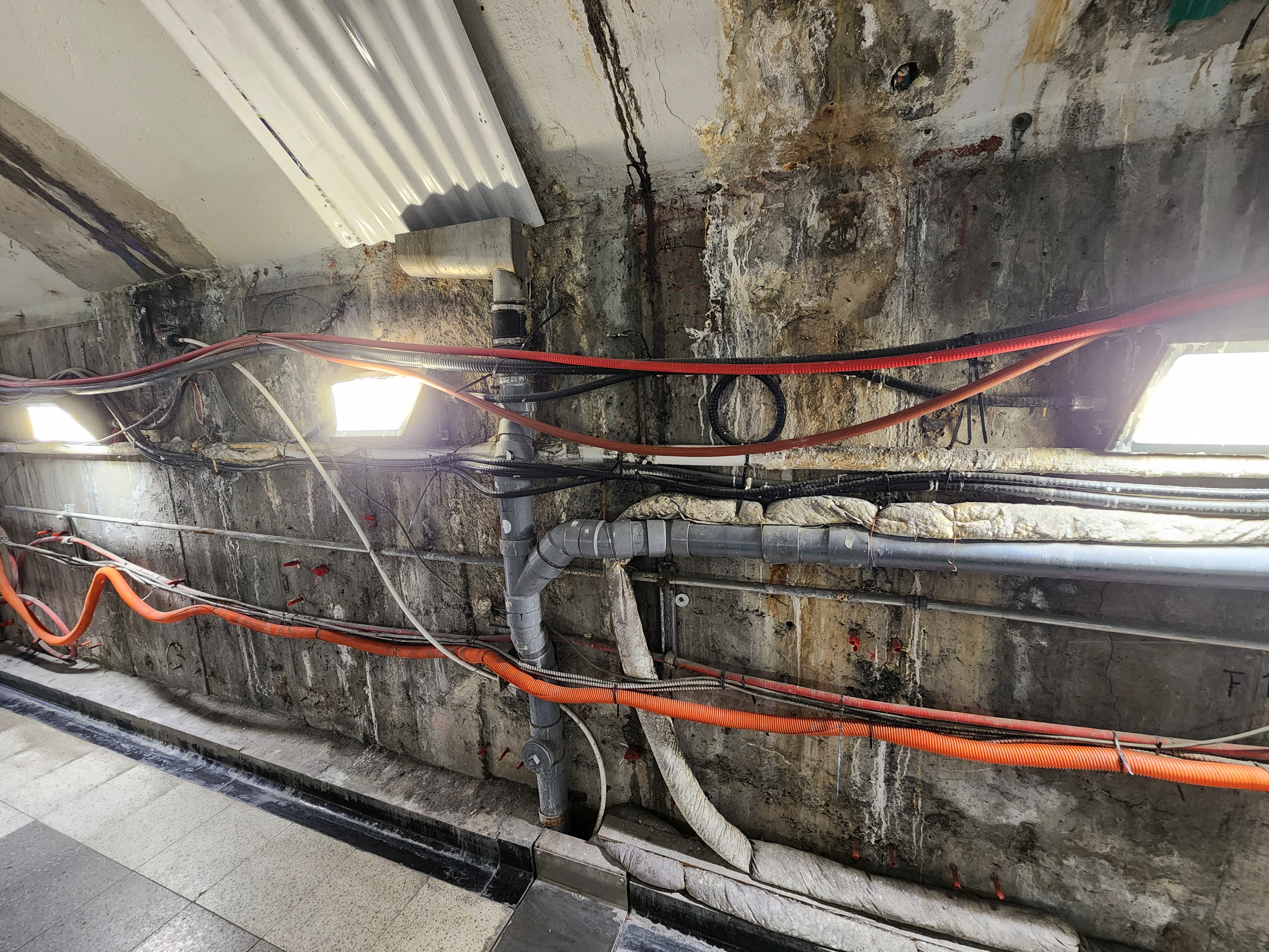 Je ne sais pas ce qui se passe à Berri au quai vers Jean-Drapeau mais ils ont percé de multiples trous ronds dans le plafond de béton et ont installé des gaines de métal à l’intérieur. Ça semble pour solidifier le tout. Le quai, plafonds et murs sont totalement en chantier et ne donnent malheureusement pas une belle image de notre métro, peu rassurante en tous les cas. Les touristes du Grand Prix devant passer par ce quai n’ont certainement pas eu la meilleure des impressions, c’est très chaotique.