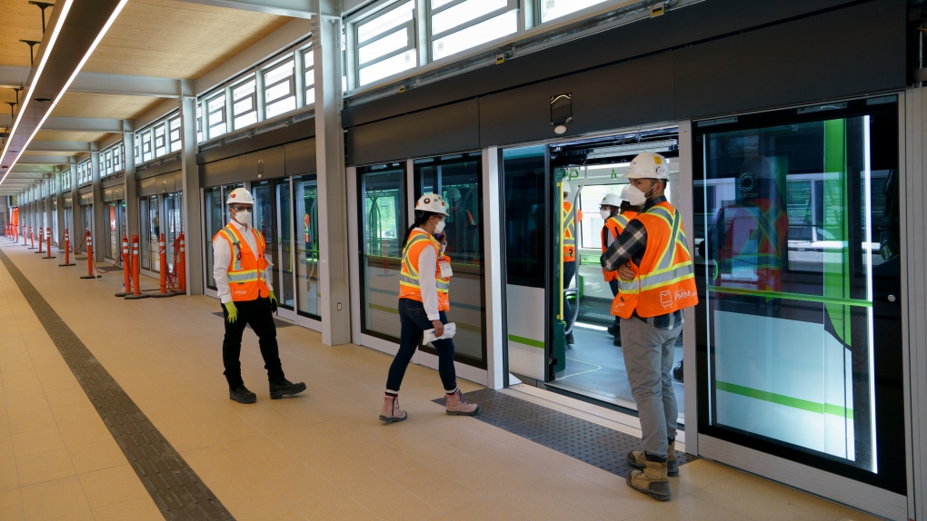 Members of the media enter a train during a media tour of the the Reseau express metropolitain (REM) in Brossard, Que. on Thursday, June 10, 2021. THE CANADIAN PRESS/Paul ChiassonThe Ministère des Transports told CTV News that there are three public transit capital assistance programs available that would cover the entire cost of the purchase and installation of the platform screen doors in the Montreal metro.