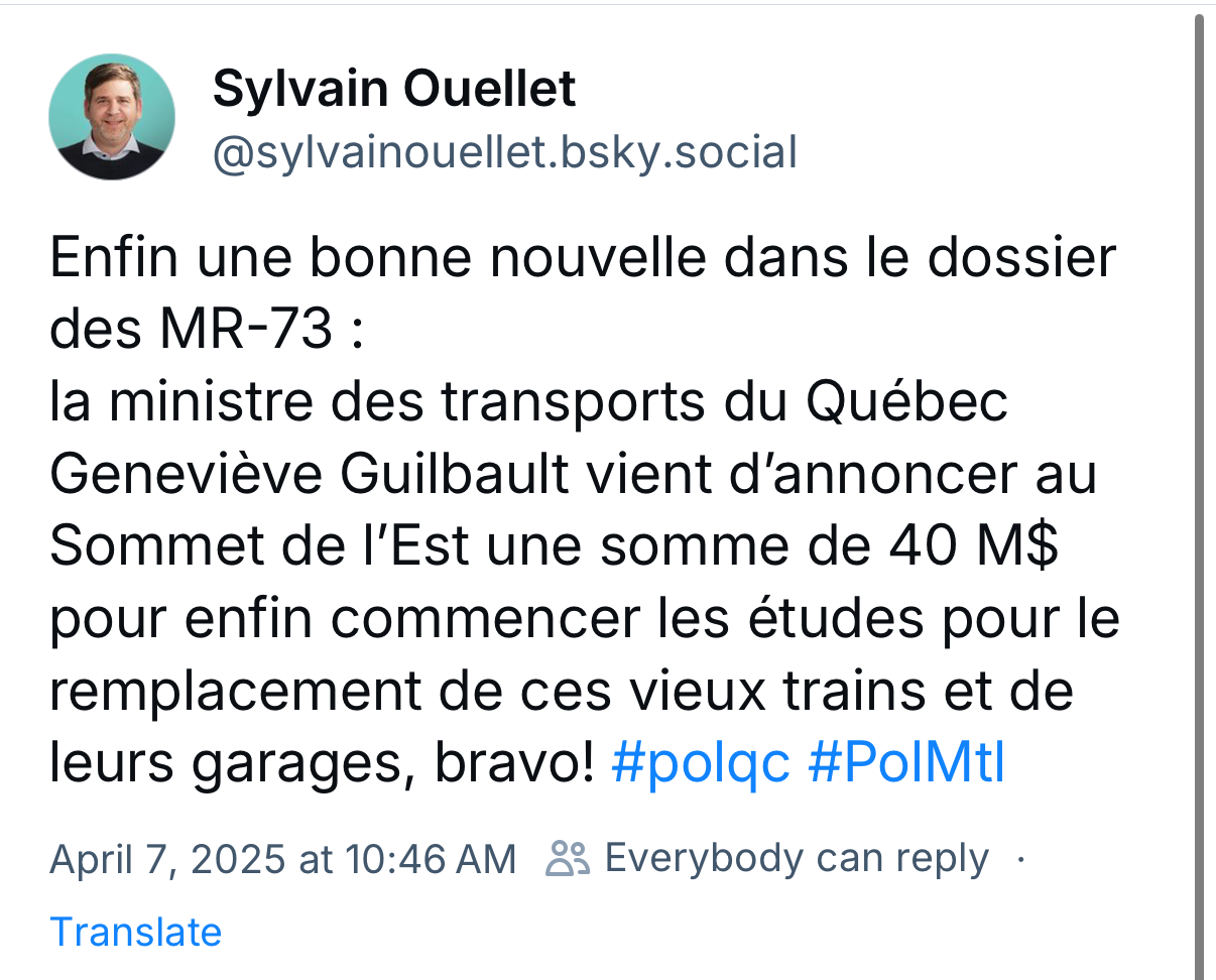 Absolument, les études du 40 M$ porterait sur les Remplacement des MR-73, mais aussi sur les projets connexes comme l’arrière-gare et la gare Angrignon, le complexe Beaugrand et le CBTC Phase 2.