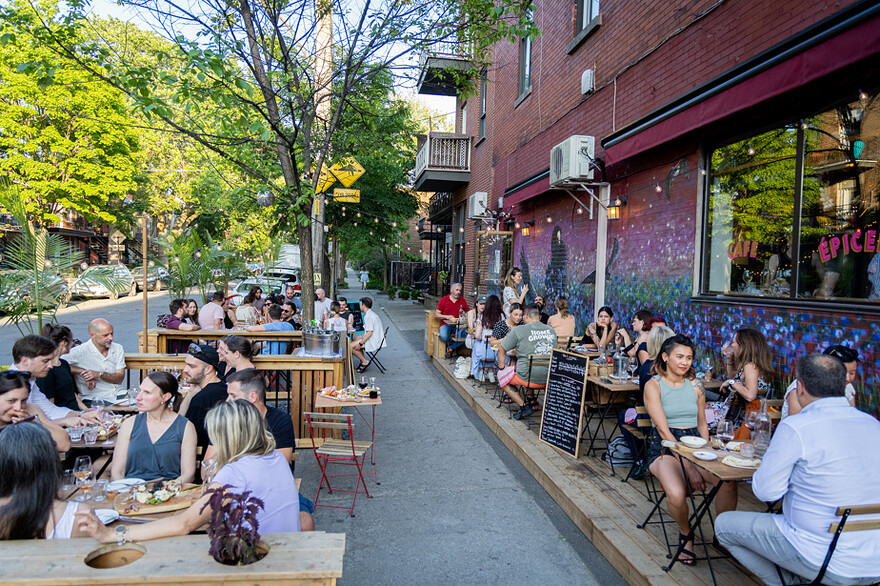 « Les Québécois qui viennent ici disent qu’ils ont l’impression de se trouver sur une terrasse à Bordeaux ou à Paris ! », lance Max Rosselin, propriétaire du Bar Mamie, dans l’arrondissement de Rosemont–La Petite-Patrie.
