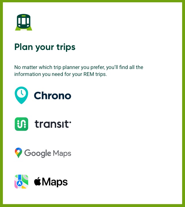 Apple Maps has been added to the list of trip planners supported by the REM: