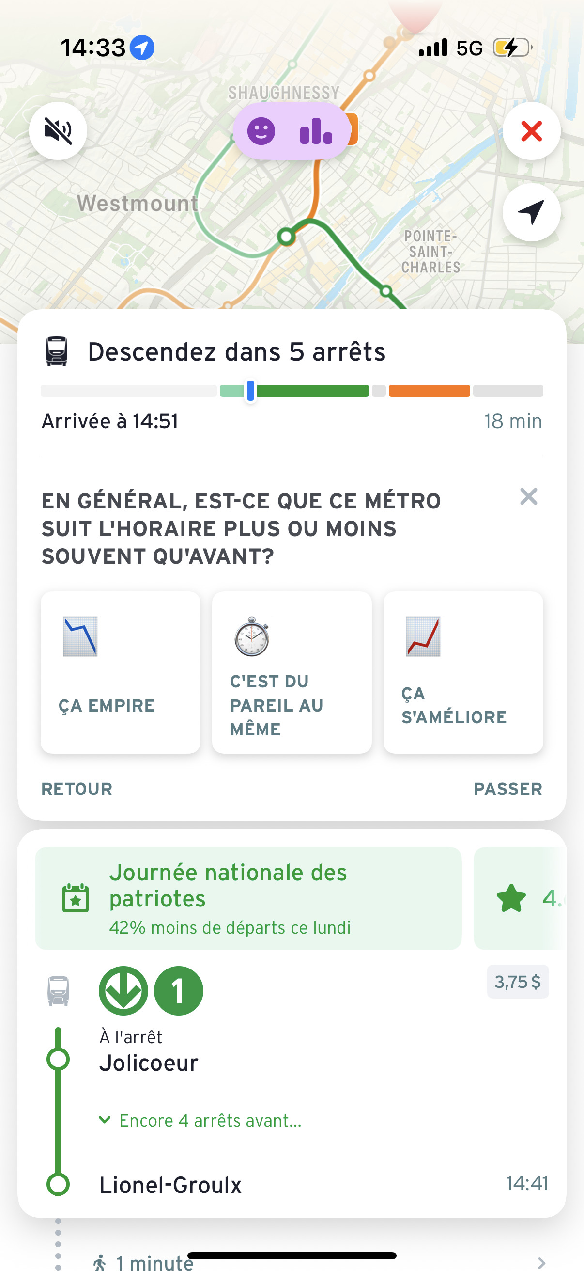 Note: You can get notified of alerts for lines by pinning the line, and even unpin and keep notifications on. I do this for my métro line to know if it goes down.