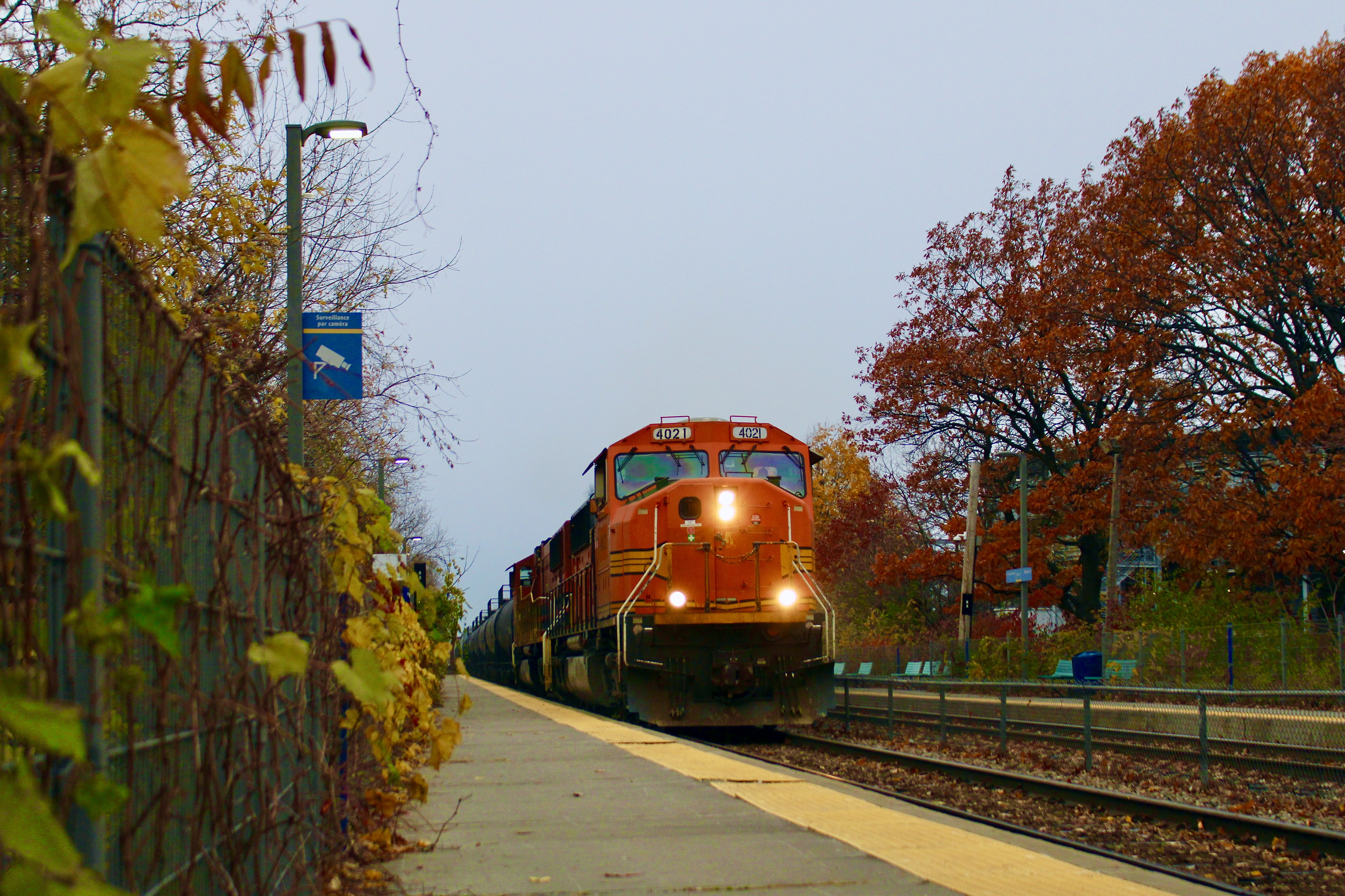 Ă moins dâun Ă©vĂšnement exceptionnel ou dâun contexte particulier, la locomotive devrait ĂȘtre en avant du train direction Lucien-LâAllier, et le train devrait ĂȘtre sur la voie la plus proche de la station de mĂ©tro Parc. Seul petit truc, si vous voulez la prendre en photo une fois arrĂȘtĂ©e au point 3, il se peut que la locomotive sâarrĂȘte plus loin que le dĂ©but de la clĂŽture du passage Ă niveau, comme ce matin;