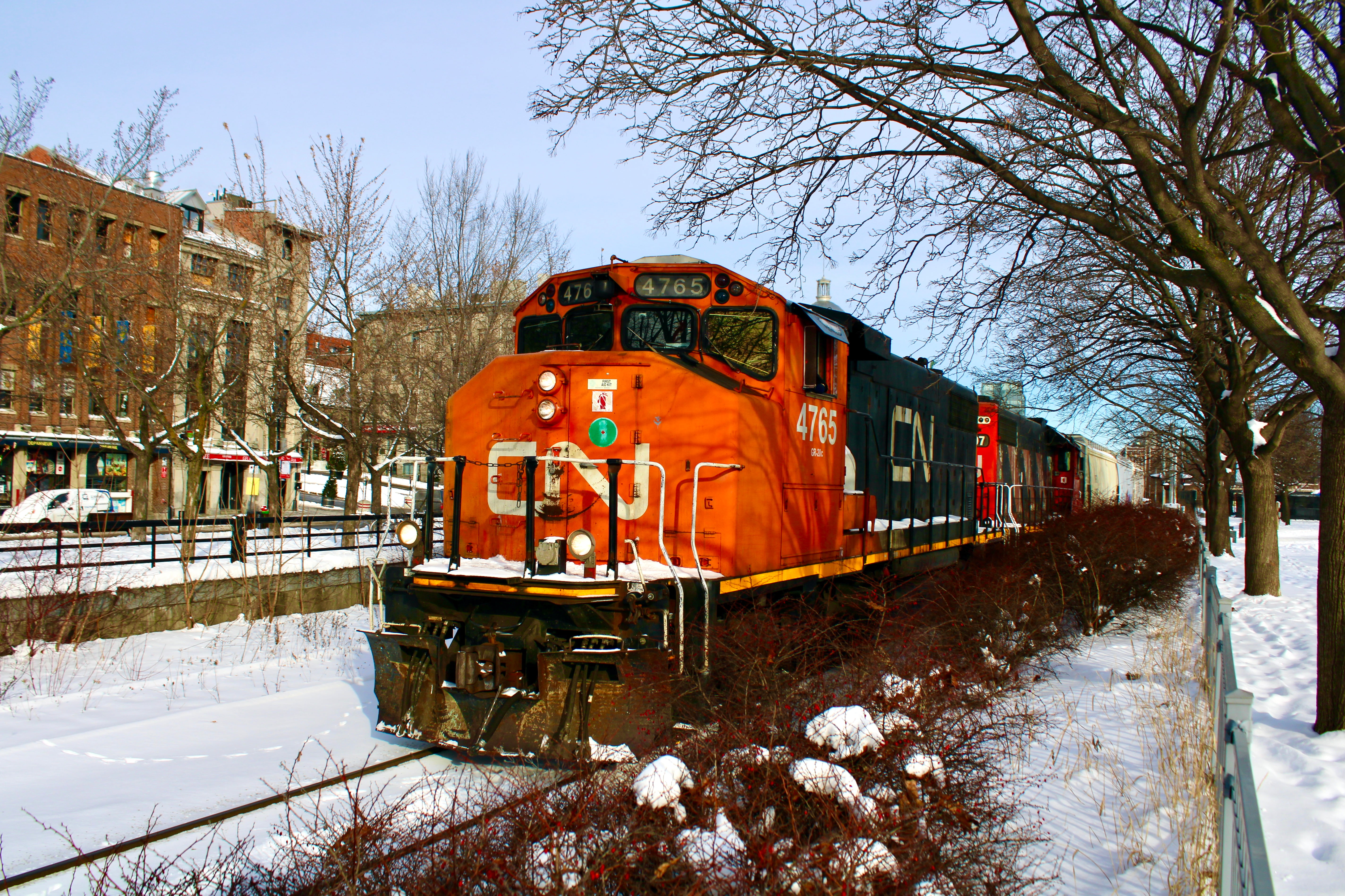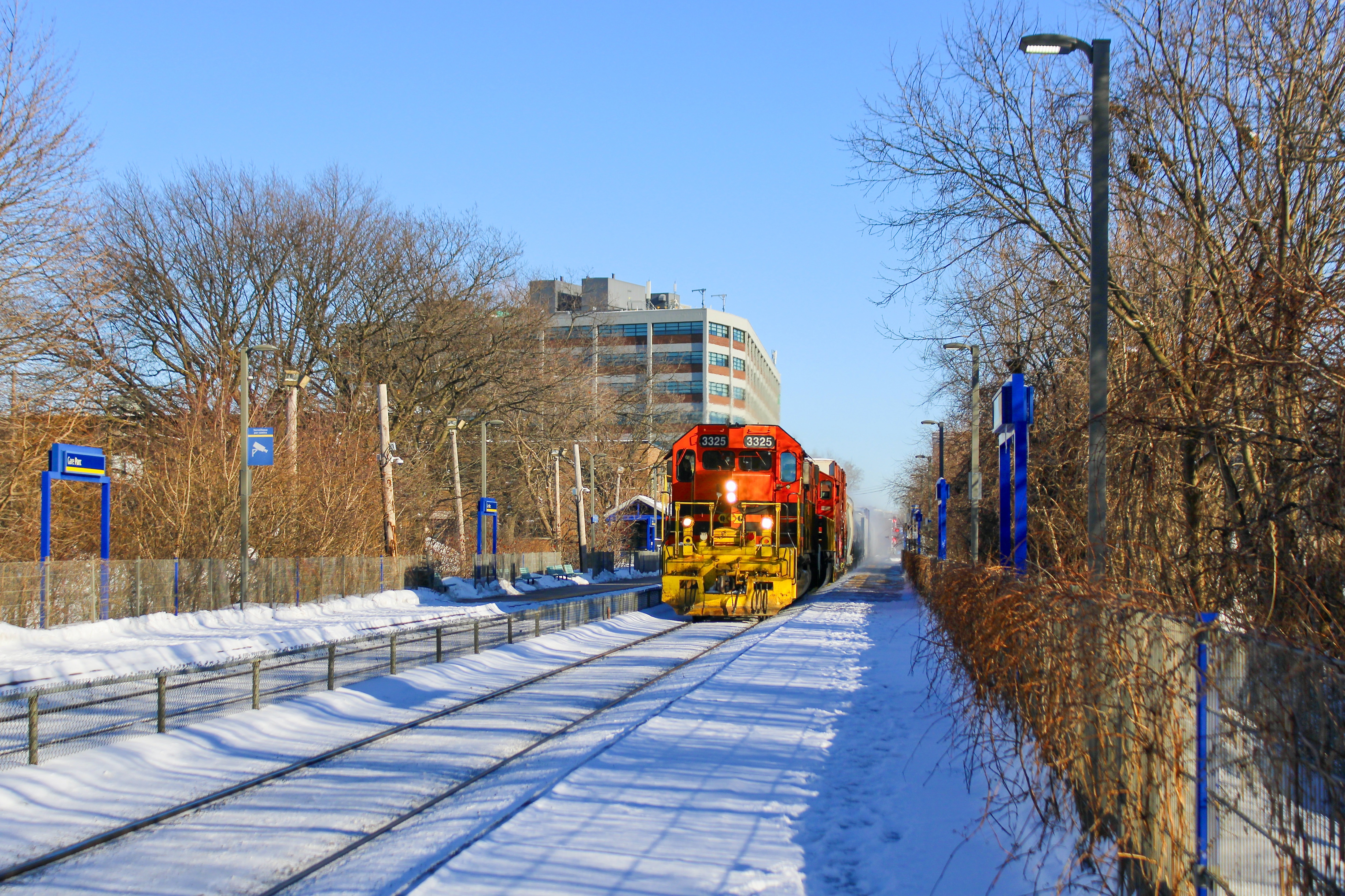 Le train 501 du CFQG (QGRY) assurant la desserte Sainte-ThĂ©rĂšse/MontrĂ©al les samedi, de passage Ă la limite entre MIL et Parc-Extension ce matin. Jâai pris cette photo en toute lĂ©galitĂ© depuis le nouveau passage Ă niveau au bout de lâAvenue De lâĂpĂ©e, rĂ©cemment ouvert.