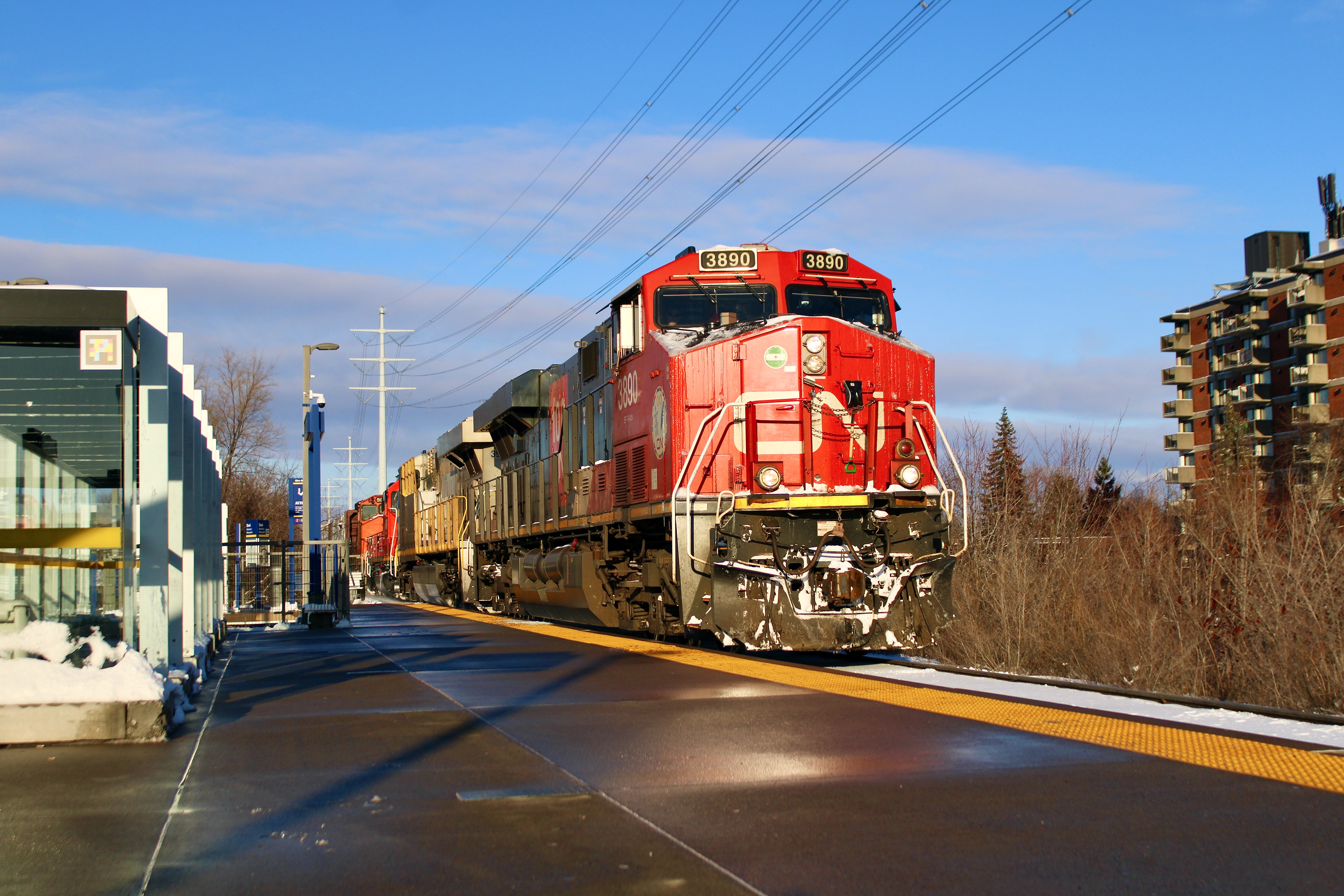 Le CN 461 (Garneau-Montréal) à la gare Sauvé le 24 décembre en aprÚs-midi, avec une SD40-2W en 4e, modÚle assez rare dans ce bout de pays.