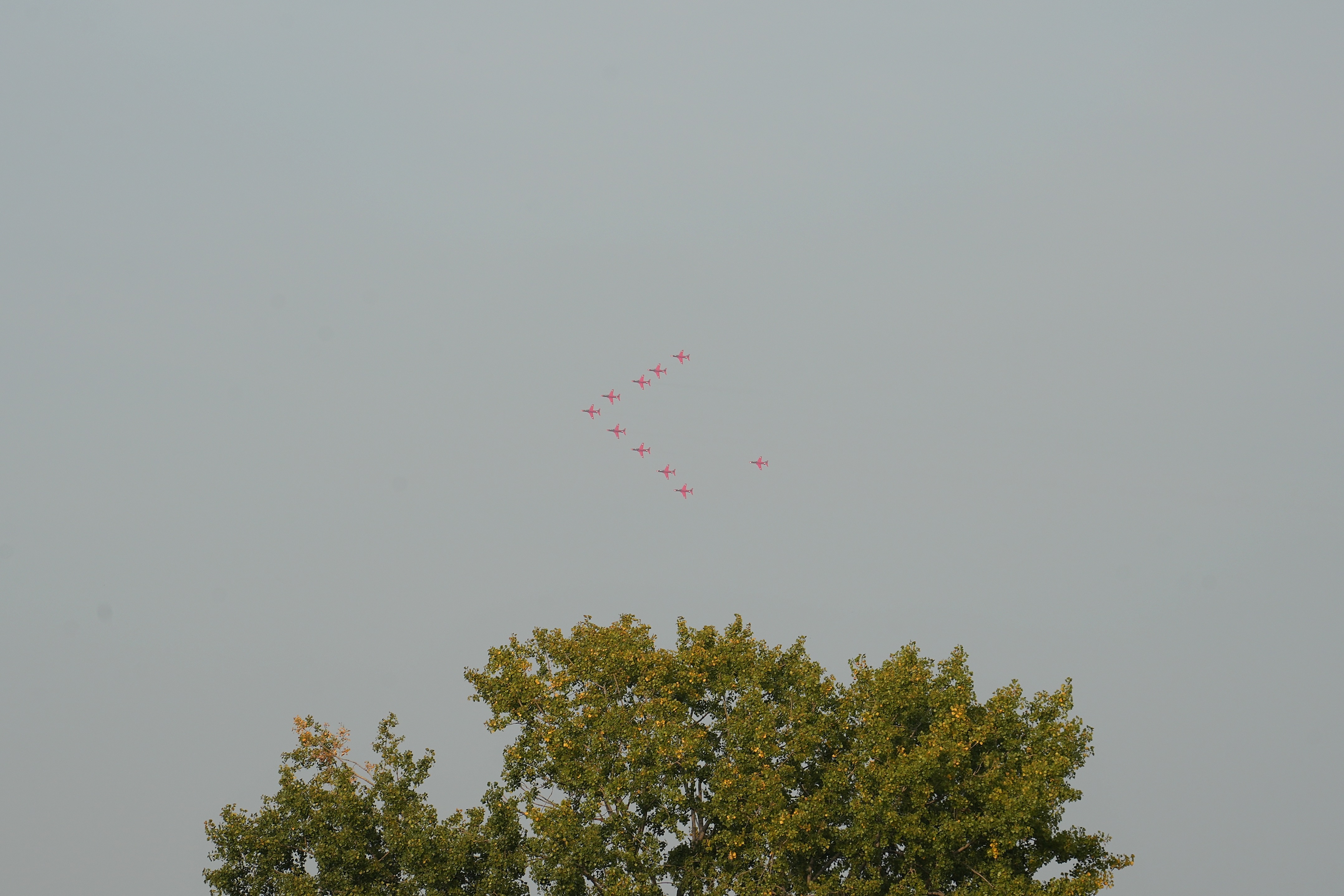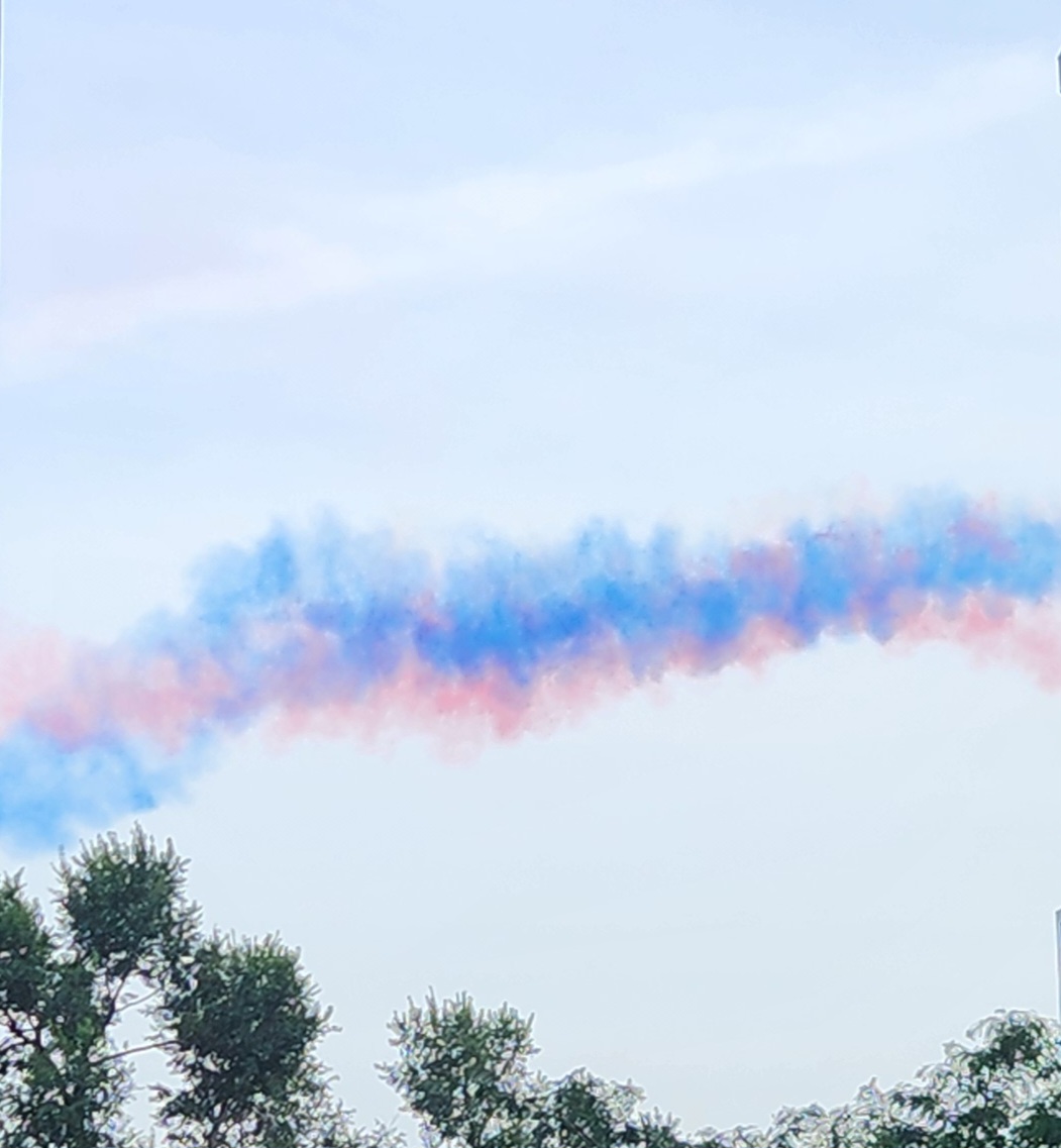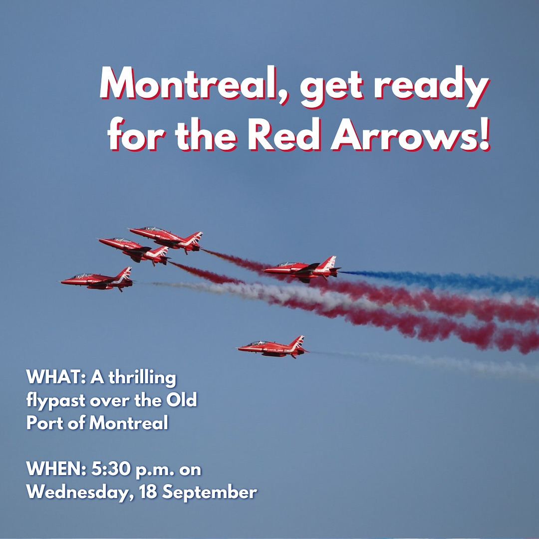 Ah c’était les Red Arrows de l’armée britannique, c’est pour fêter le 100e anniversaire de l’Aviation royale canadienne (armée de l’air). Nous allons p-ê voir d’autres escadrons d’ici la fin de l’année