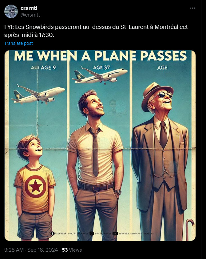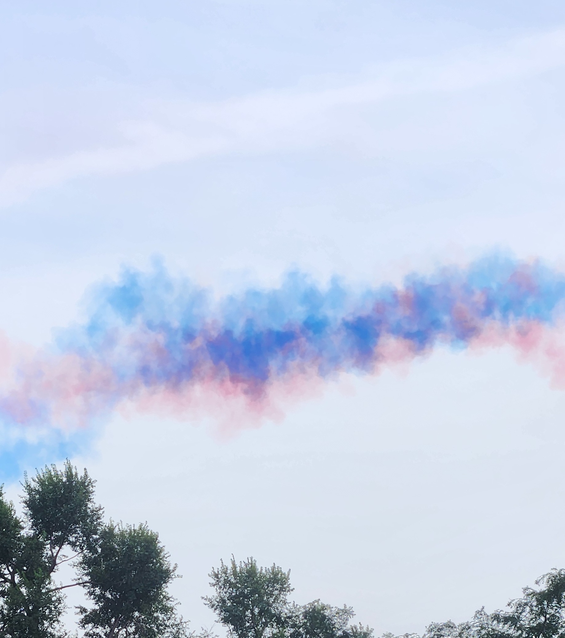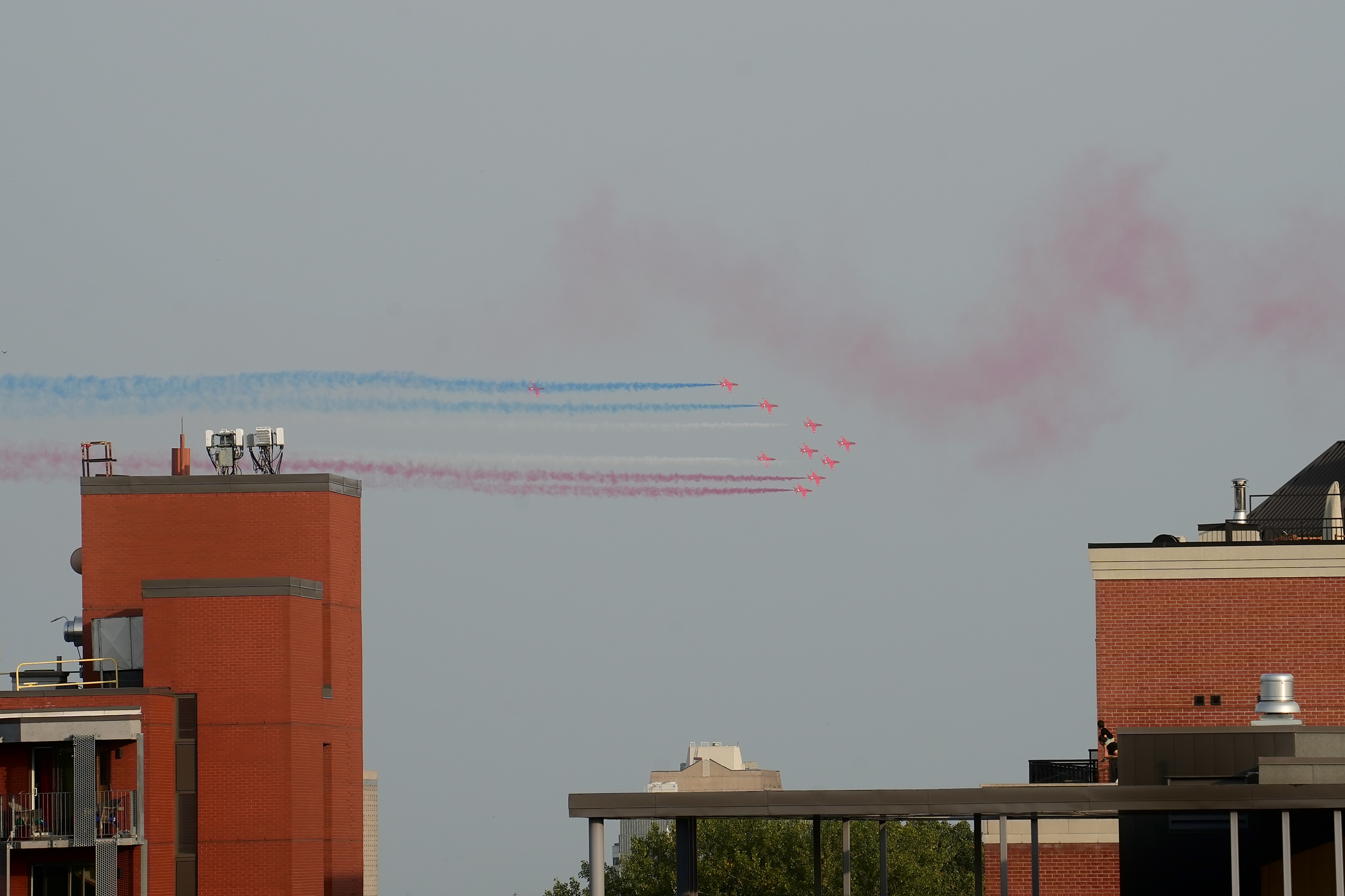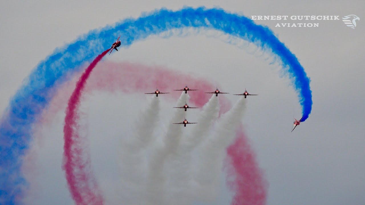 Ah c’était les Red Arrows de l’armée britannique, c’est pour fêter le 100e anniversaire de l’Aviation royale canadienne (armée de l’air). Nous allons p-ê voir d’autres escadrons d’ici la fin de l’année