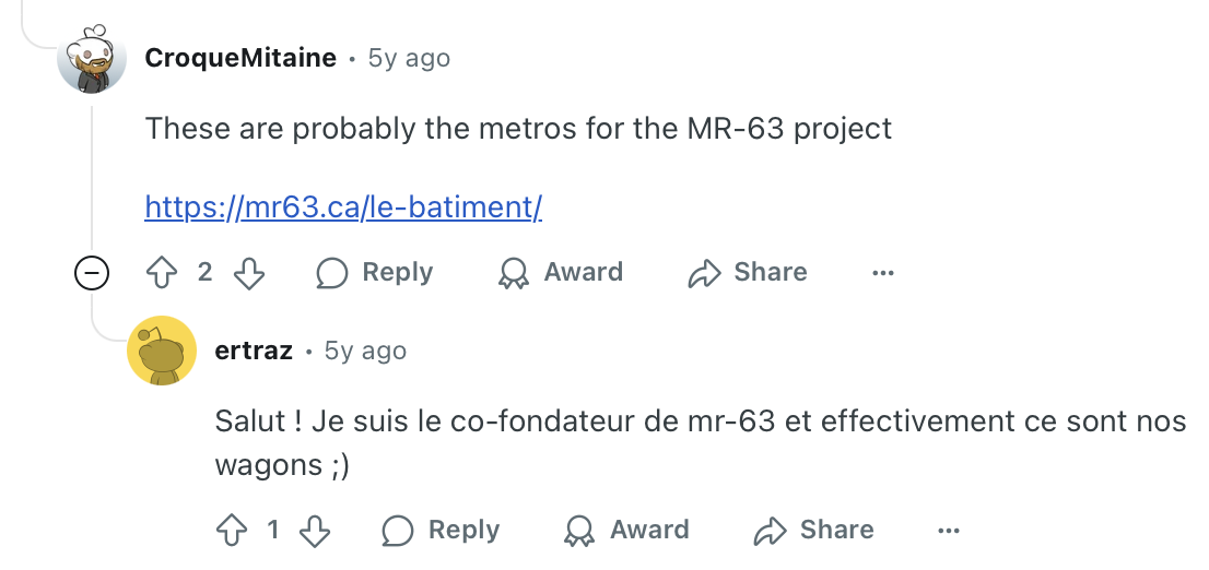 Une personne qui se dit co-fondateur du projet MR-63 sur Reddit affirme que ce sont des wagons pour le projet.