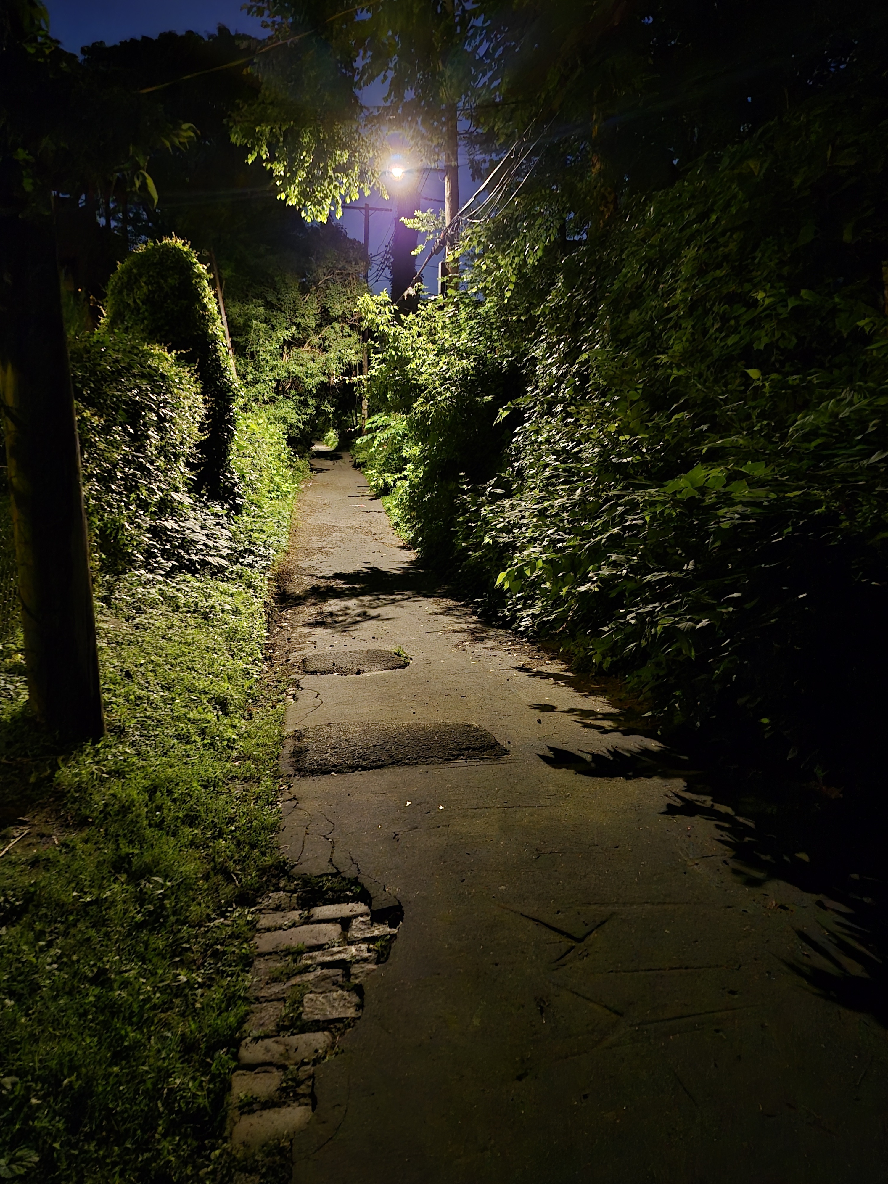 Je n’avais jamais vu ça auparavant, sous l’asphalte de cette ruelle d’Hochelaga, c’est du pavé. Elle est d’ailleurs très verdie et super belle, ce serait une excellente candidate pour devenir une ruelle verte s mon avis.