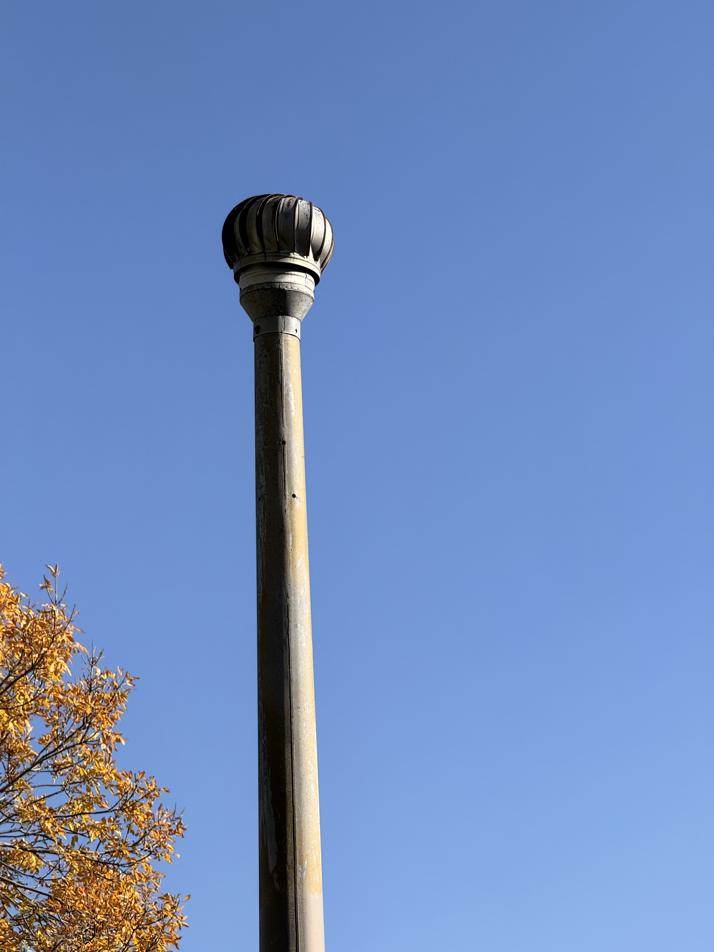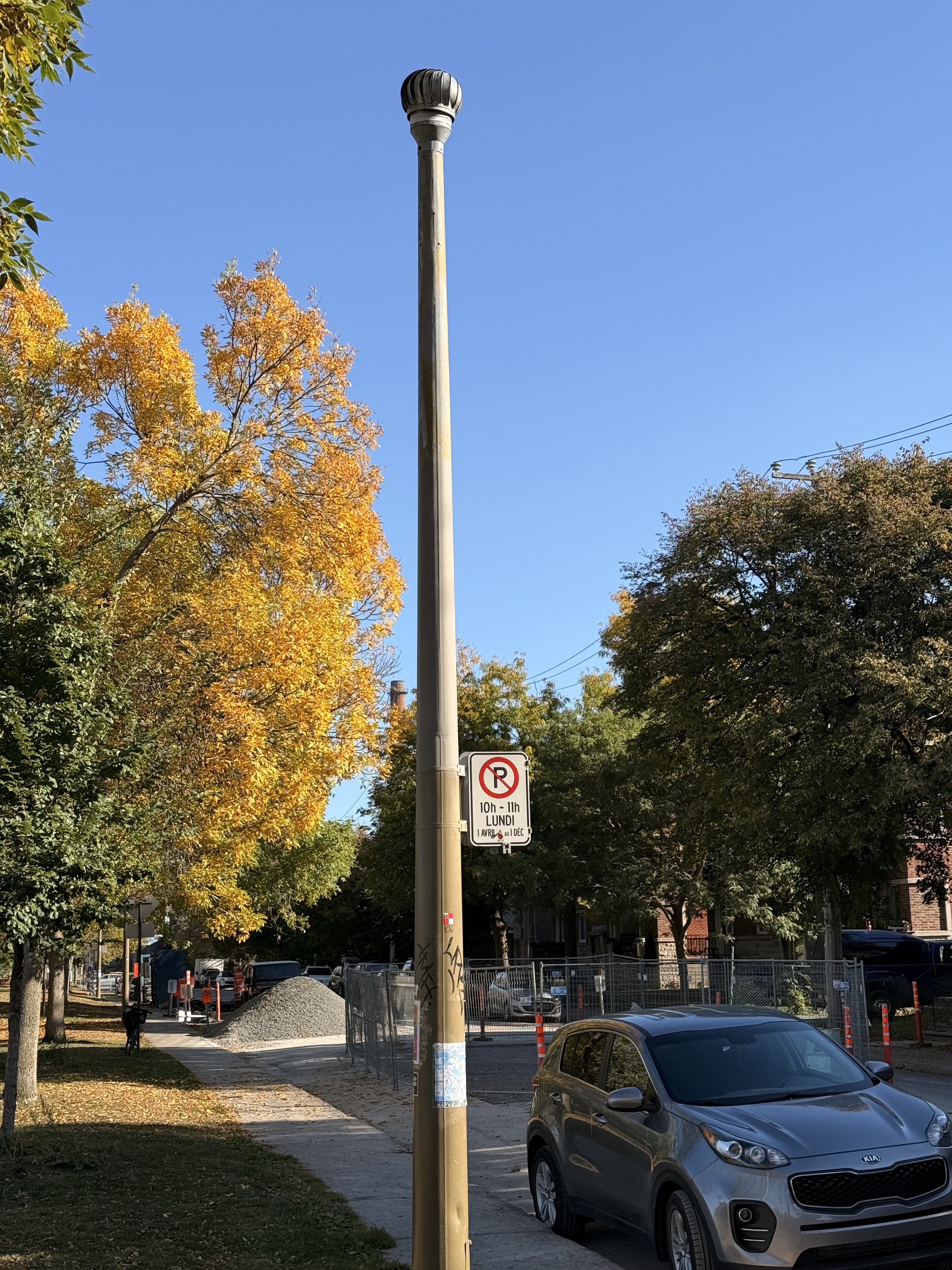 Je me promenais sur la rue Chambord entre Bellechasse et Rosemont quand j’ai remarqué ces piliers qui semblent avoir une bouche d’aération à leur extrémité. Il y en a plusieurs sur cette rue.