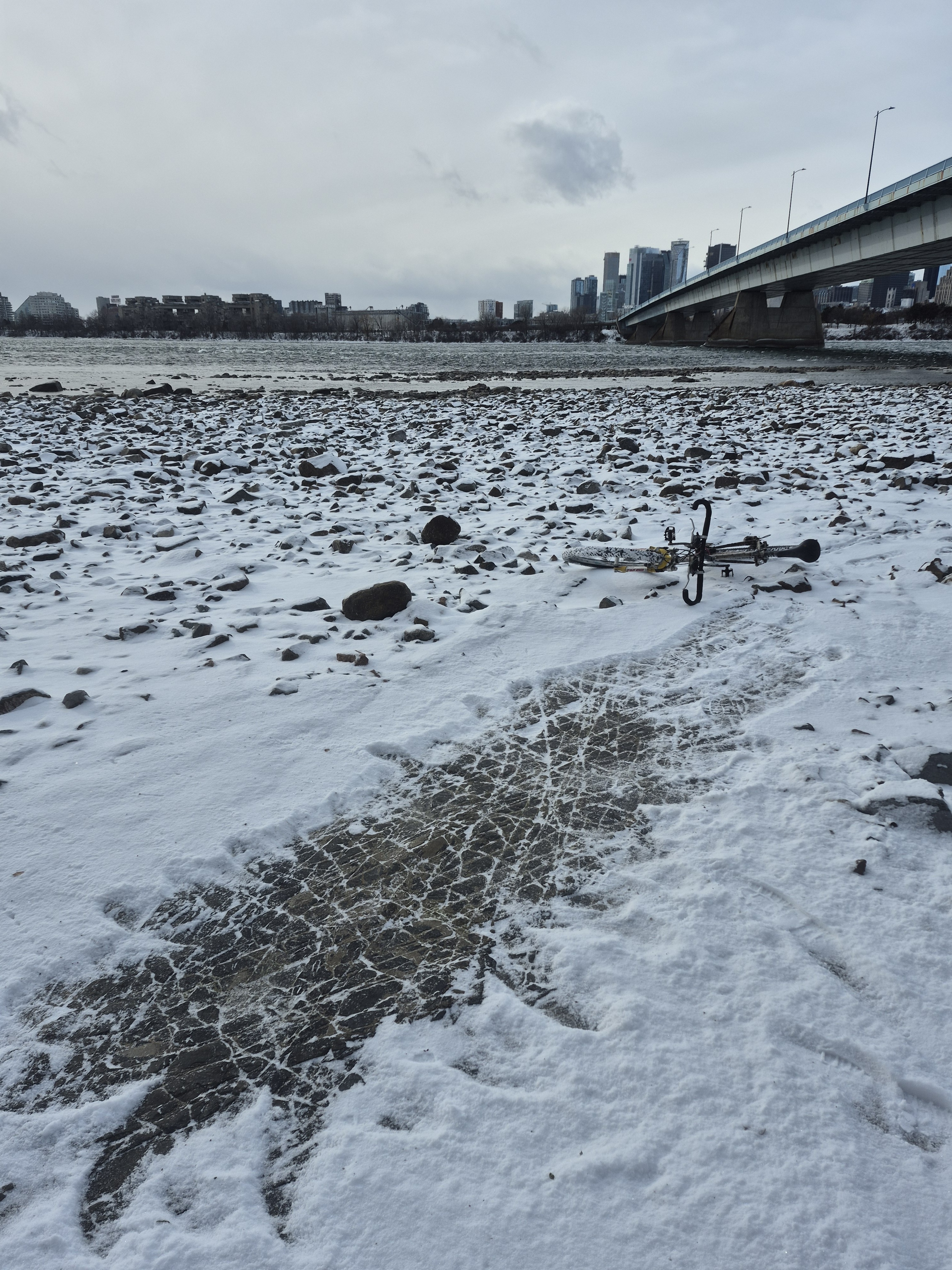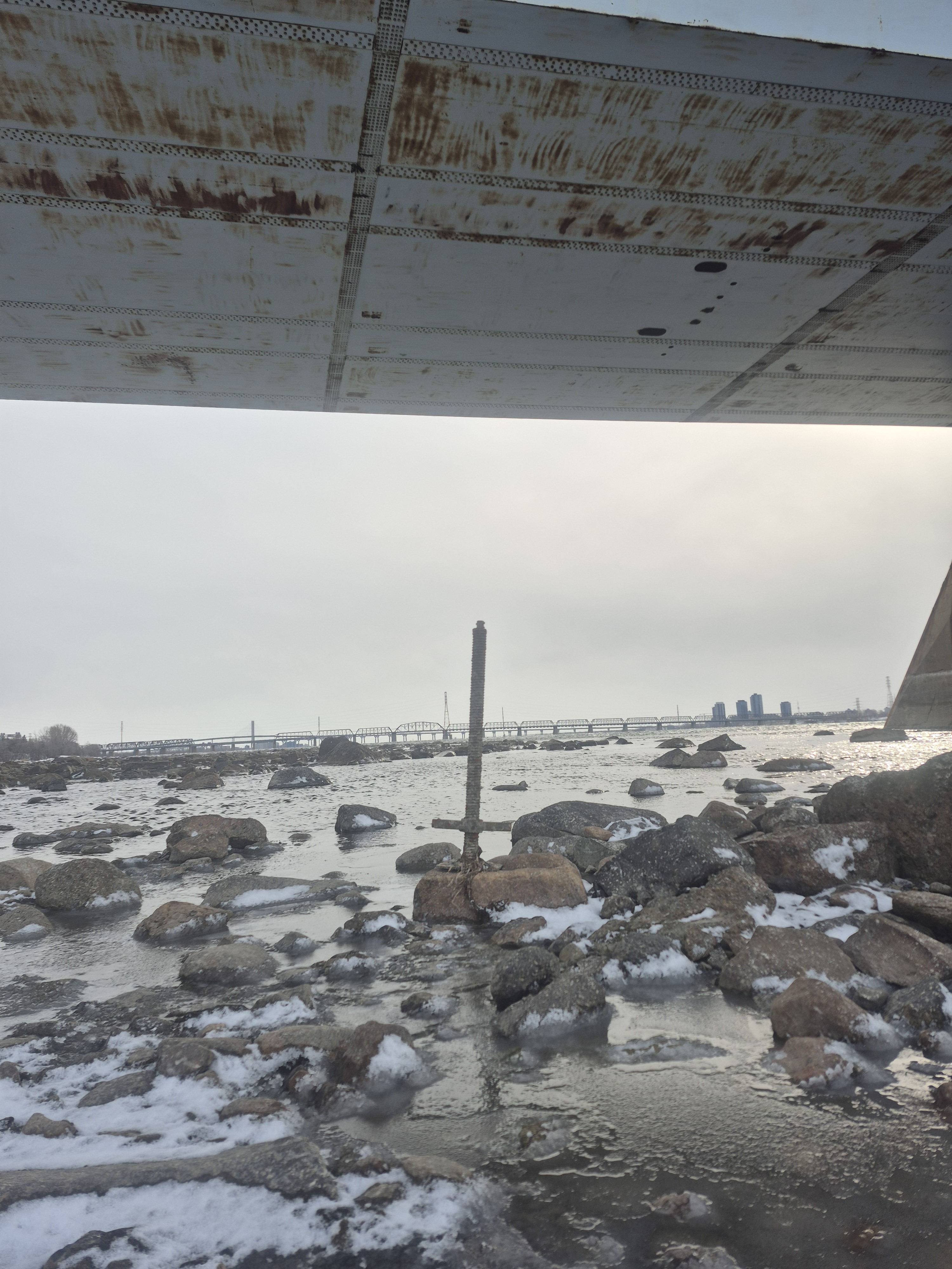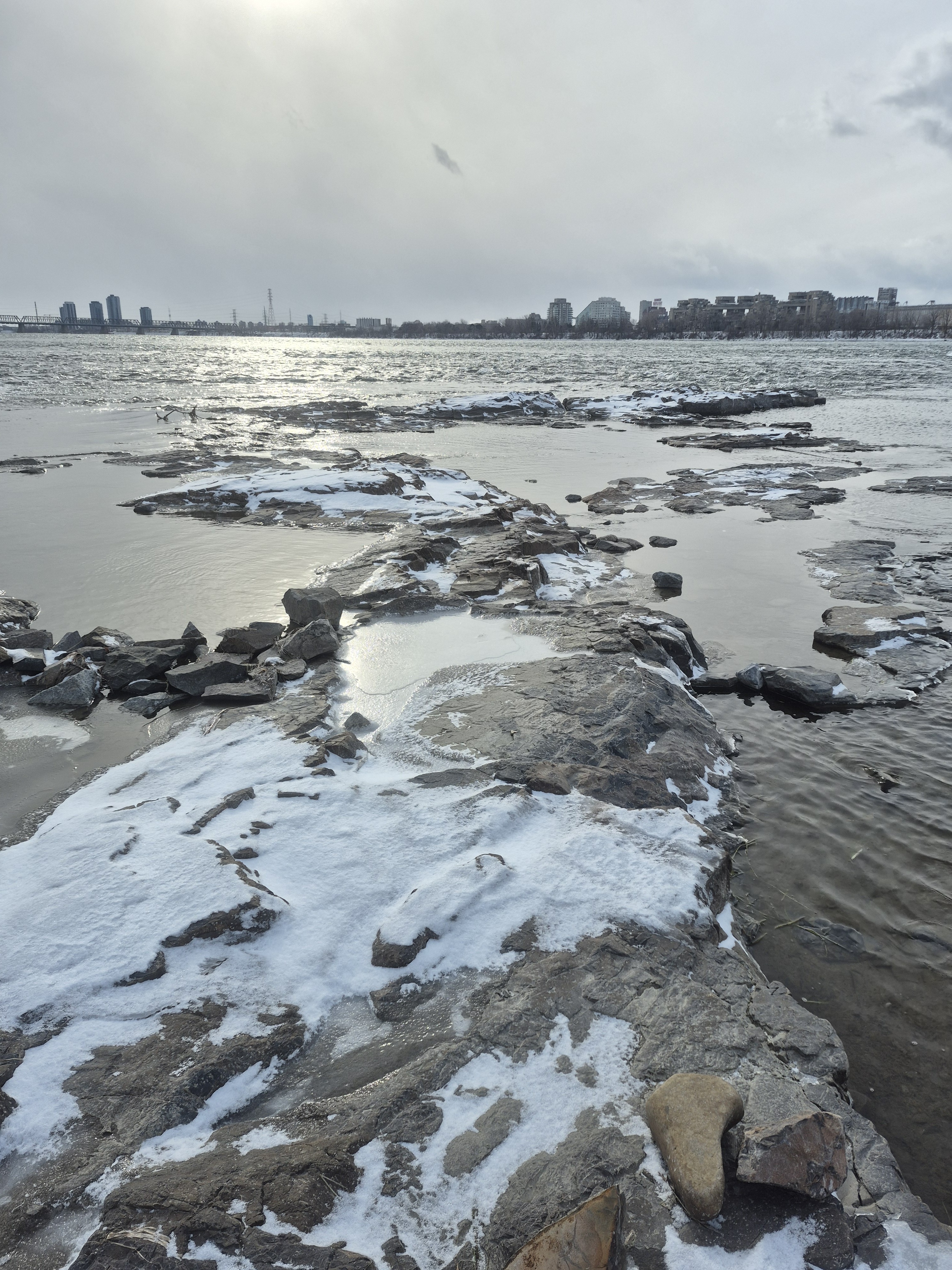 Un peu en amont, grâce aux faibles niveaux du fleuve, une plateforme du schiste local est découverte et représente probablement ce à quoi devait avoir l’air le paysage de l’ancienne ile.