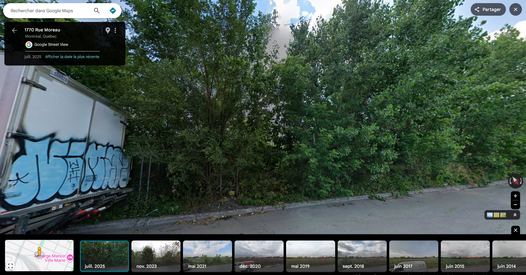 La vitesse à laquelle peut pousser les peupliers au soleil. En quatre ans, on passe d’une vue sur une friche fleurie à une rue ombragée !