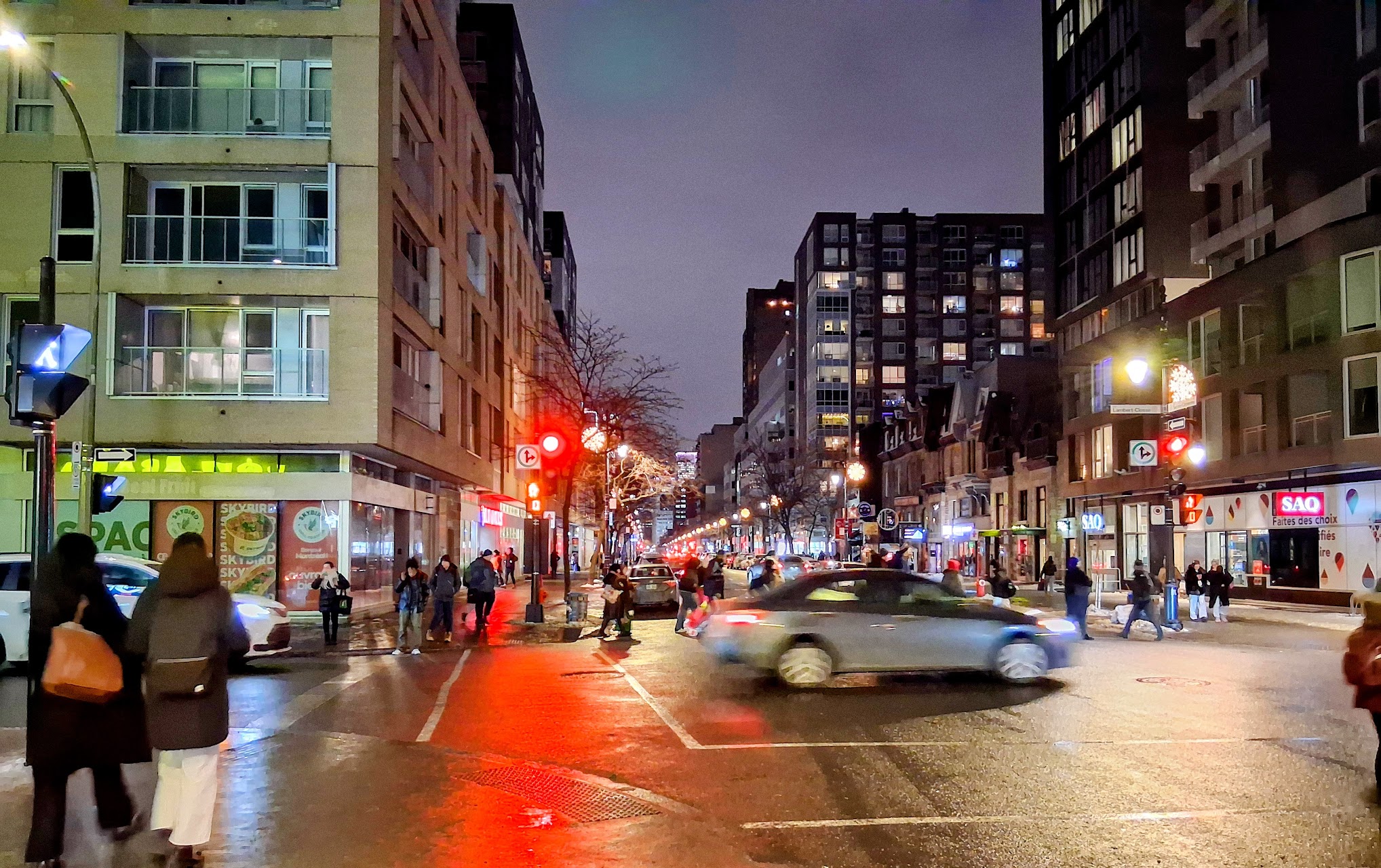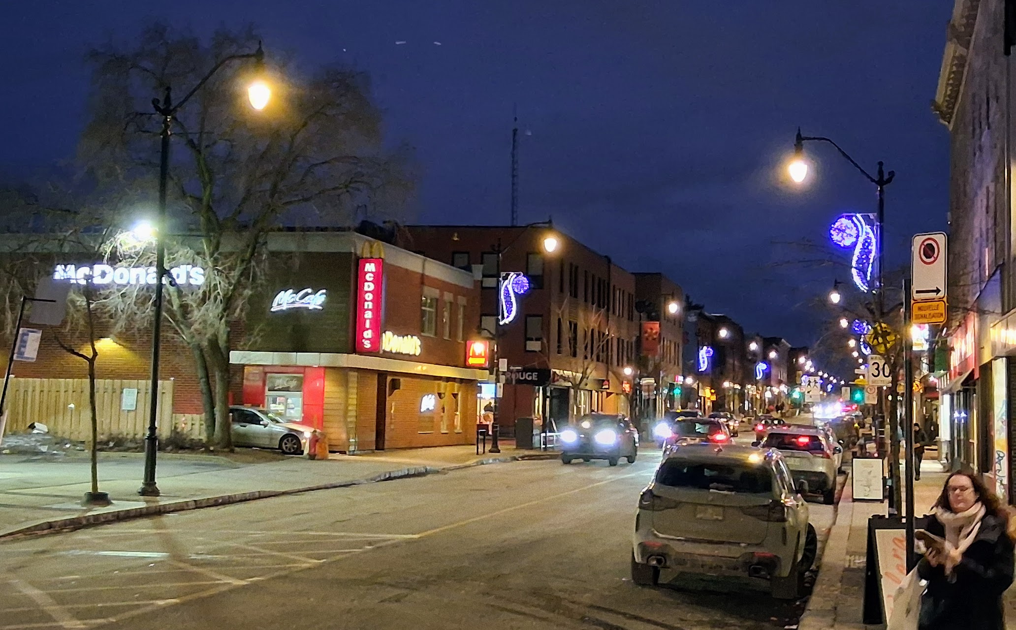 Ce sont les mêmes décos de Noël accrochées sur le La Baie et le Birks. Compte tenu que La Baie a fait faillite il y a plusieurs mois, il semble y avoir eu entente pour un emménagement identique sur les deux immeubles. Inusité, tout de même.