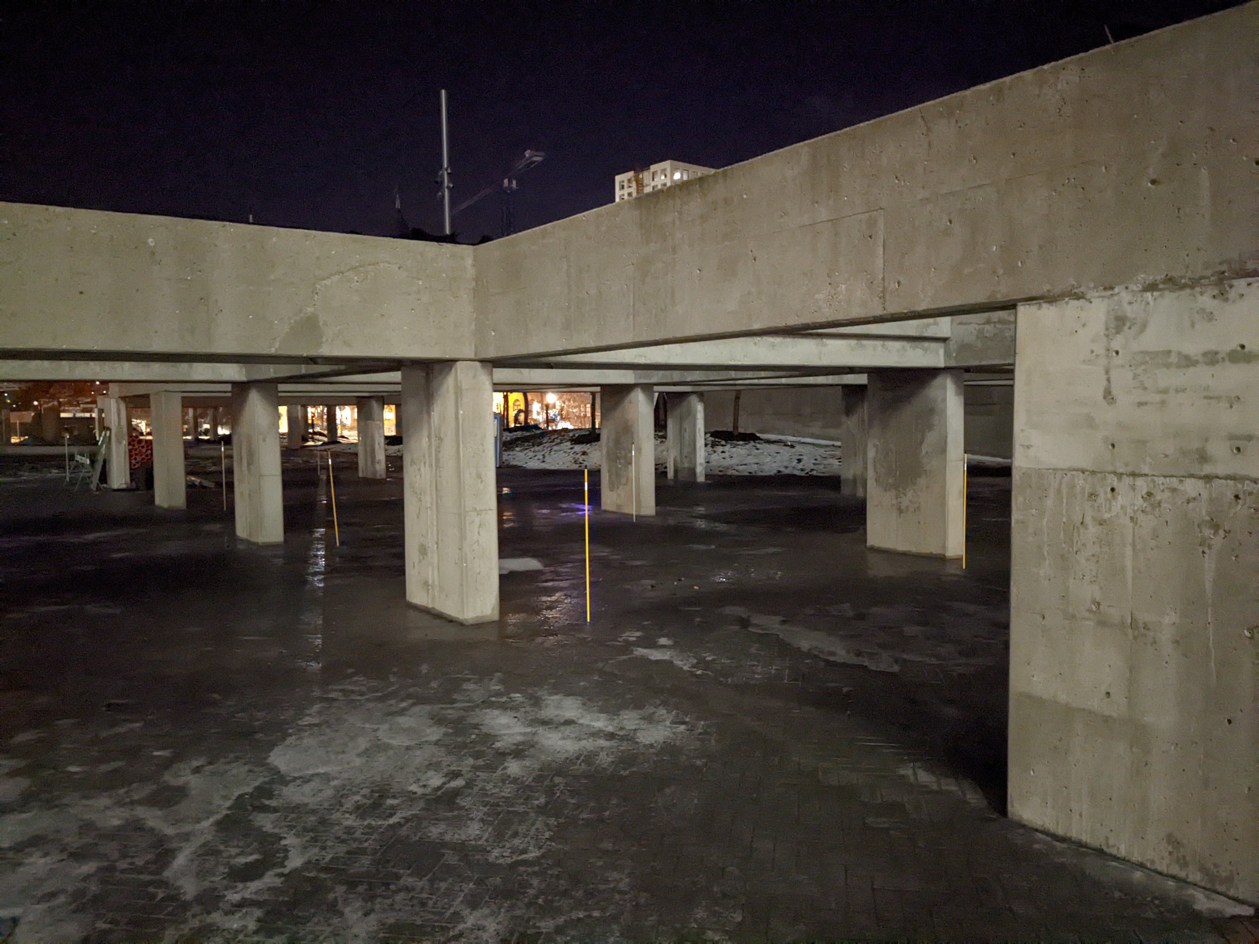 Pour la Gare, dans la partie gauche de photo, l’espace est occupée par des bureaux et les espaces de plancher aux sous-sols du bâtiment sont très particuliers, et probablement impossible à transformer en restaurant.
