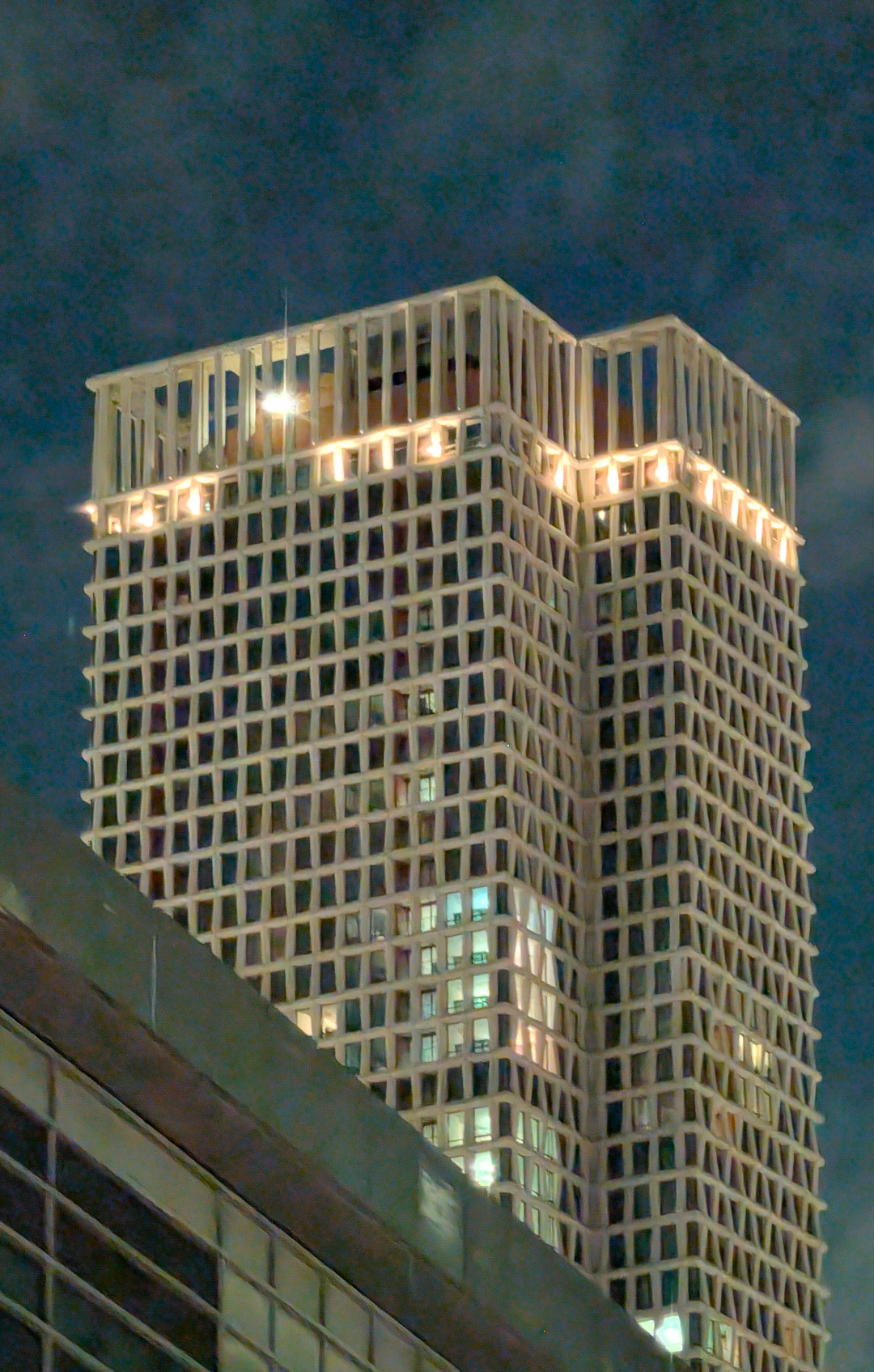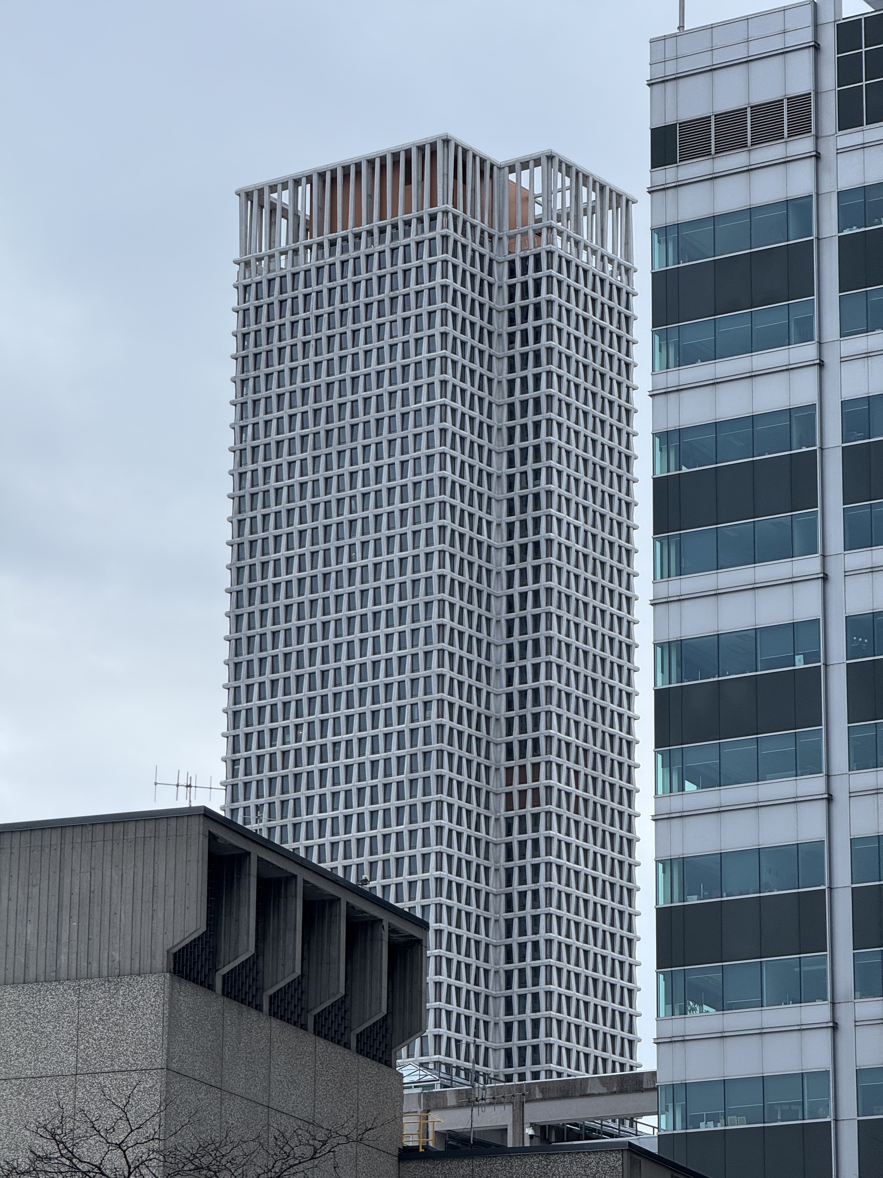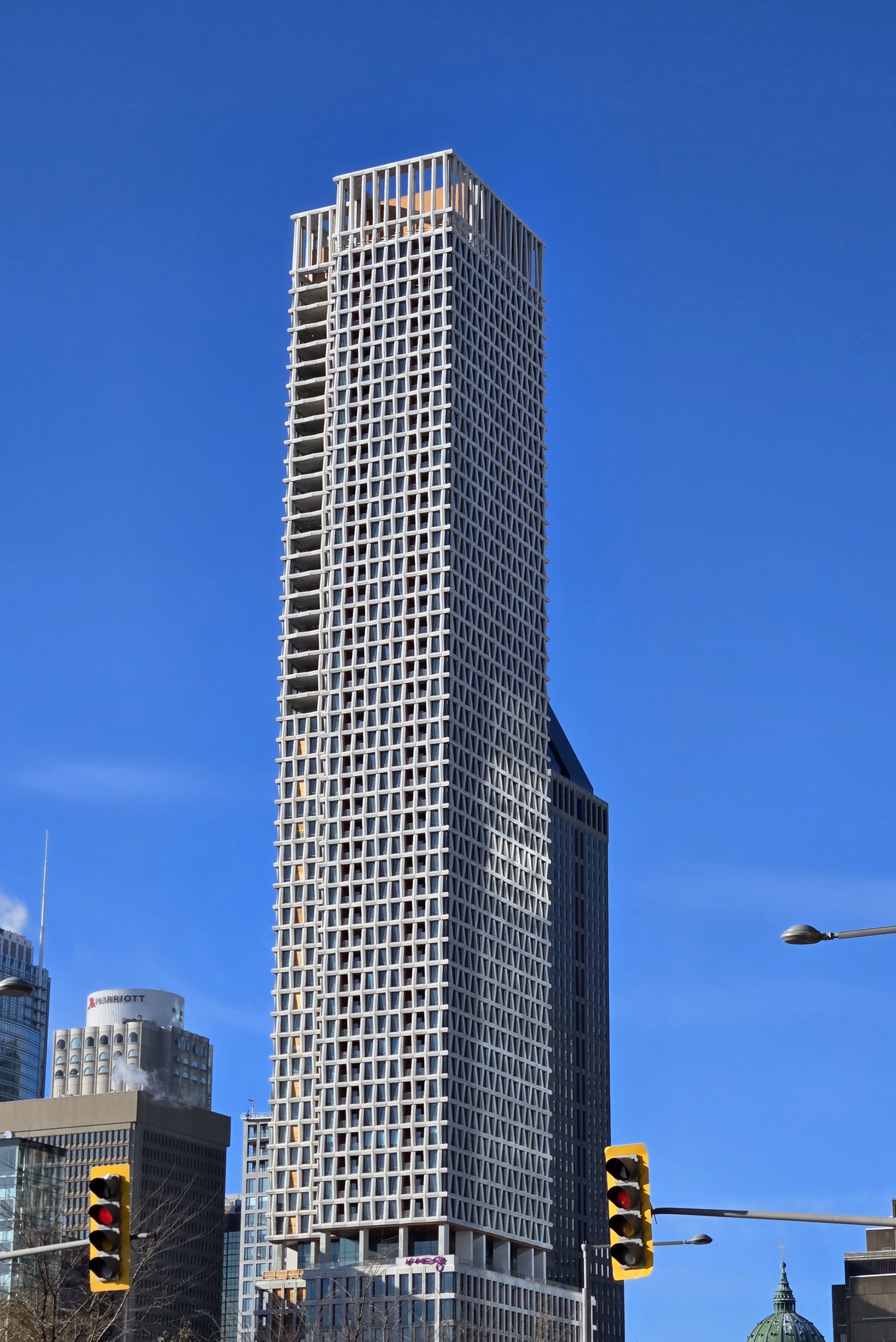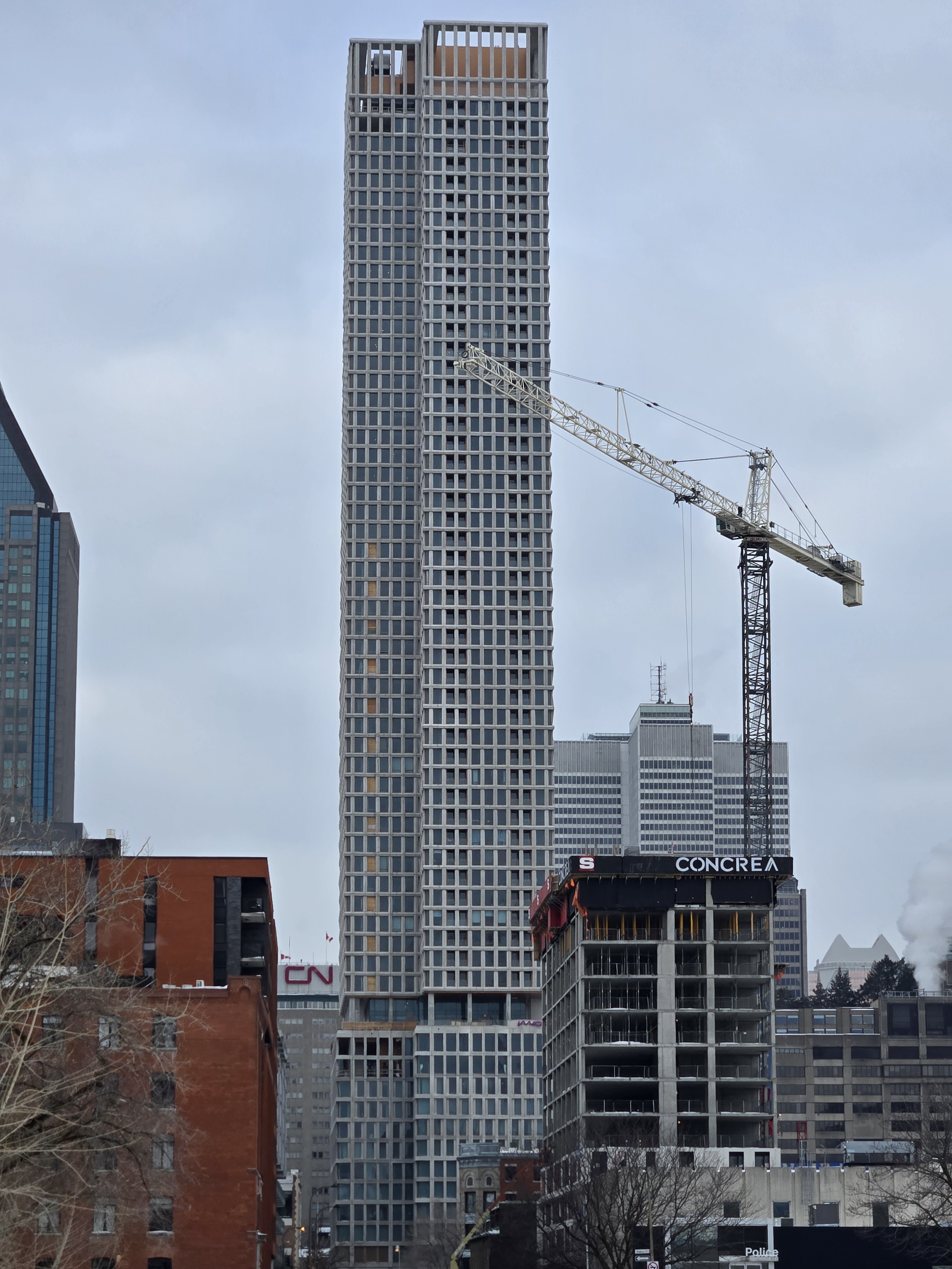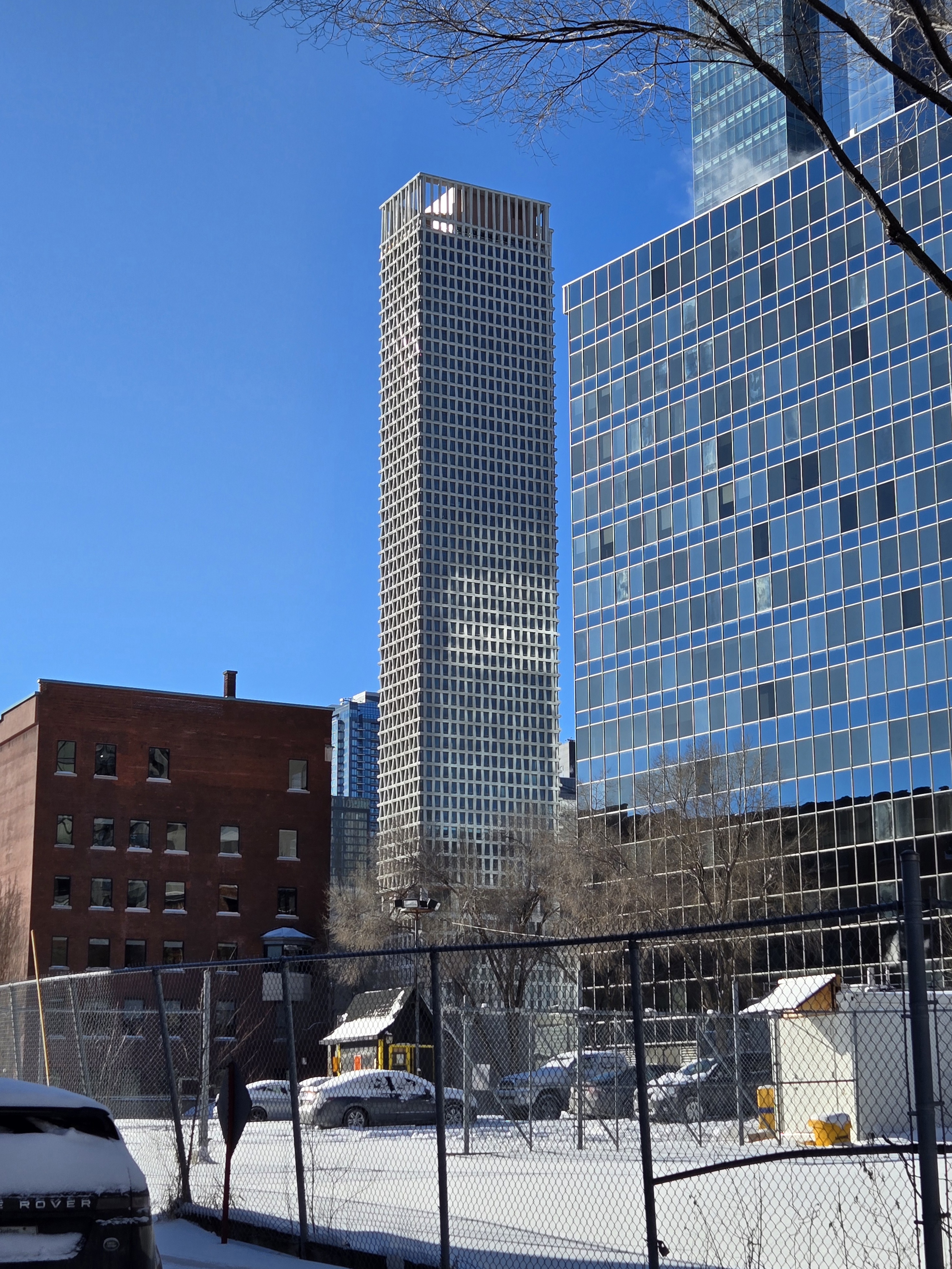 Surprenant que Chevalier Morales mentionne que le projet soit “terminé” sur leur site web, alors qu’il est pourtant encore fortement actif, la fenetrastion n’a pas encore été posée aux étages supérieurs sud-ouest, qui ne sont également pas complétés à l’intérieur, et il y a toujours plusieurs plaques de contreplaquées sur certaines ouvertures au sud de la tour.