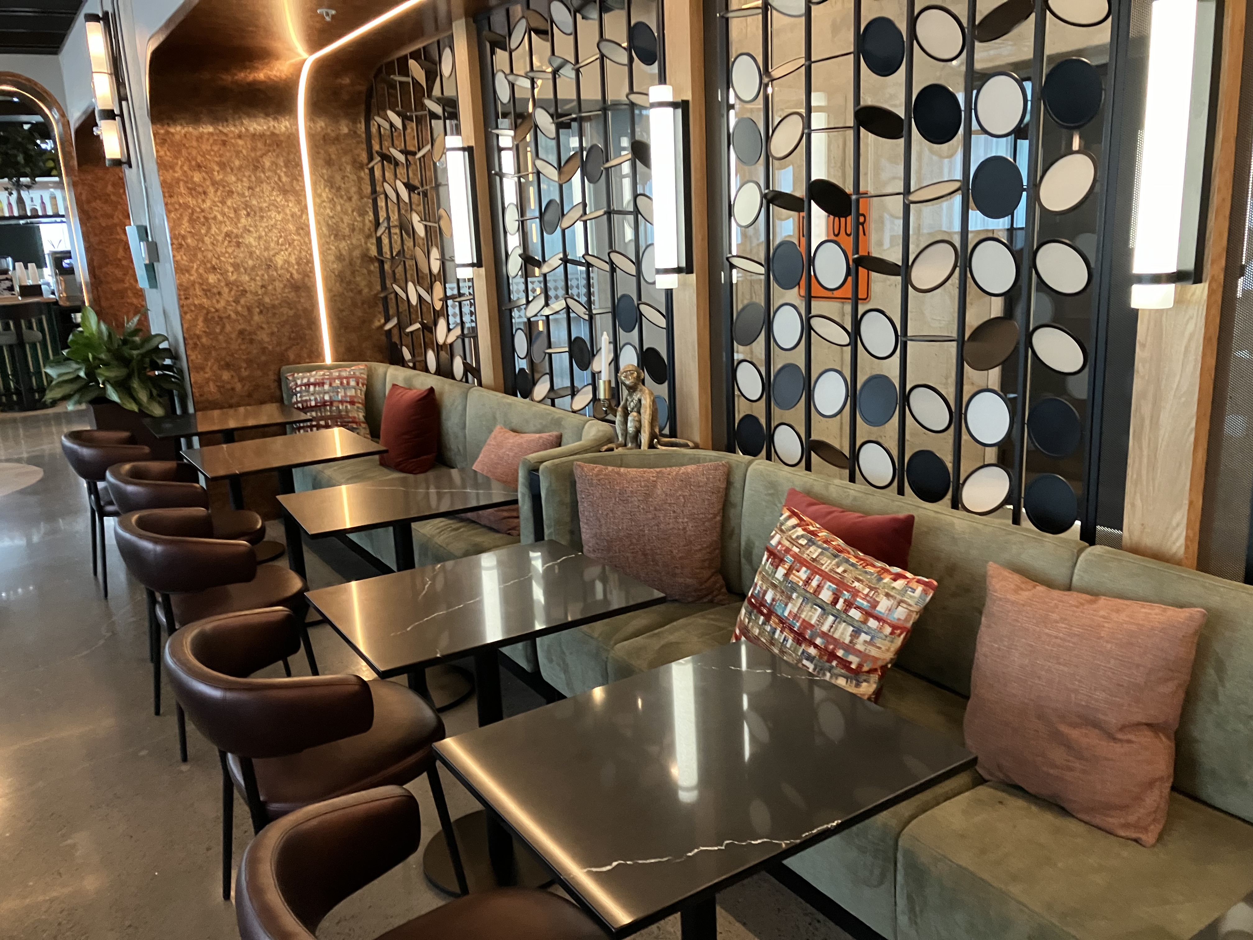 Ce sera l’espace de petit déjeuner de l’hôtel mais le site parle aussi de plats midi et soir sans précision. Il faudrait trouver un menu. Le site recommande des restos comme Portus 360 et Monarque donc c’est pas original ou gastronomique sur place.