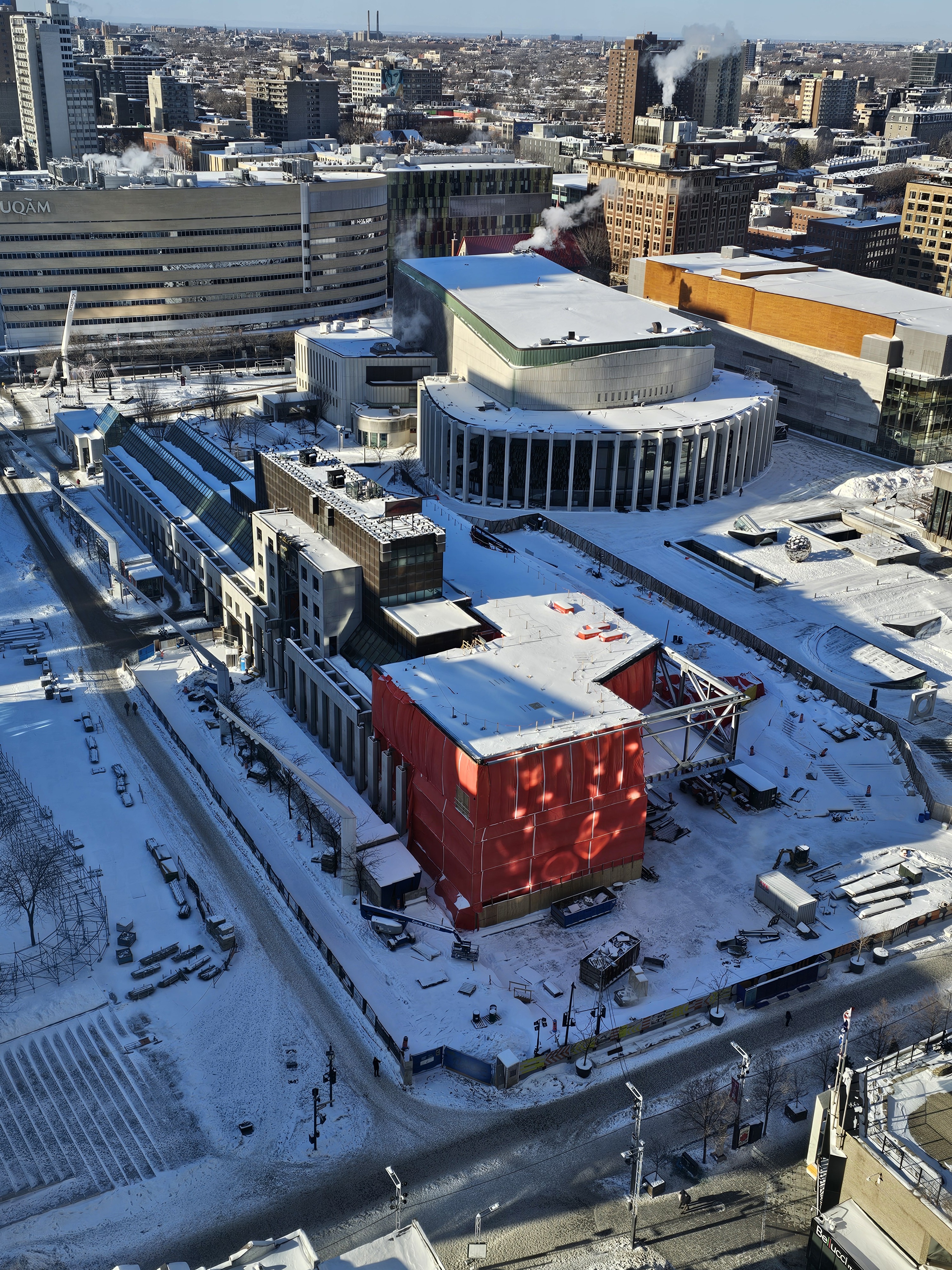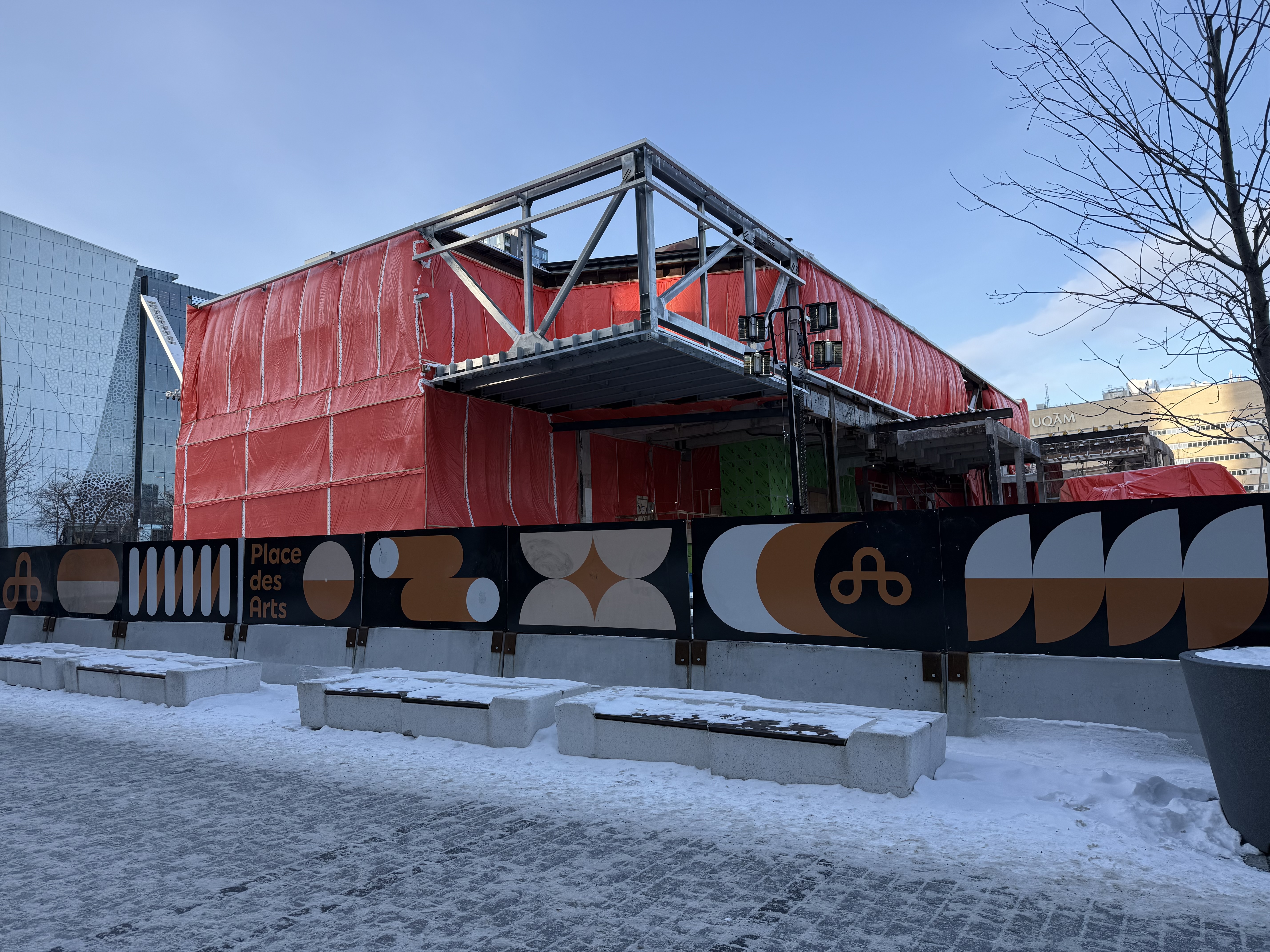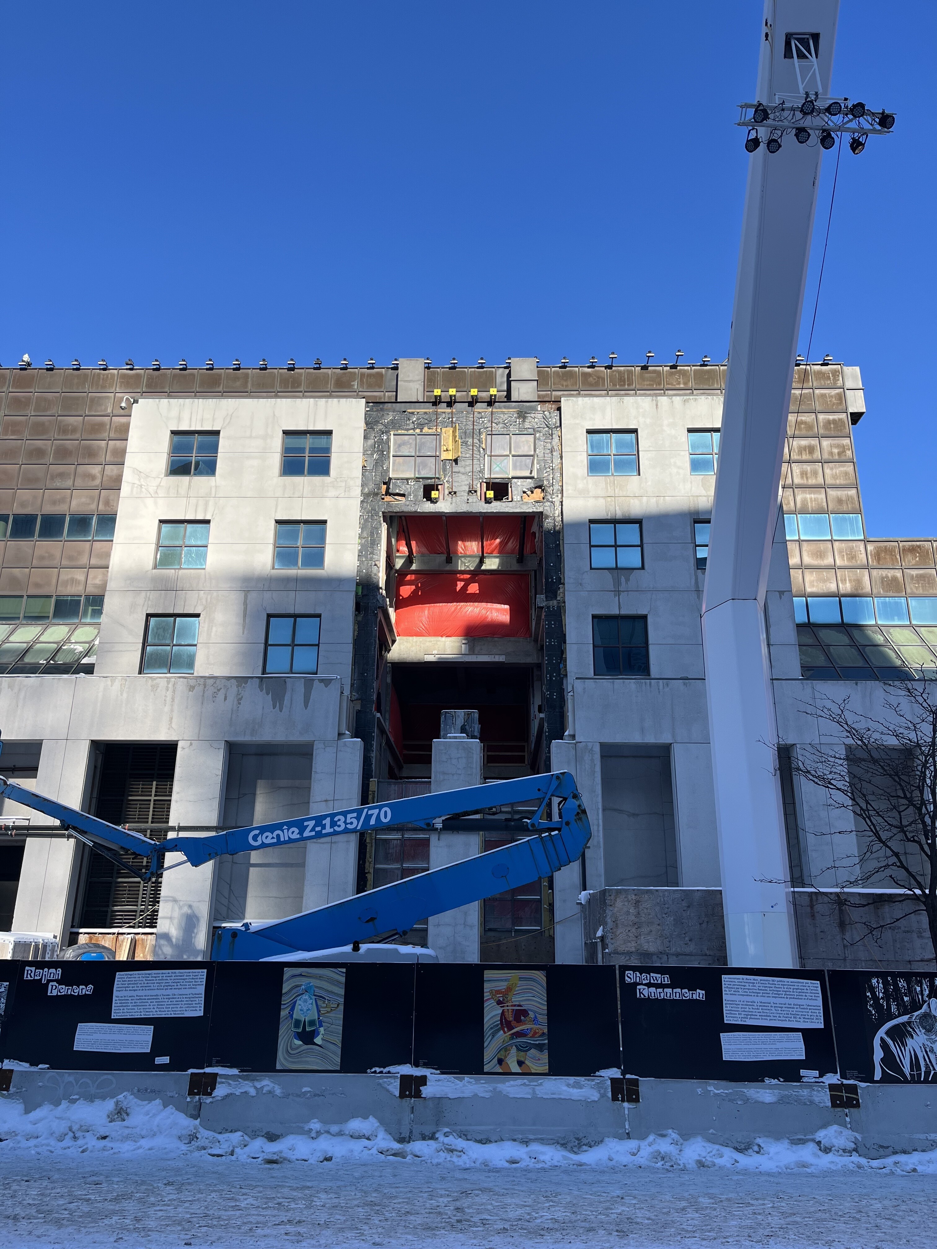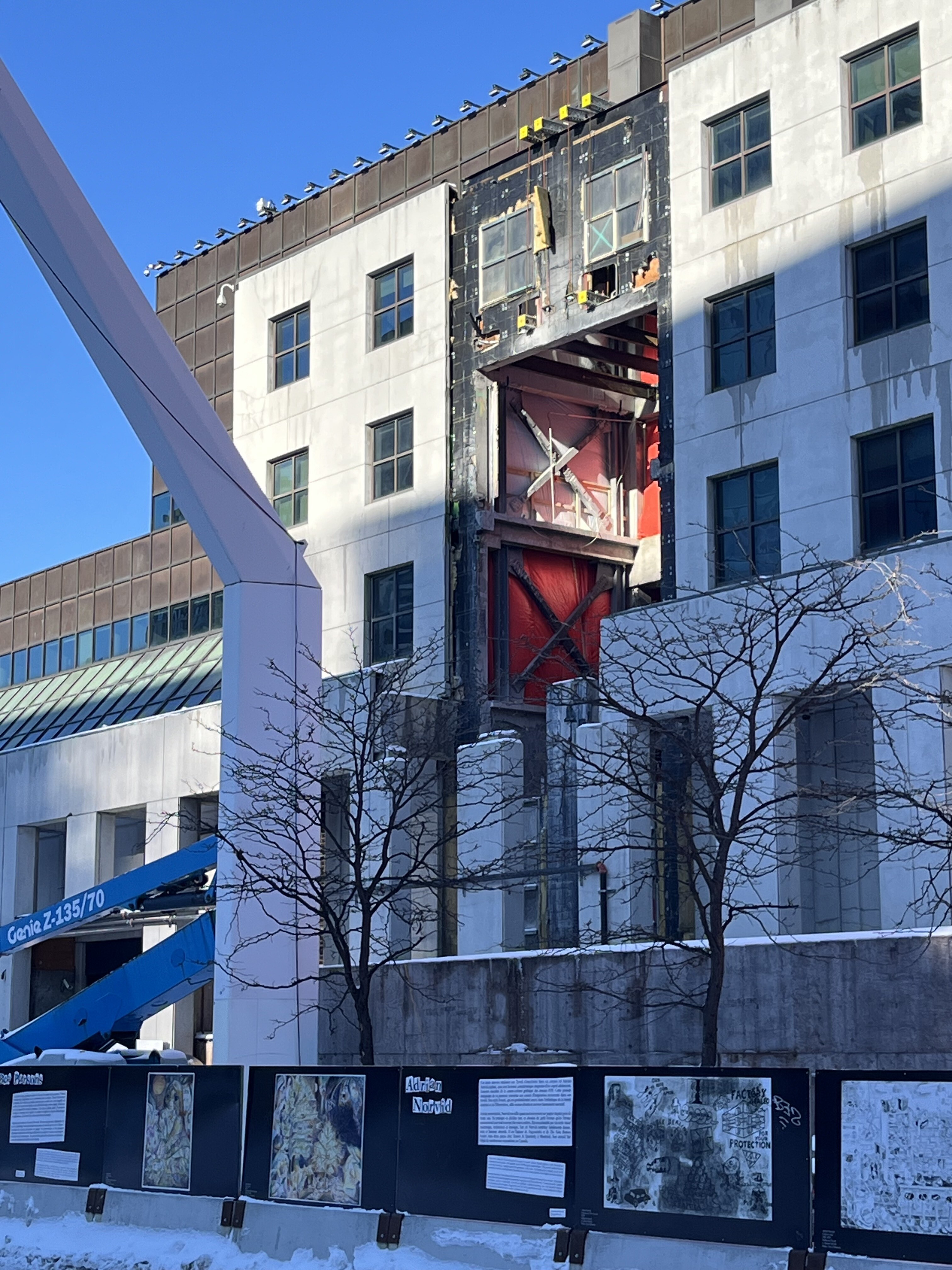 Travaux du Musée d’art contemporain de Montréal, adjacent à la Place des Arts, photographiés l’hiver dernier