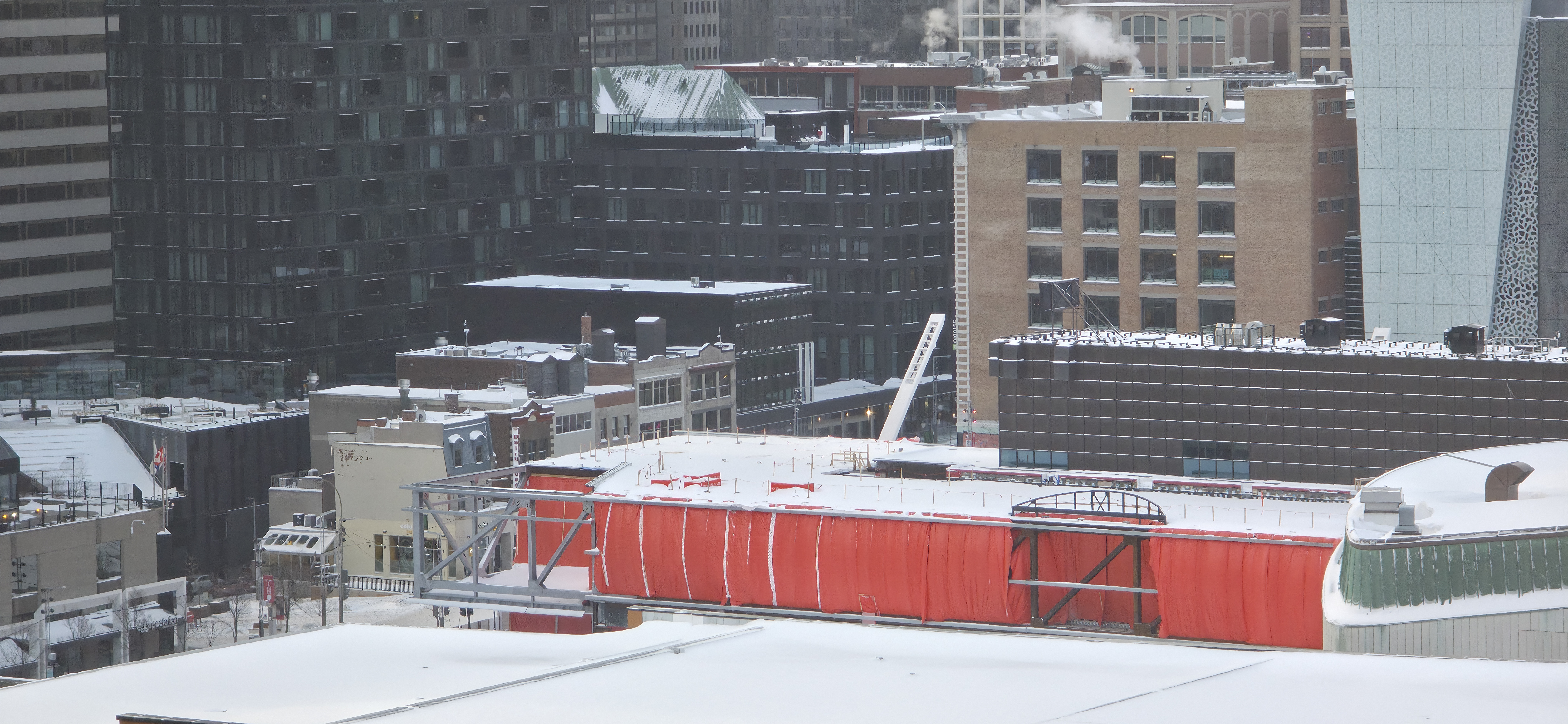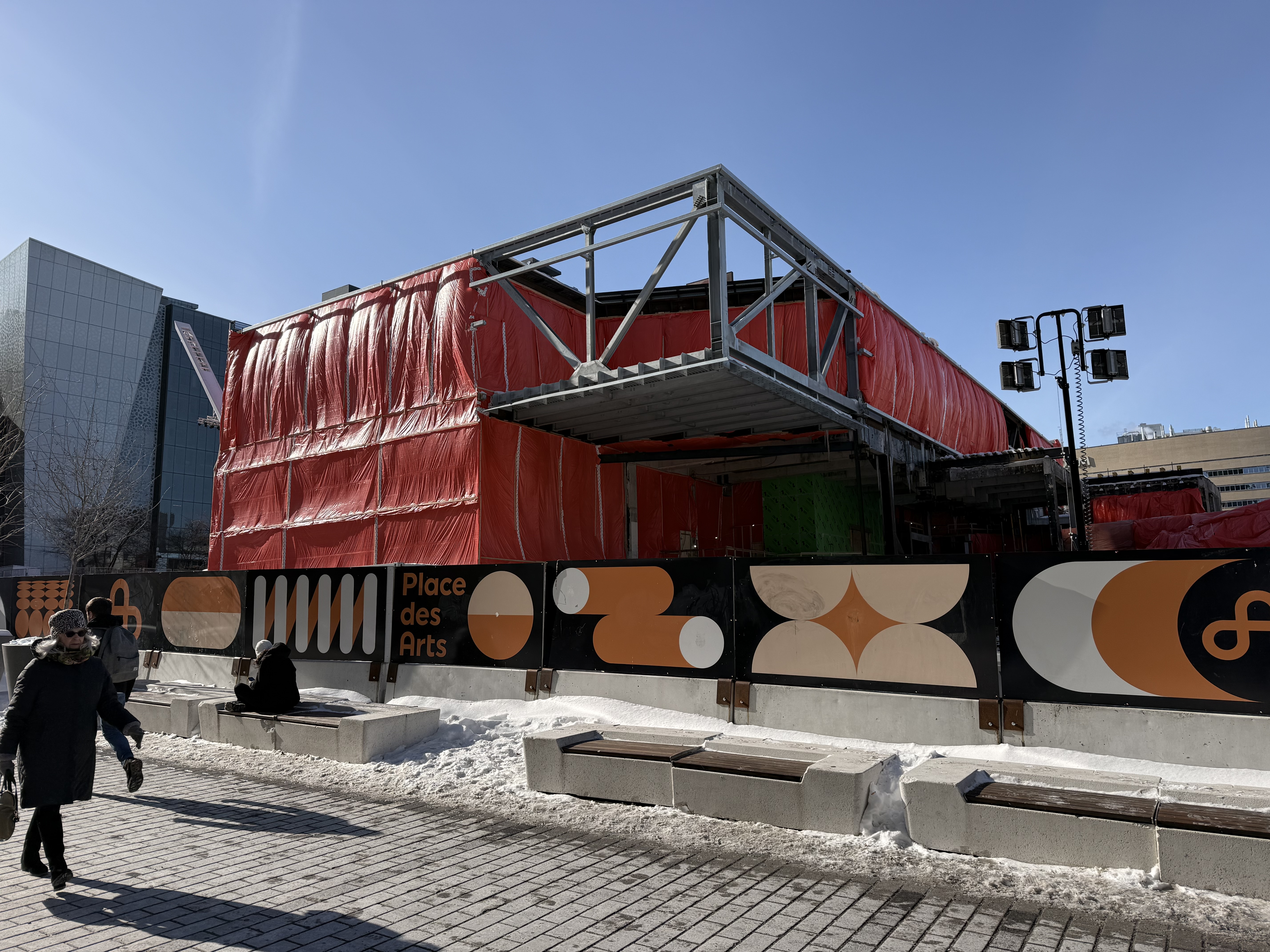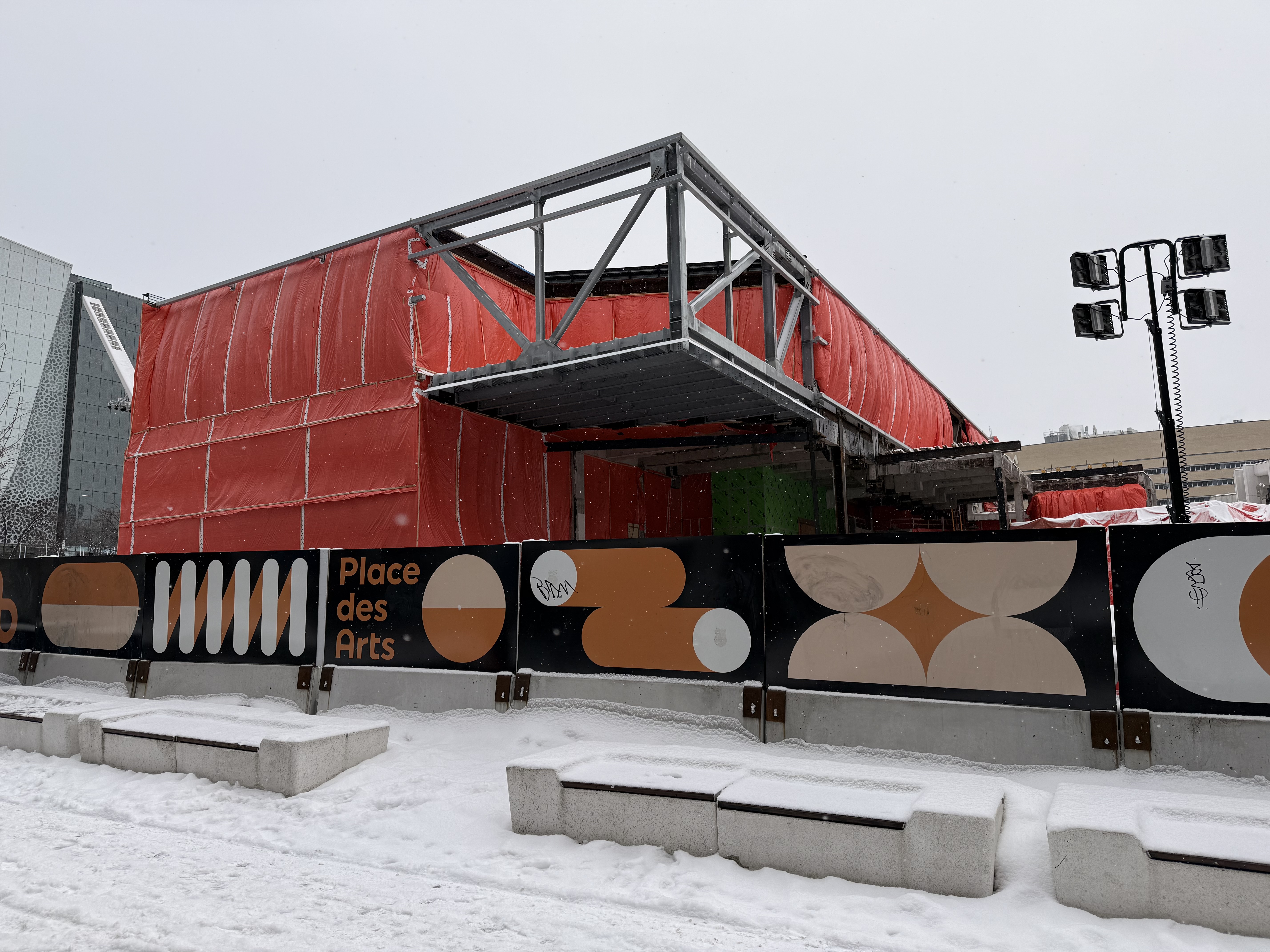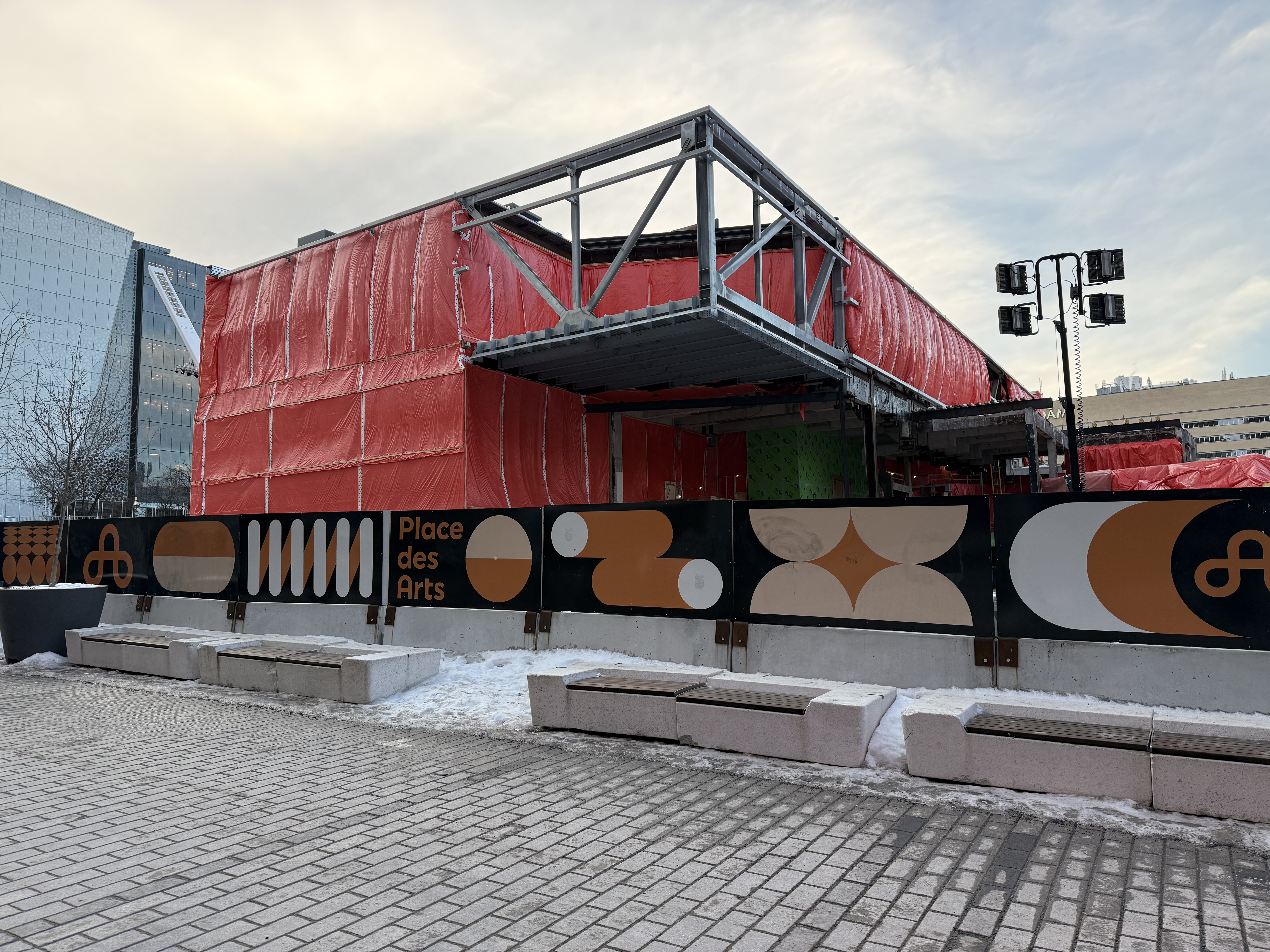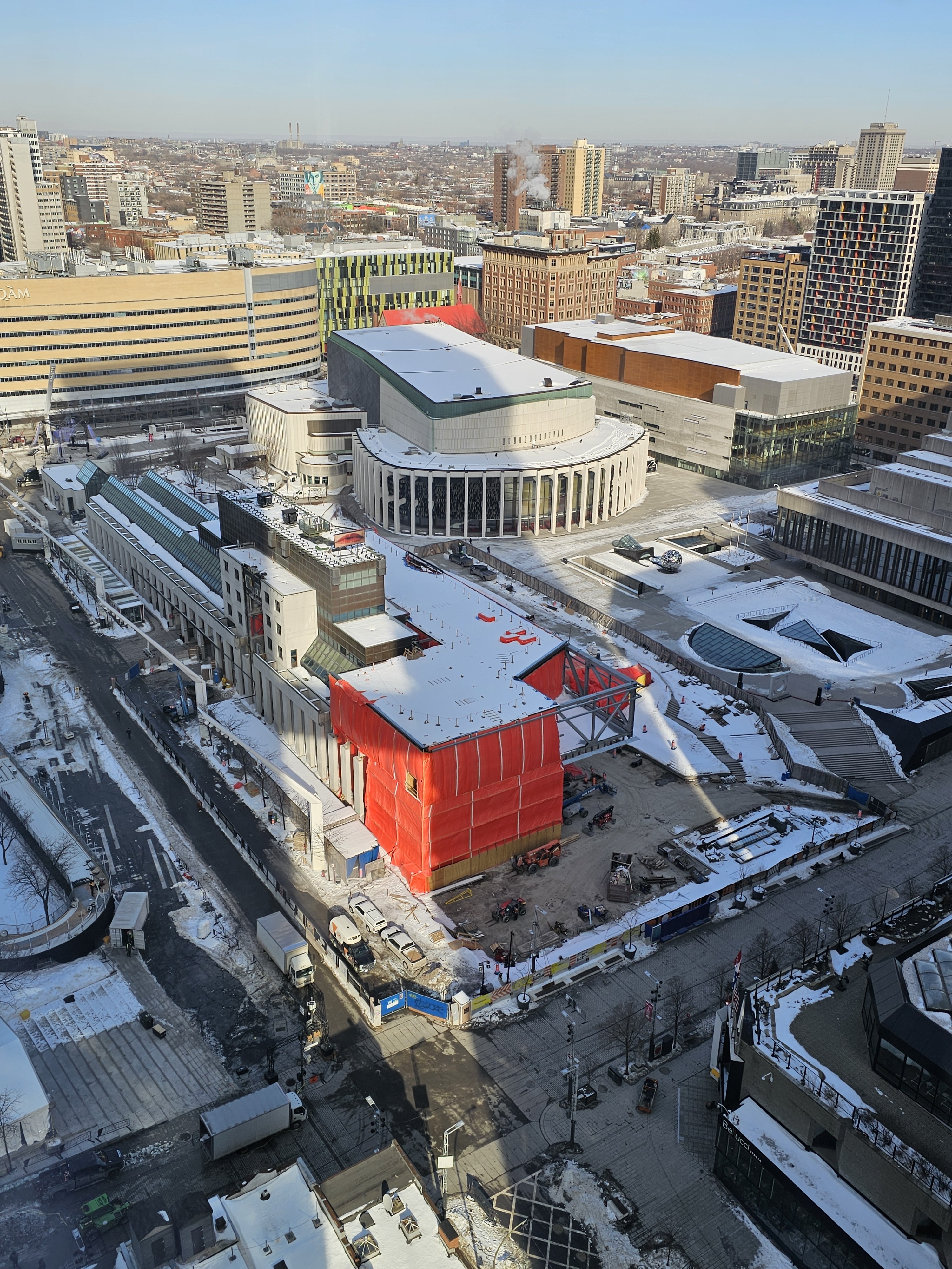 Travaux du Musée d’art contemporain de Montréal, adjacent à la Place des Arts, photographiés l’hiver dernier