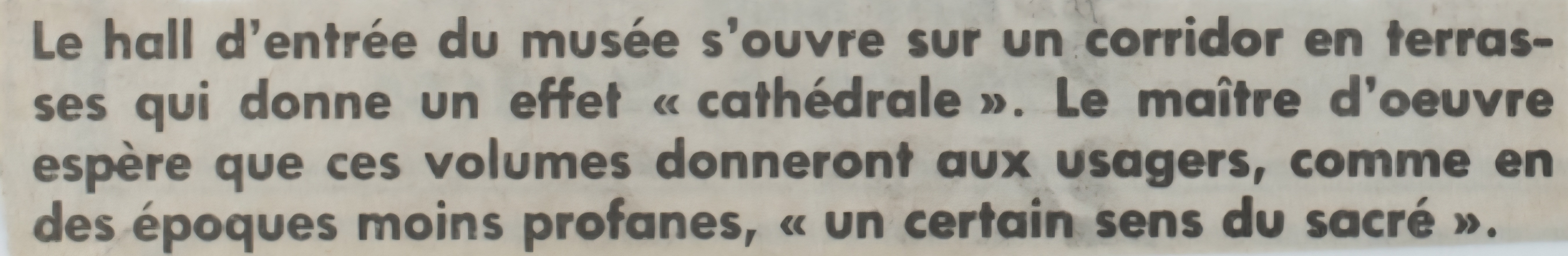 Cette version n’a pas été complétée. Les travaux ont été arrêtés après l’élection des Libéraux de Robert Bourassa en décembre 1985. Ils ont repris 4 ans plus tard en 1989 dans une nouvelle version, finalement inaugurée en 1992.