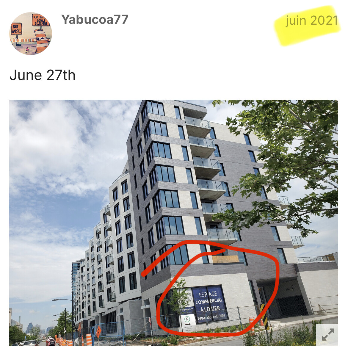 J’essaie simplement de comprendre ce phénomène qui permet a un développeur d’avoir des locaux vides…..pendant plus de 5 ans…..je comprend que ca doit etre un defi avec des enjeux….mais après 5 ans…..il me semble possible avec un peu de créativité de créer quelque chose……qui permettrais de donner au secteur la vitalité vendu par le promoteur lors du lancement de projet et à travers toutes leurs communications de type marketing avec des beaux rendus…..C’est facile de vendre une belle vitalité, ca semble être une autre chose de la livrer