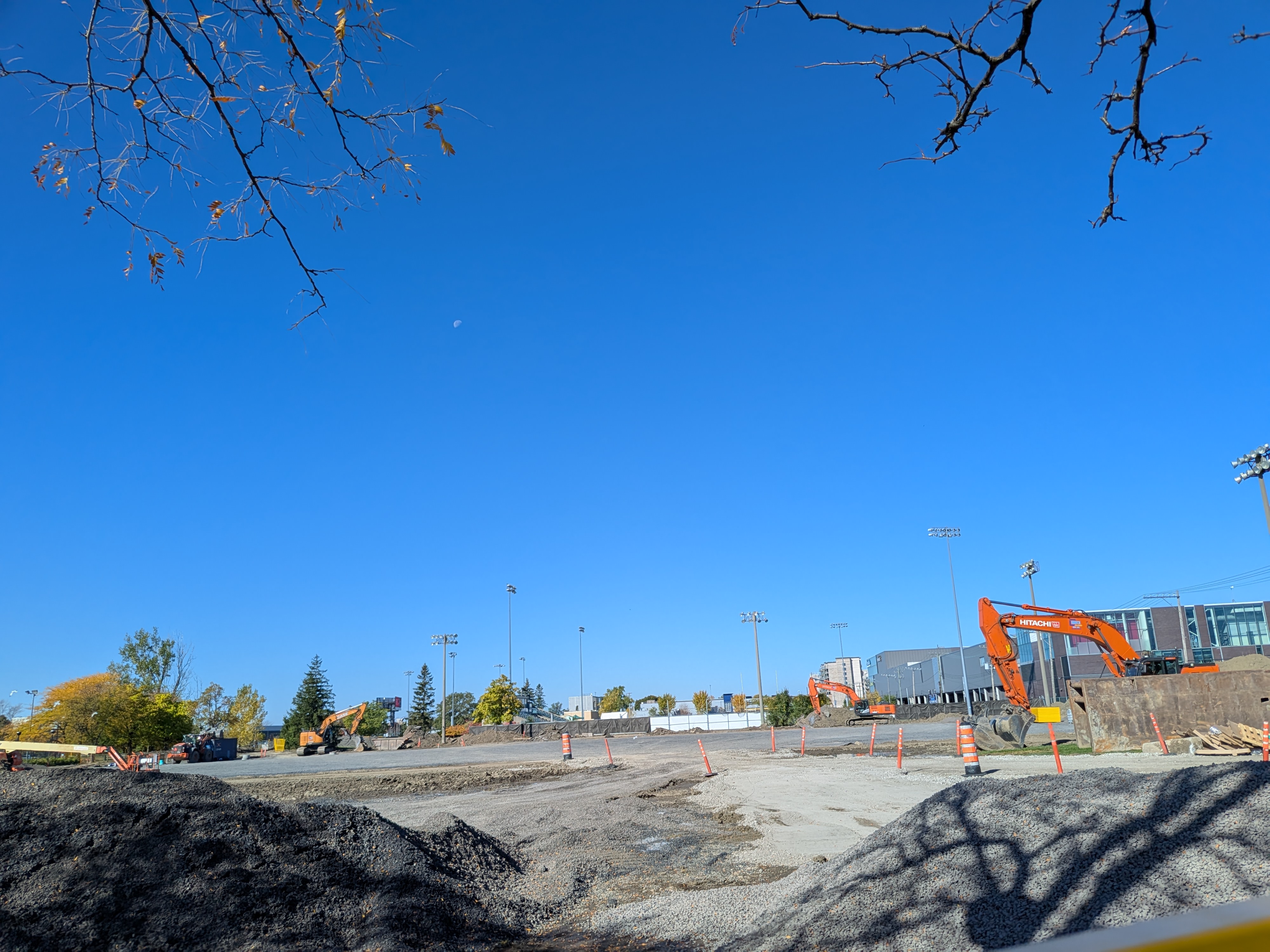 Ce chantier est d’une dépression totale. On a rasé les buttes au nord et à l’est du parc, de même que tous les arbres matures qui s’y trouvaient. Aux information que j’ai à date, il ne semble pas y avoir d’architectes impliqués dans la planification du site. C’est un projet d’ingénieur qui, dans la plus sobre fonctionnalité, viendra ignorer les enjeux du site.