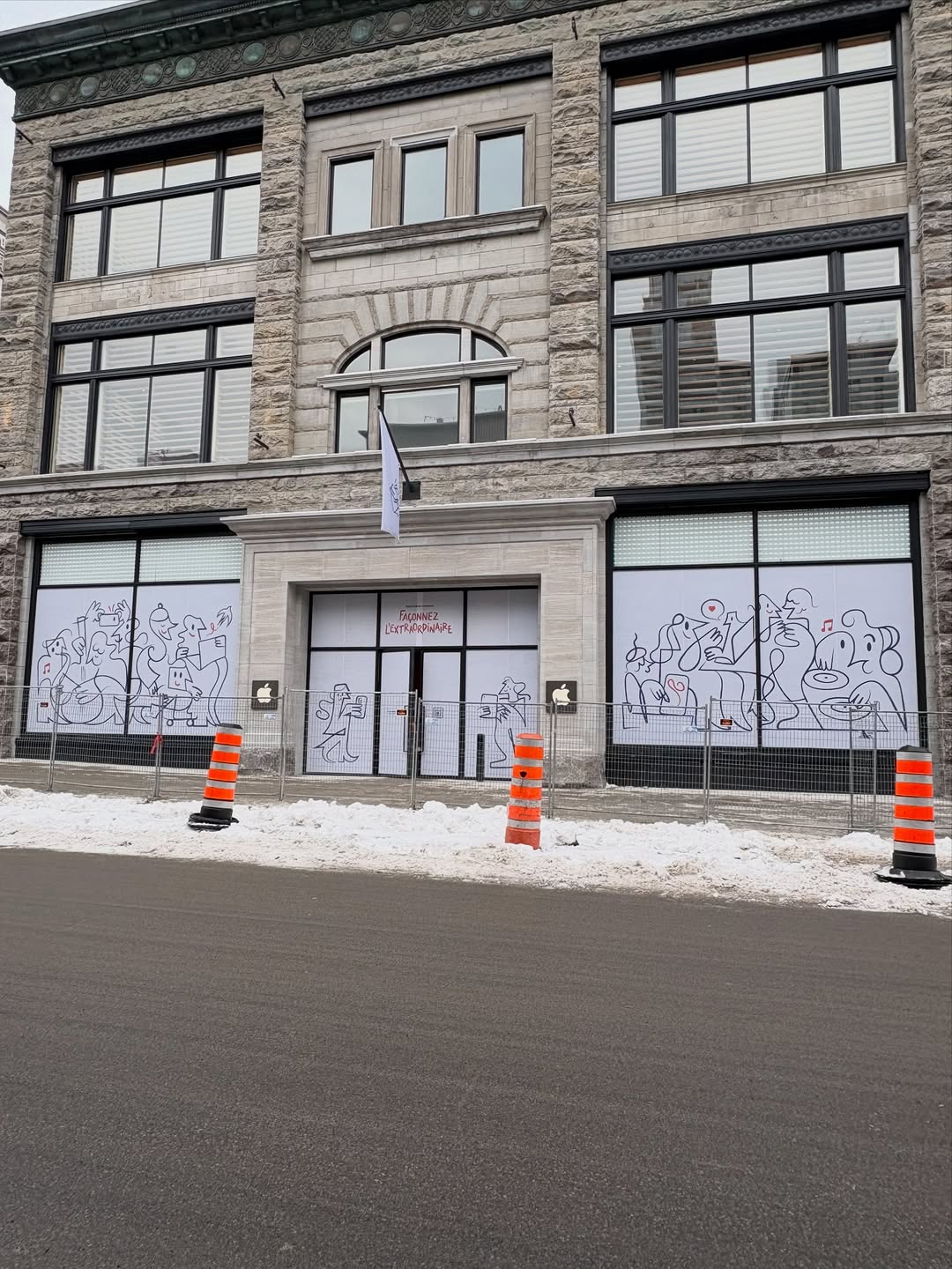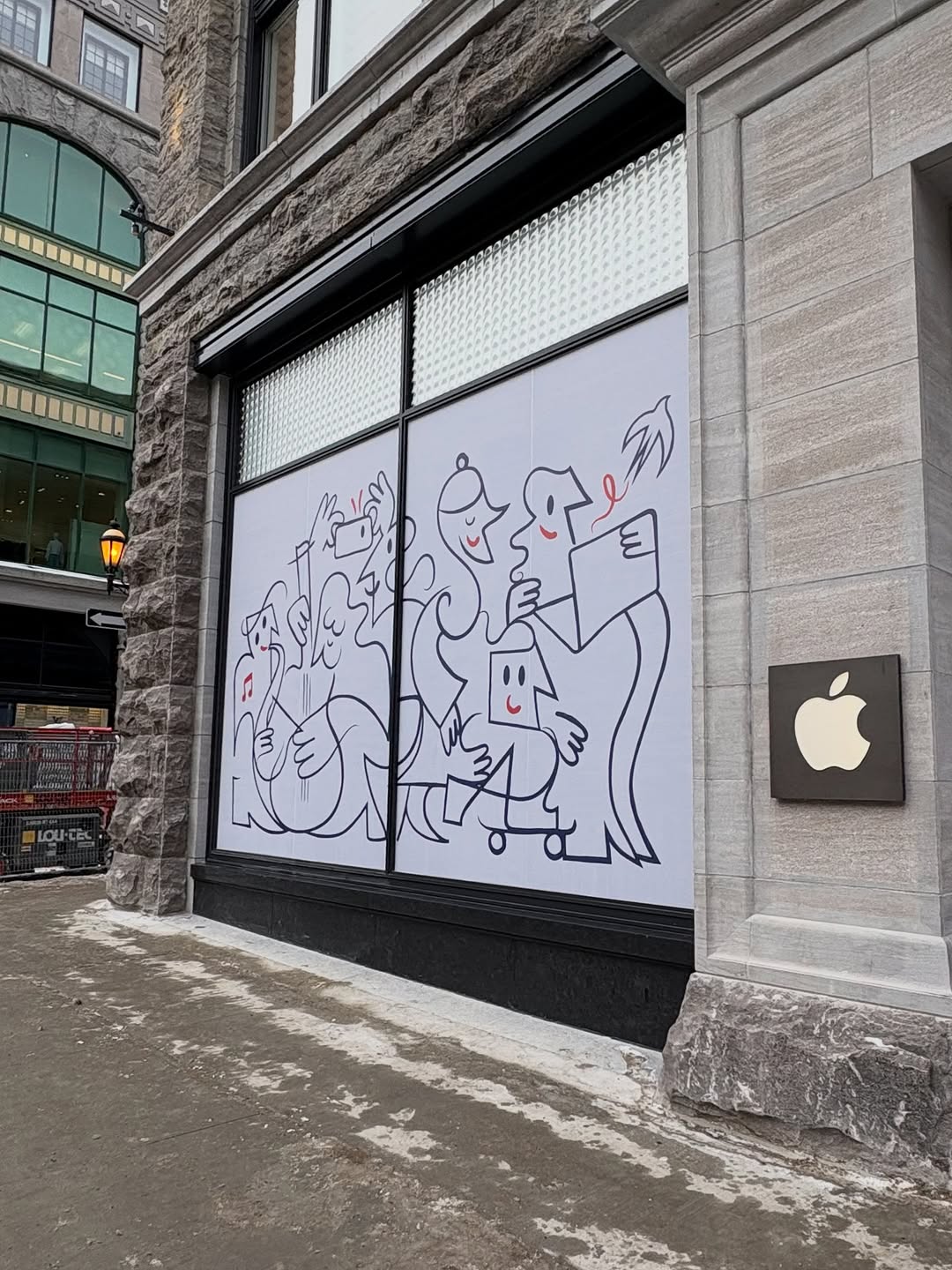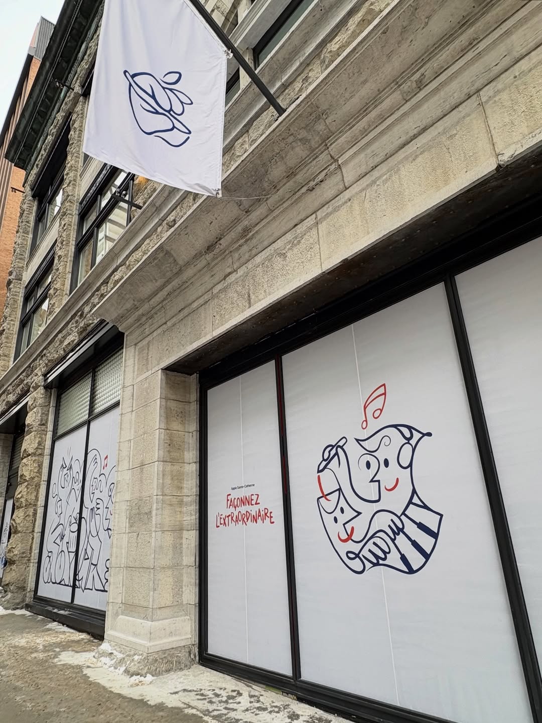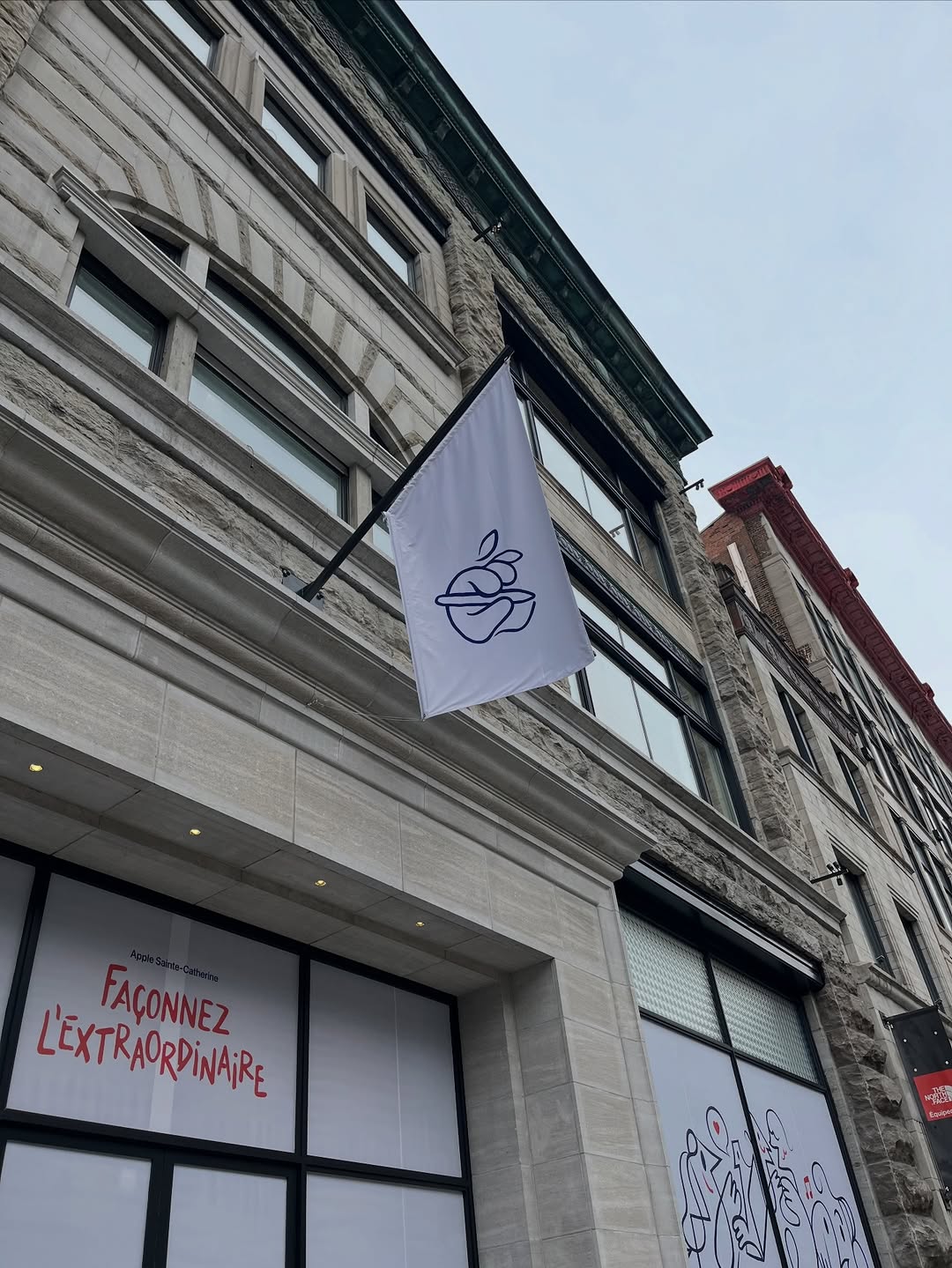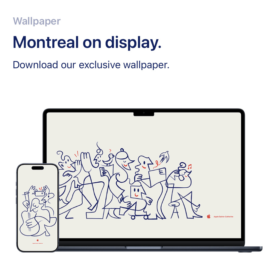 True, Mondo_Grosso, the Apple stores, especially the flagship stores have taken big steps toward the concept of experiential retail. This sort of store design emphasizes amenities that can’t be duplicated on line and focuses on incentivizing the in-person, hands-on customer to return again and again. The intersection of Sainte-Catherine and de la Montagne is certainly propitious for Apple: pricey high-tech just across the street from pricey apparel and accessories.