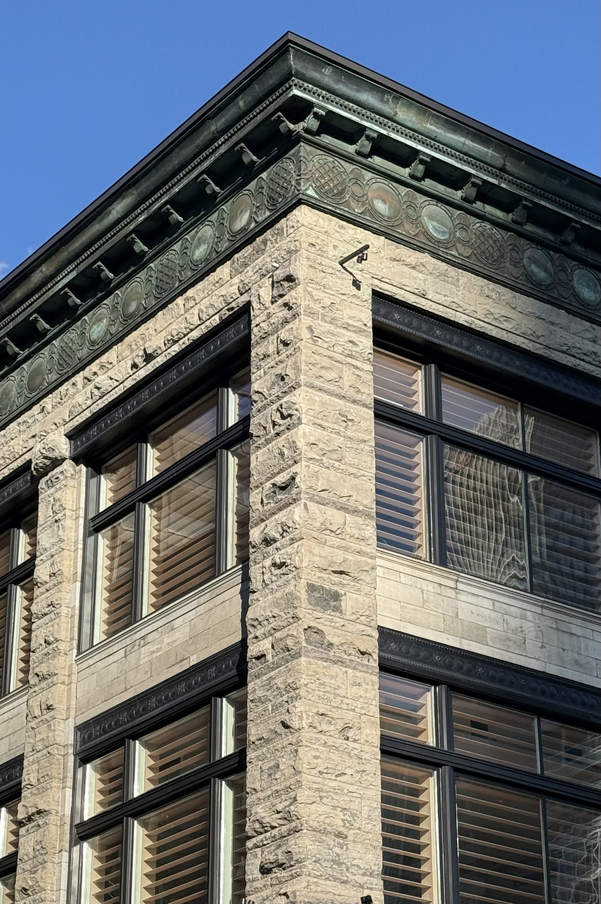 Mais c’est peut être moi, elle ne me semble pas vraiment restaurée. Peut être que c’est justement parce que c’est du cuivre et que je m’attendais à quelque chose qui ressemble plus a une corniche montréalaise fraîchement peinte. Je ne doute pas qu’il y a eu énormément de travail, mais je n’ai pas les connaissances pour vraiment l’apprécier. Quelqu’un peut m’éclairer?