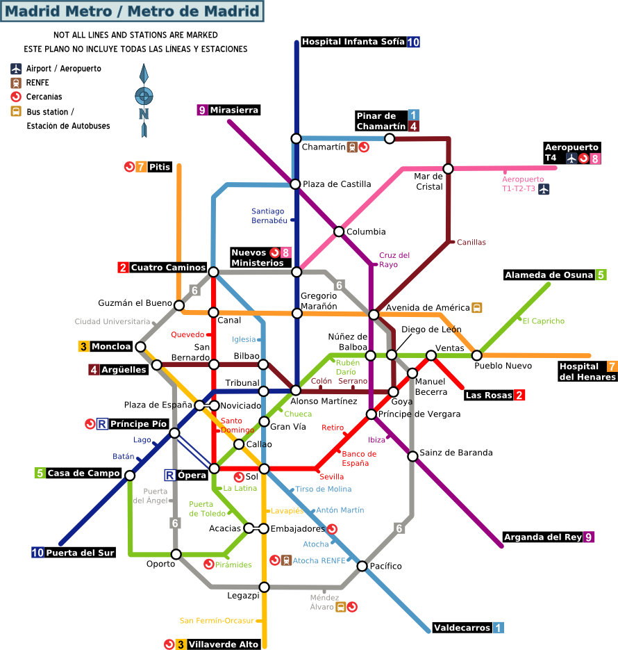 Une bonne partie des lignes de metro de madrid ont des quais de 90 metres soit a peine un peu plus long que les 80 metres du rem.