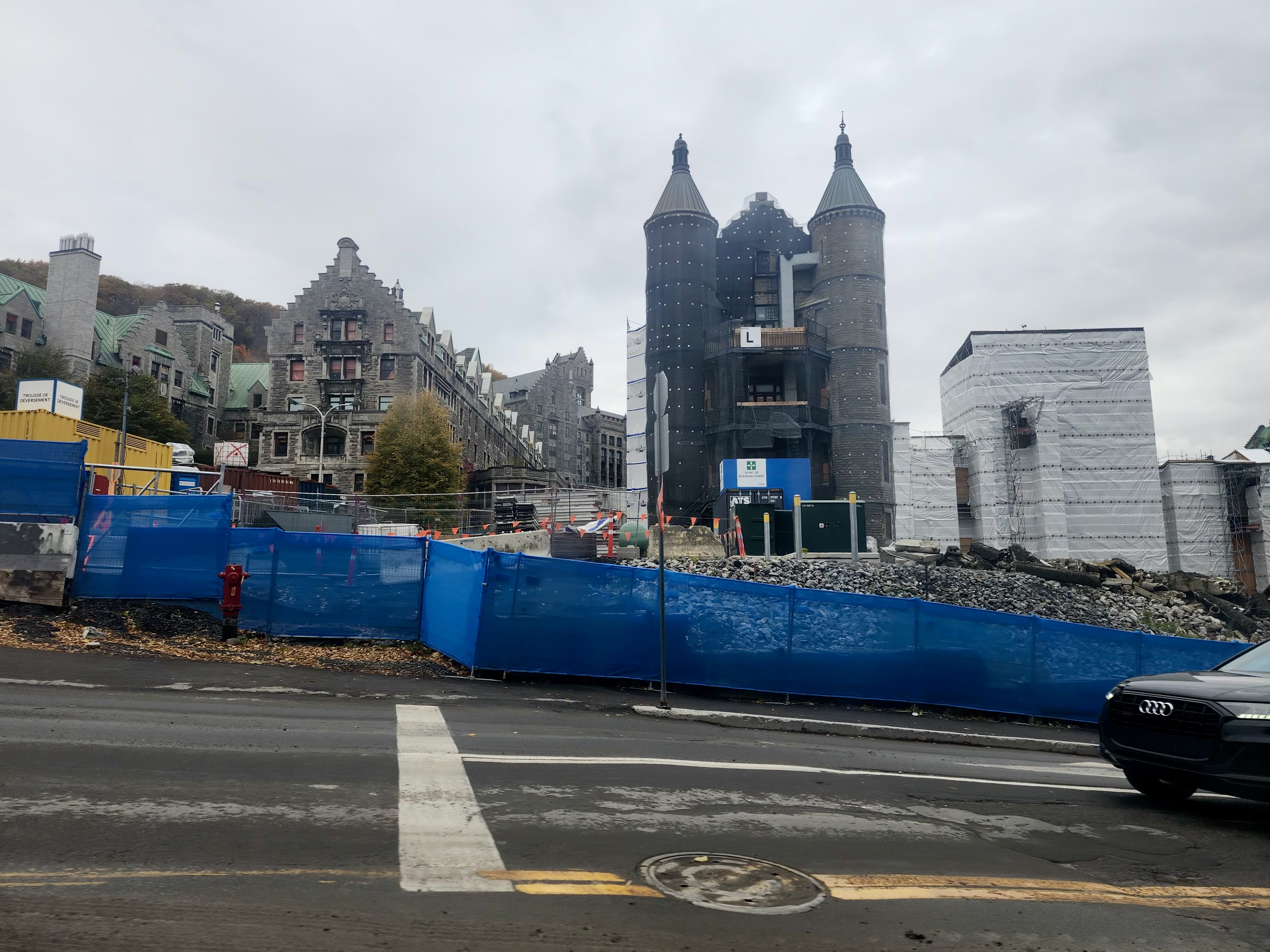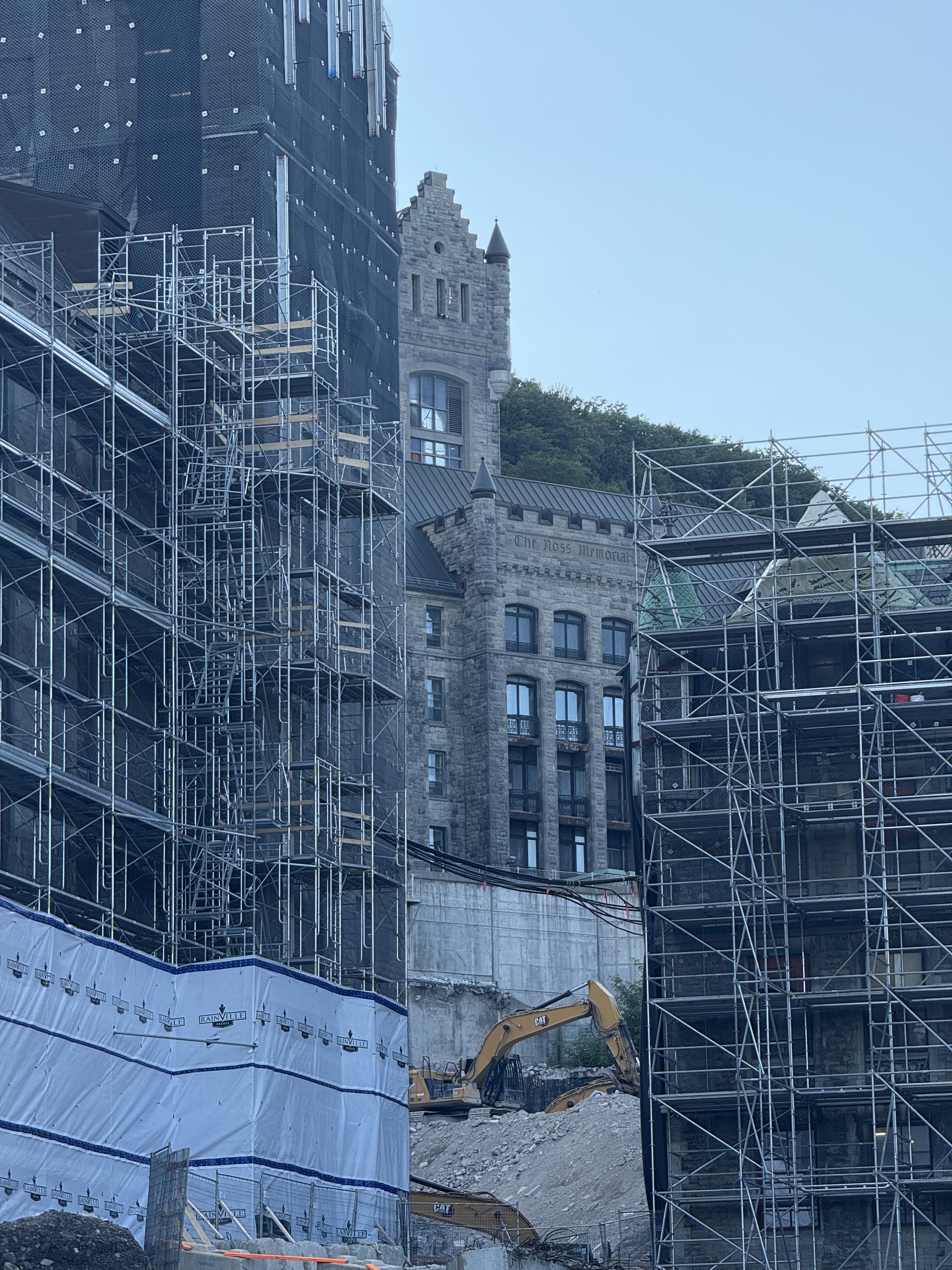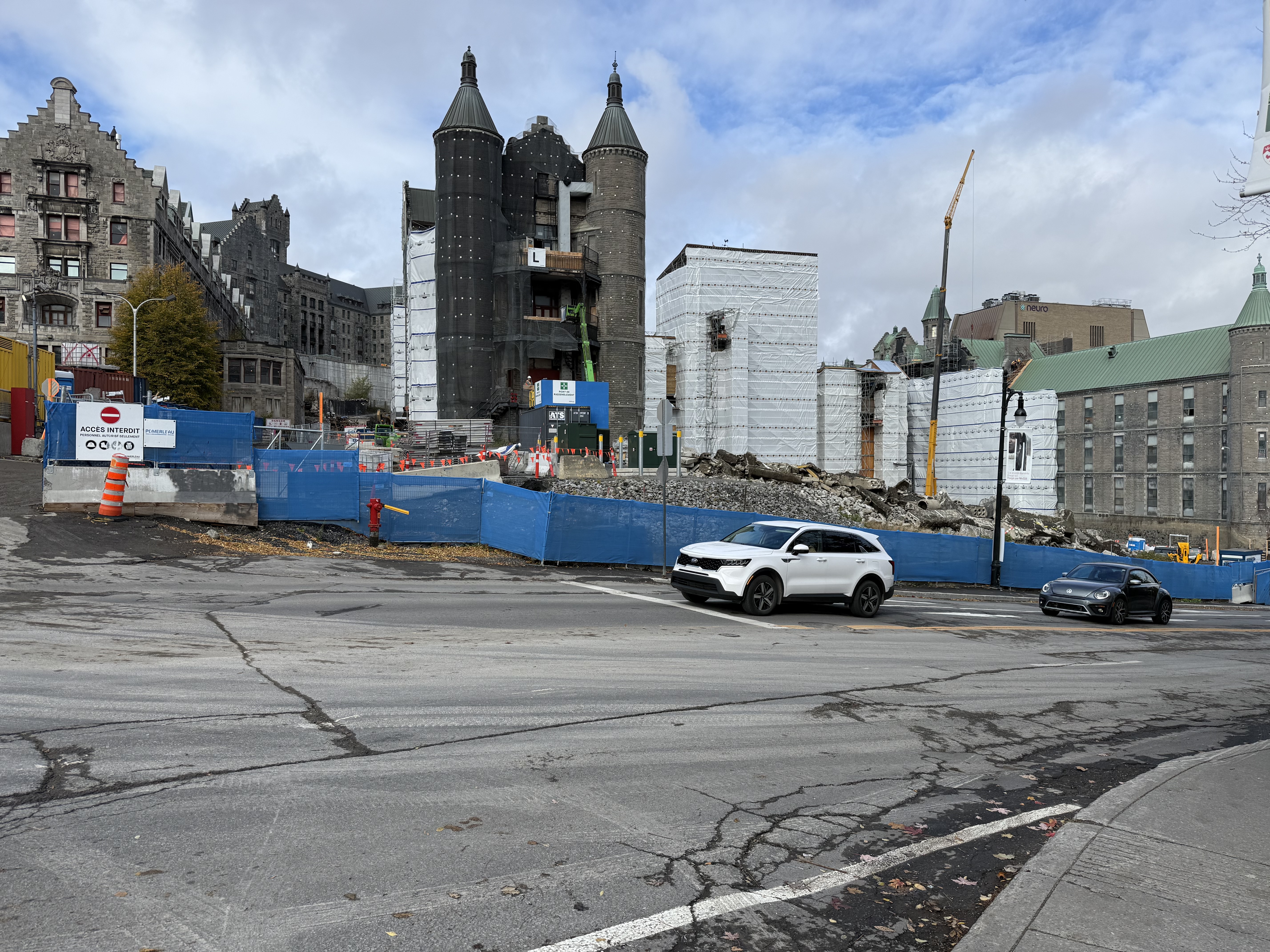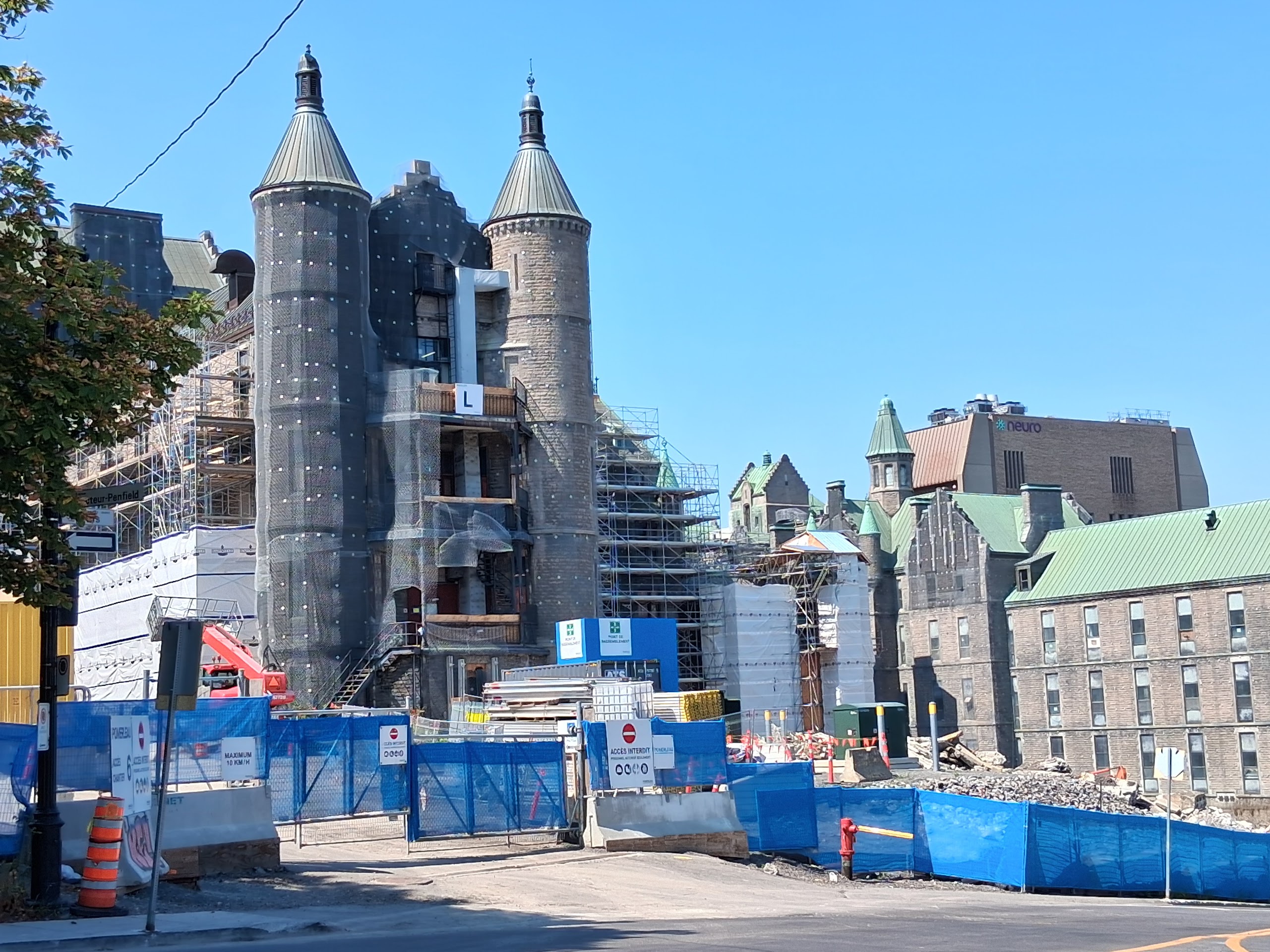 Il y a de la démolition sur le site de l’ancien hôpital Royal Victoria mais je ne vois pas très bien le site puisque je n’ai qu’une petite ouverture entre 2 édifices.