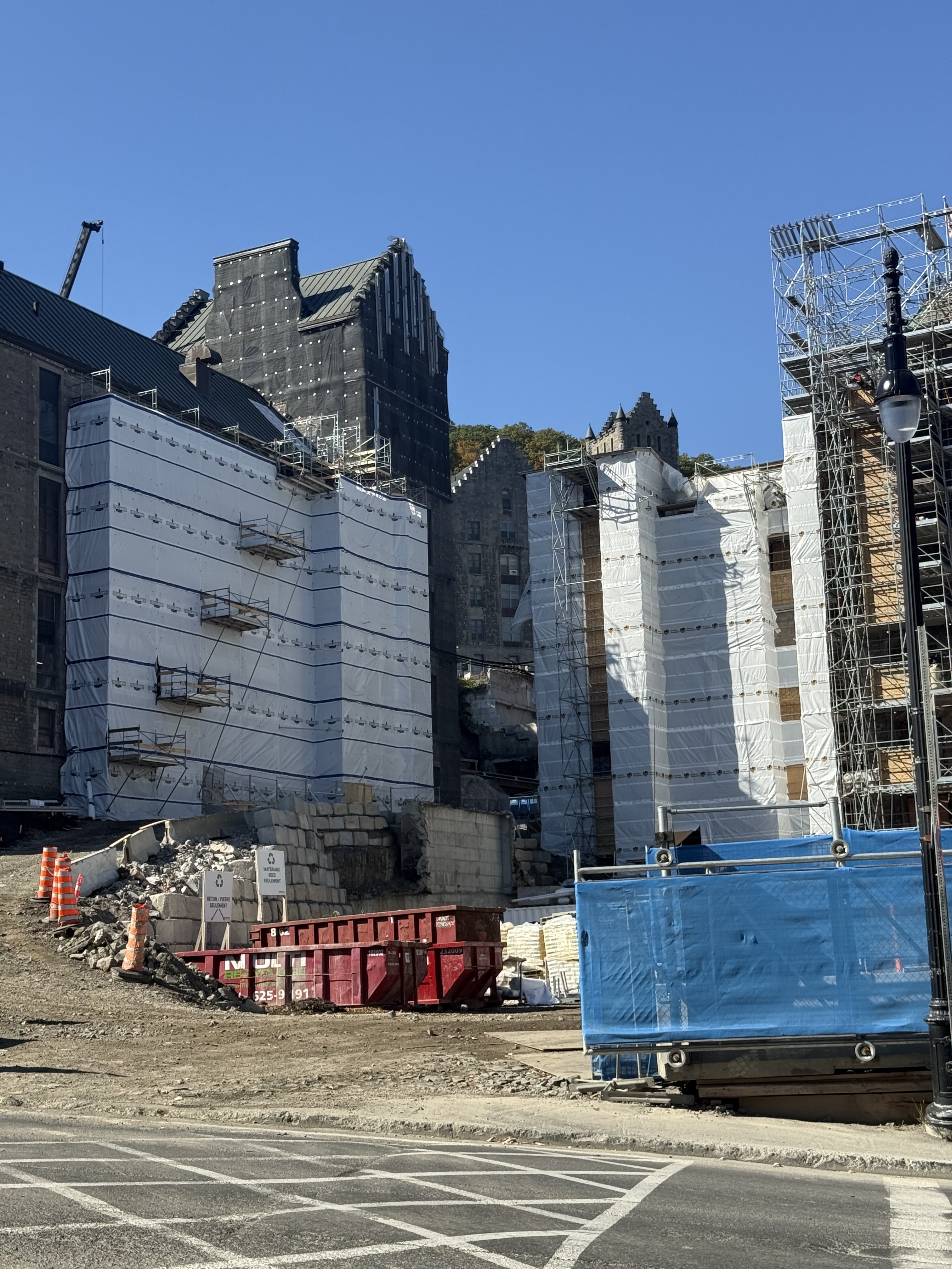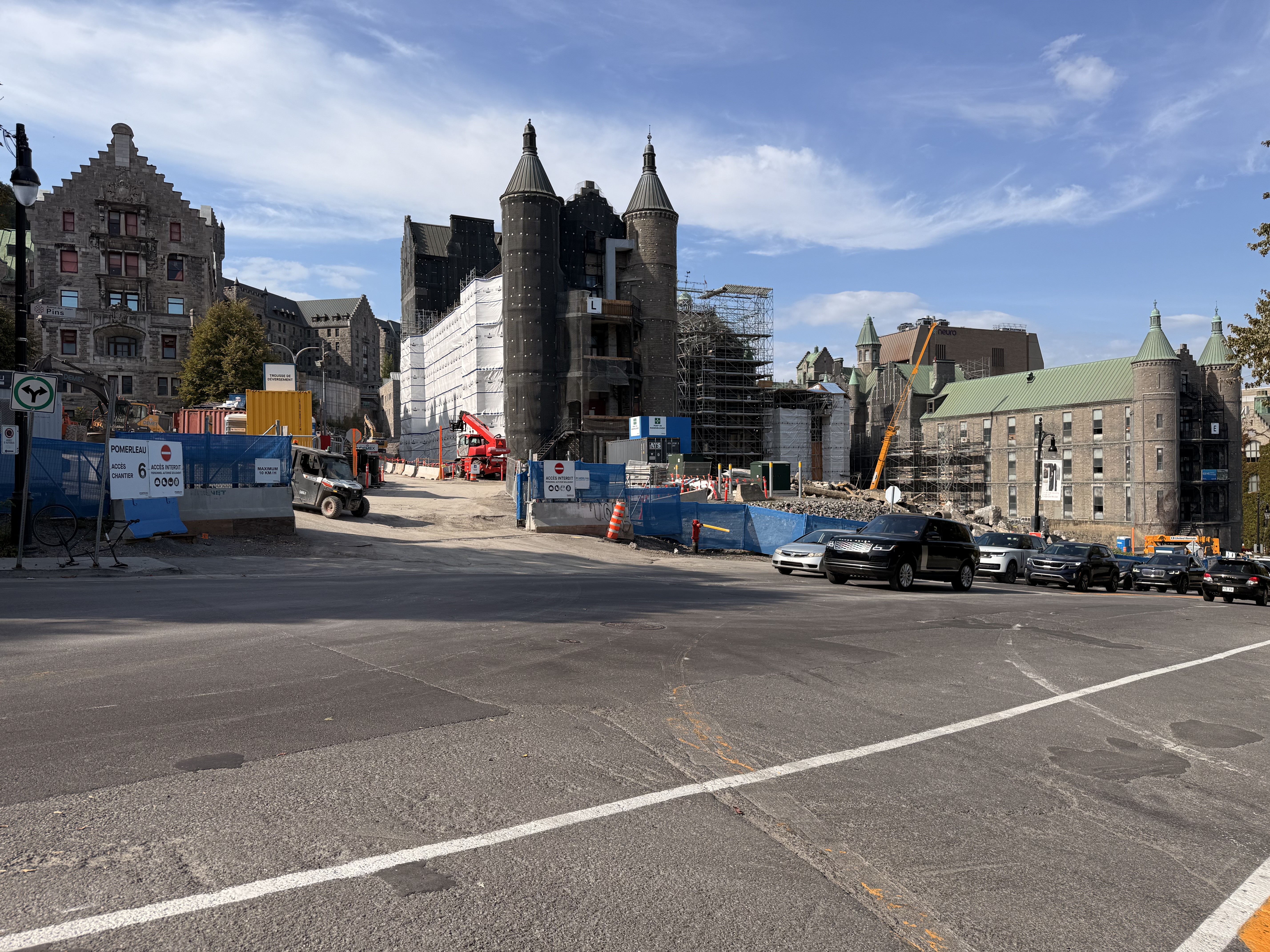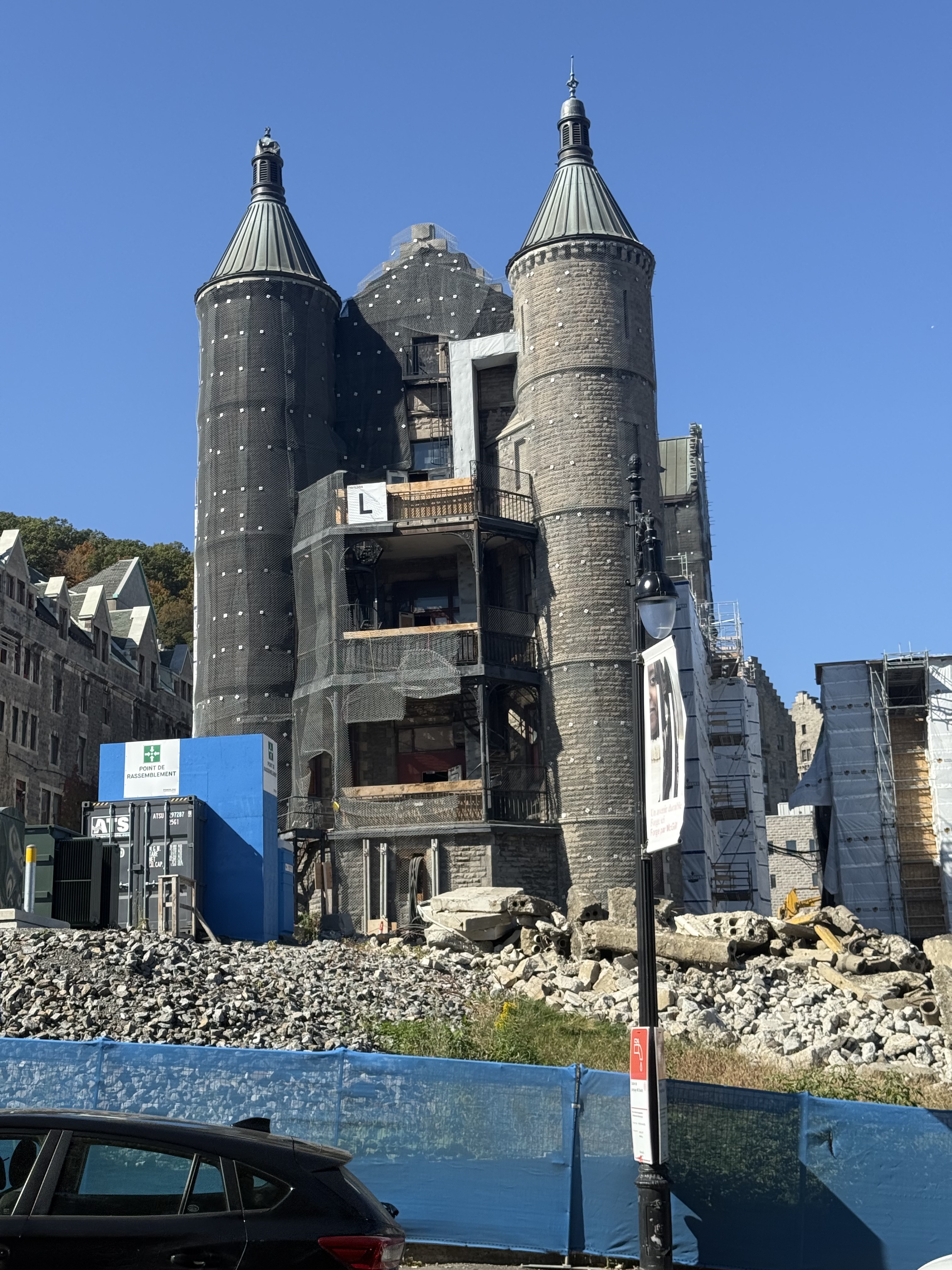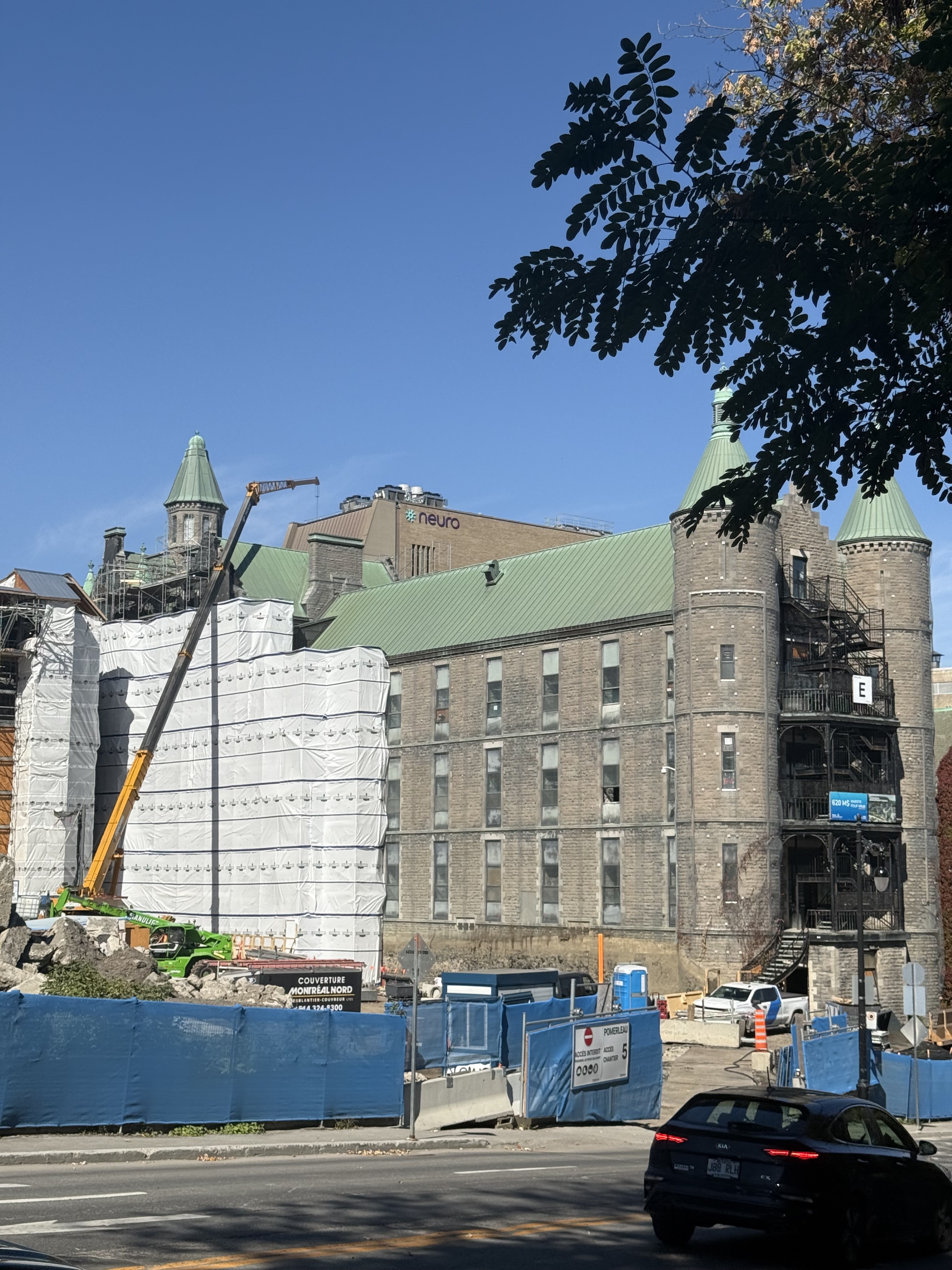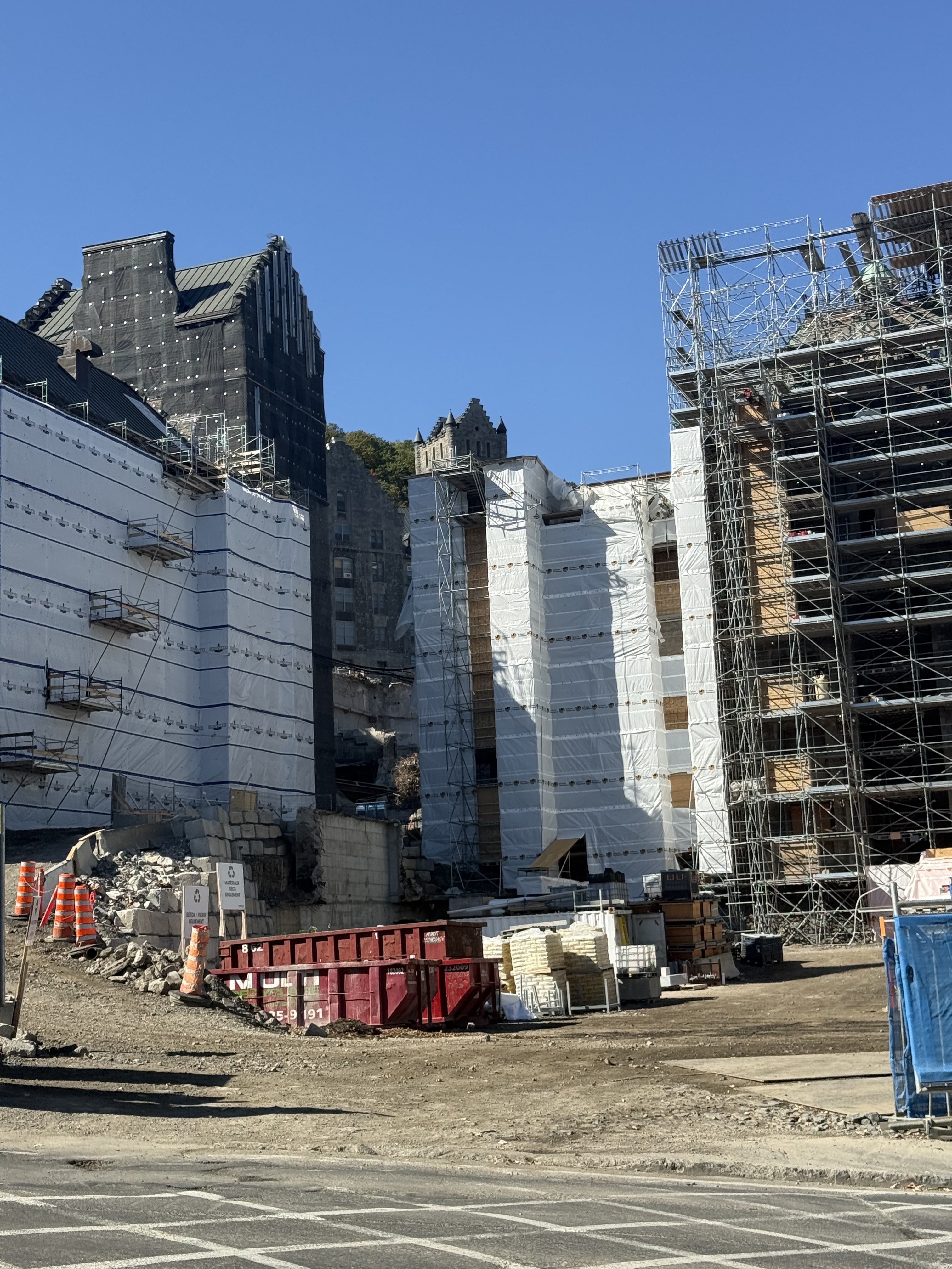 Il y a de la démolition sur le site de l’ancien hôpital Royal Victoria mais je ne vois pas très bien le site puisque je n’ai qu’une petite ouverture entre 2 édifices.
