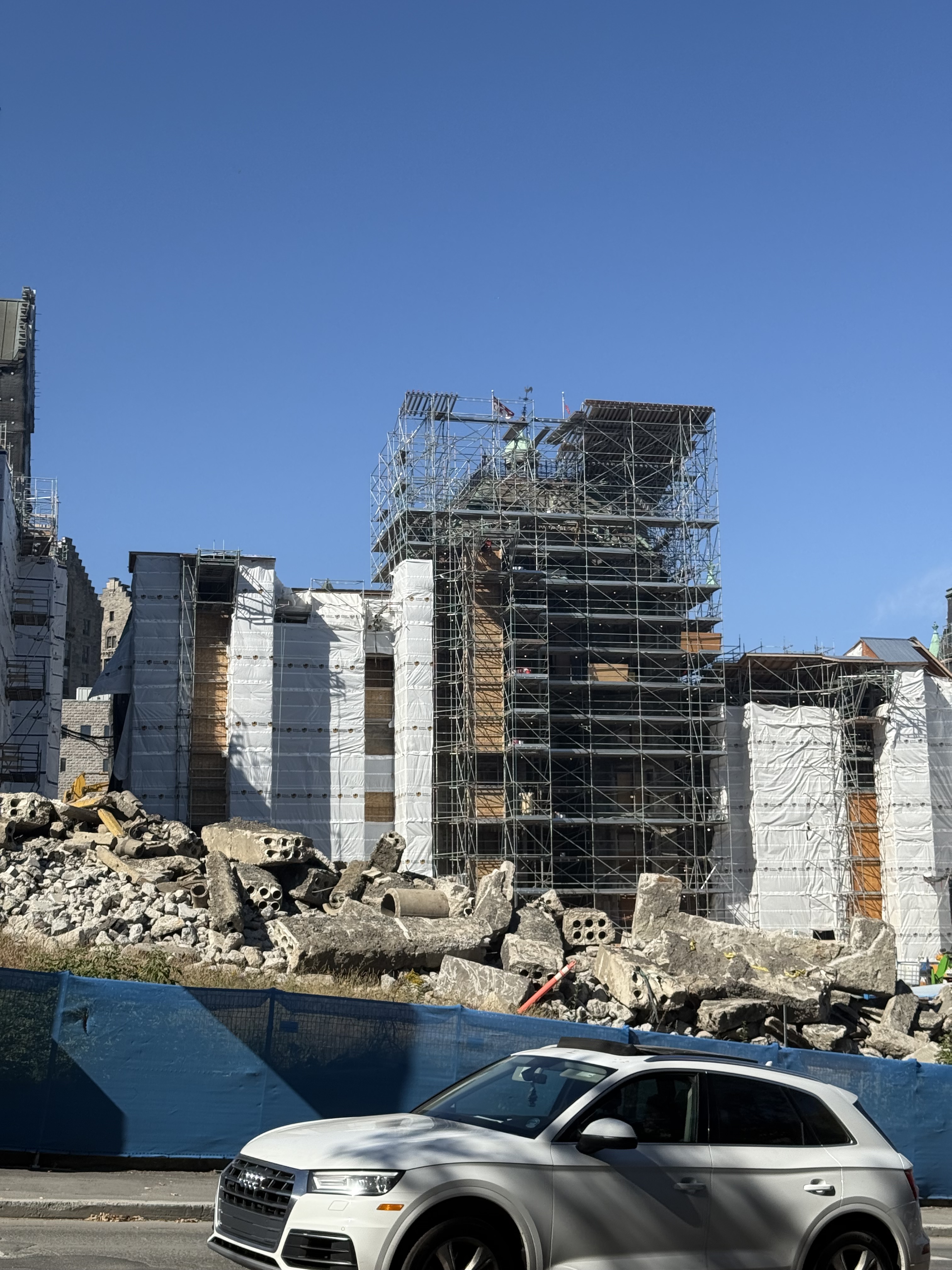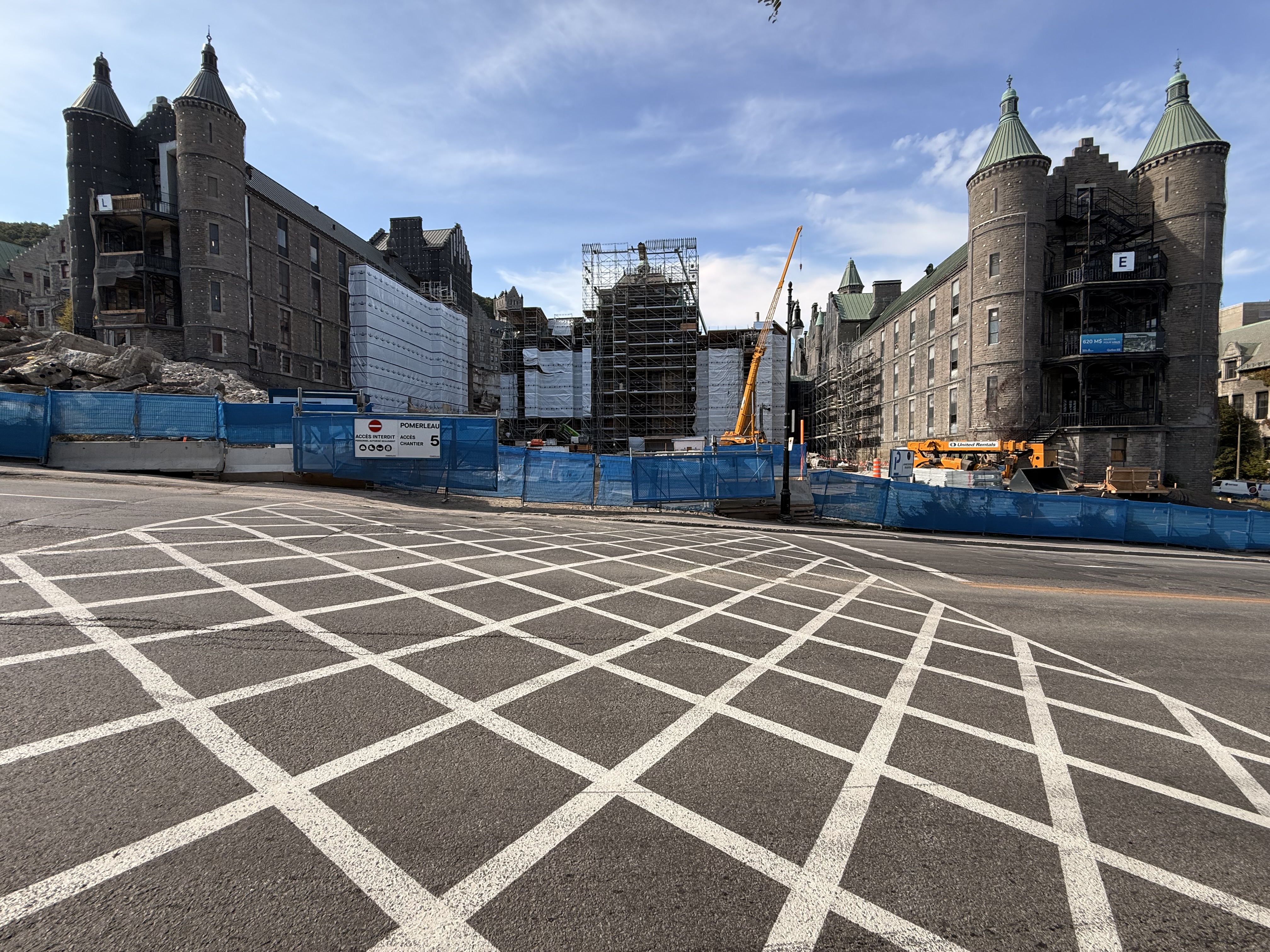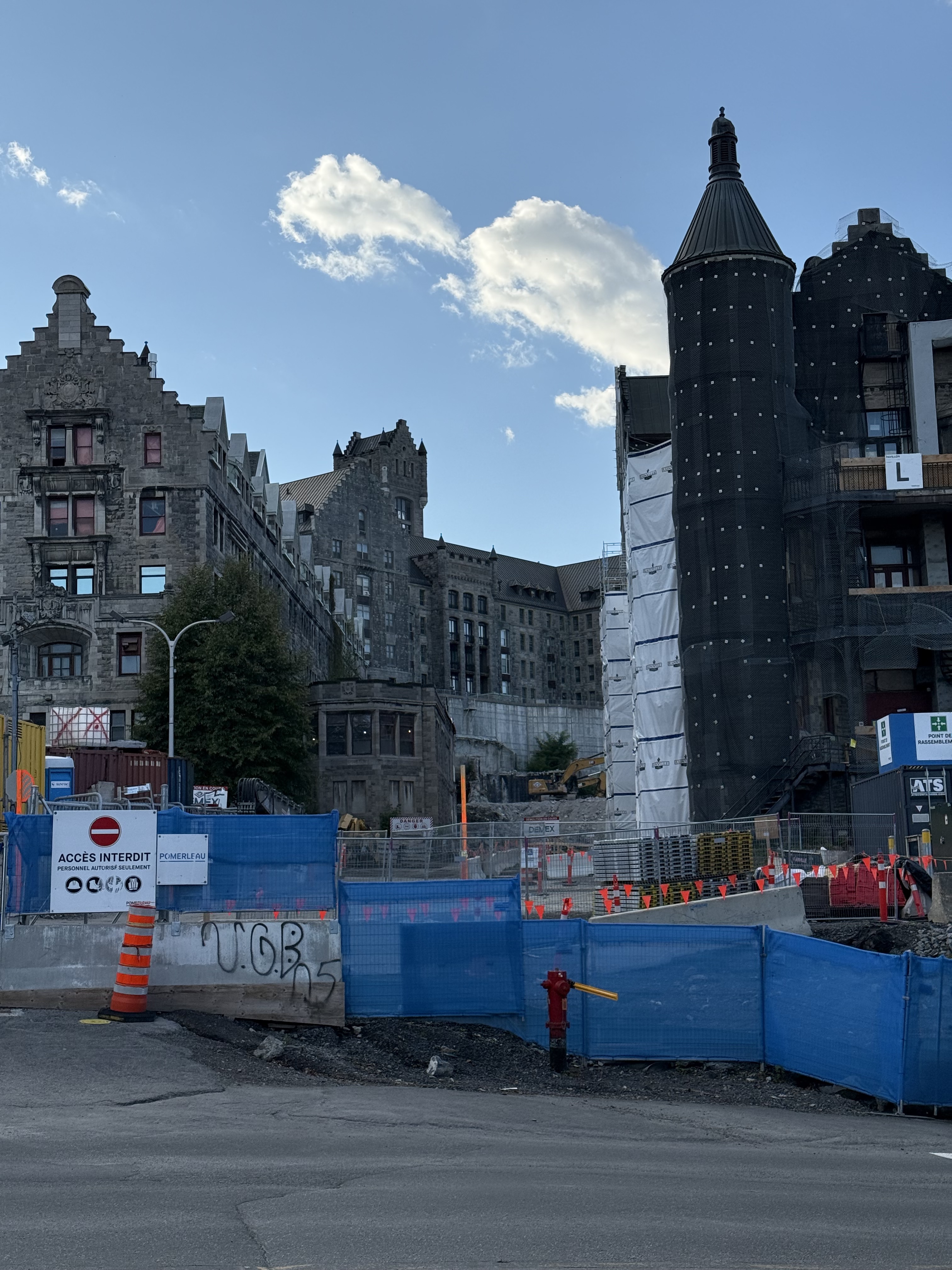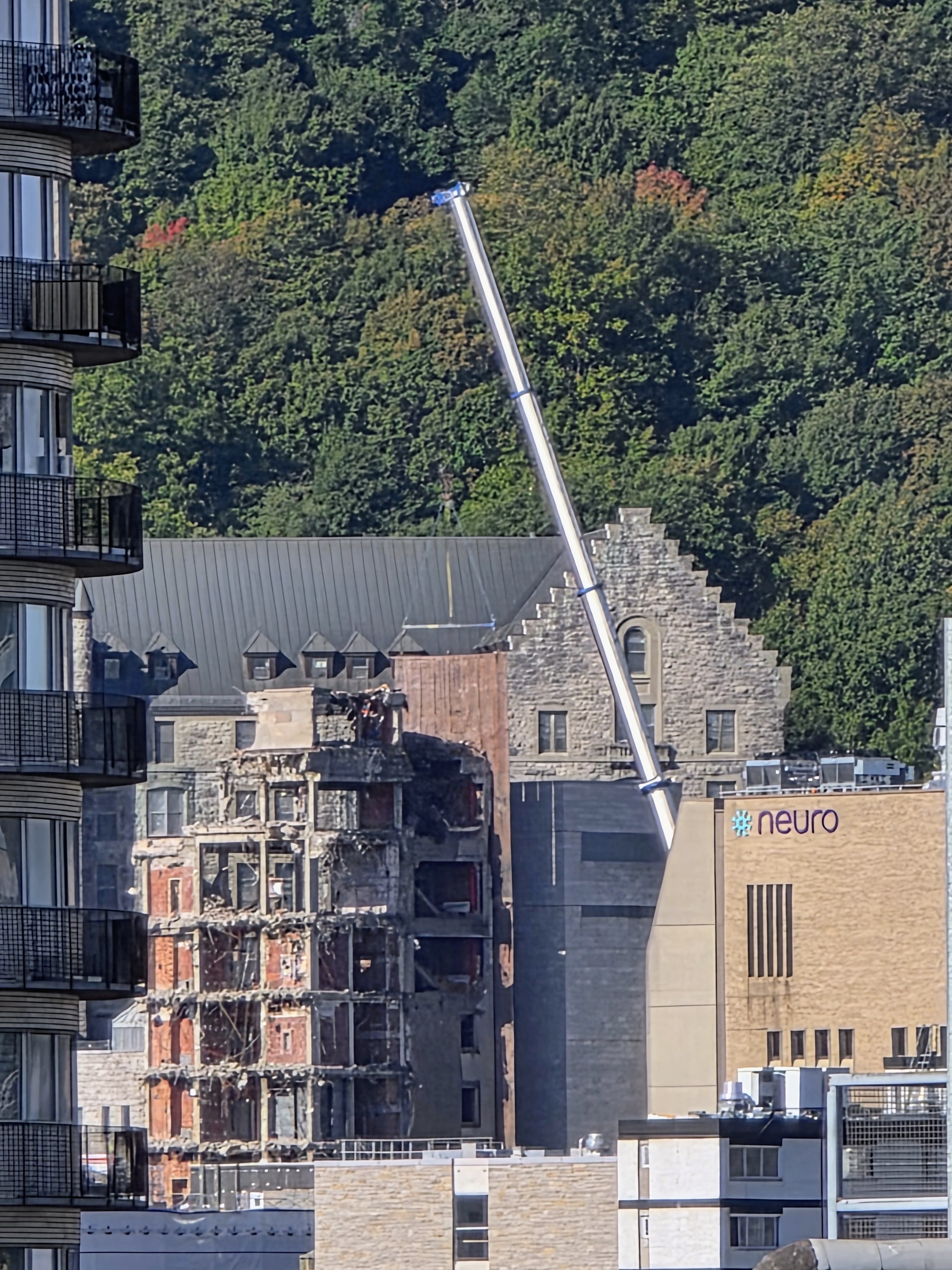 Il y a de la démolition sur le site de l’ancien hôpital Royal Victoria mais je ne vois pas très bien le site puisque je n’ai qu’une petite ouverture entre 2 édifices.