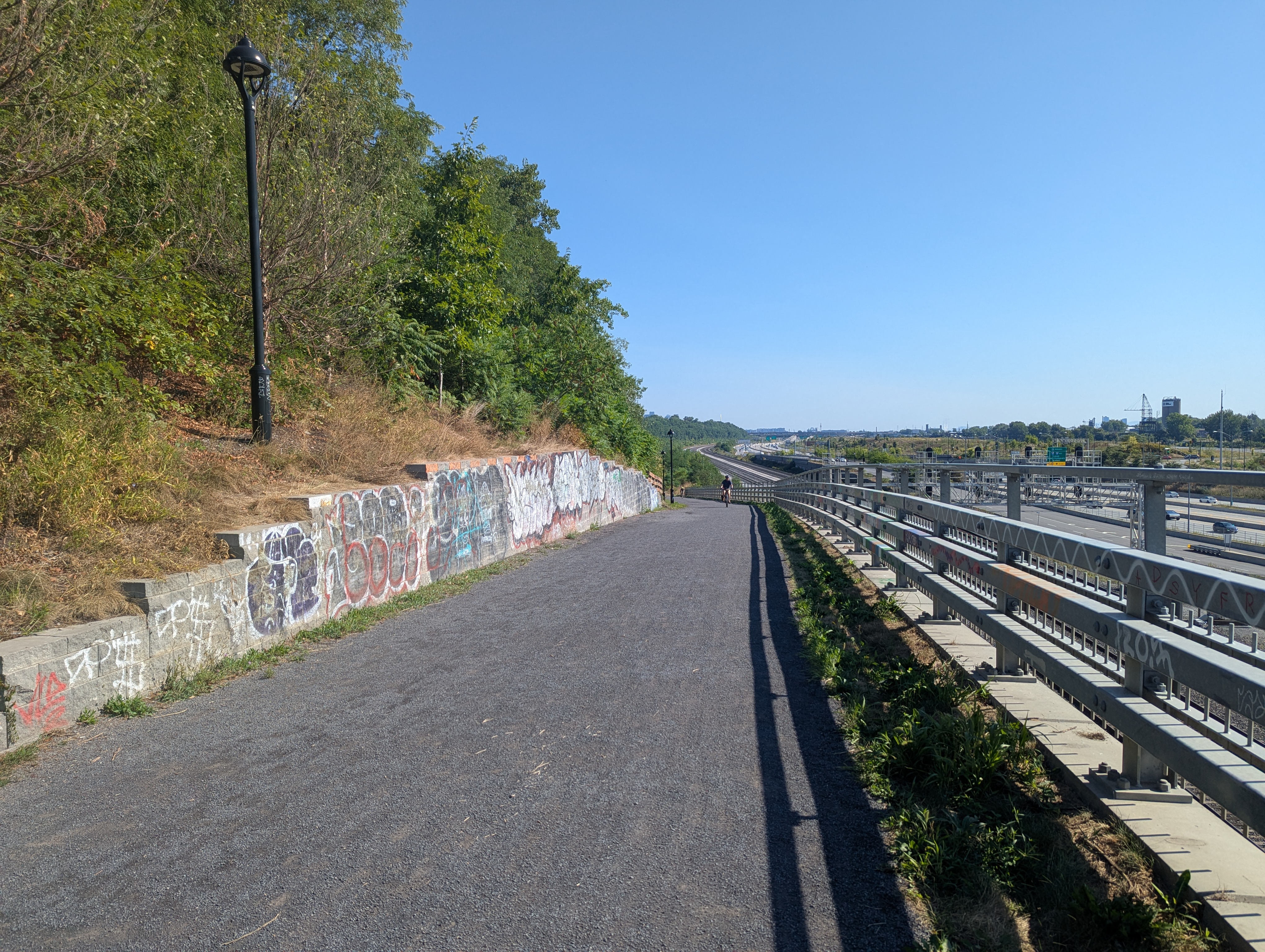 Unless we massively invest in north-south pathways to connect the neighbourhoods(which we can’t do in a reasonable amount of time apparently), who is seriously gonna leave from say le Plateau to go walk or bike in an empty park with immature trees and loud car noises?
