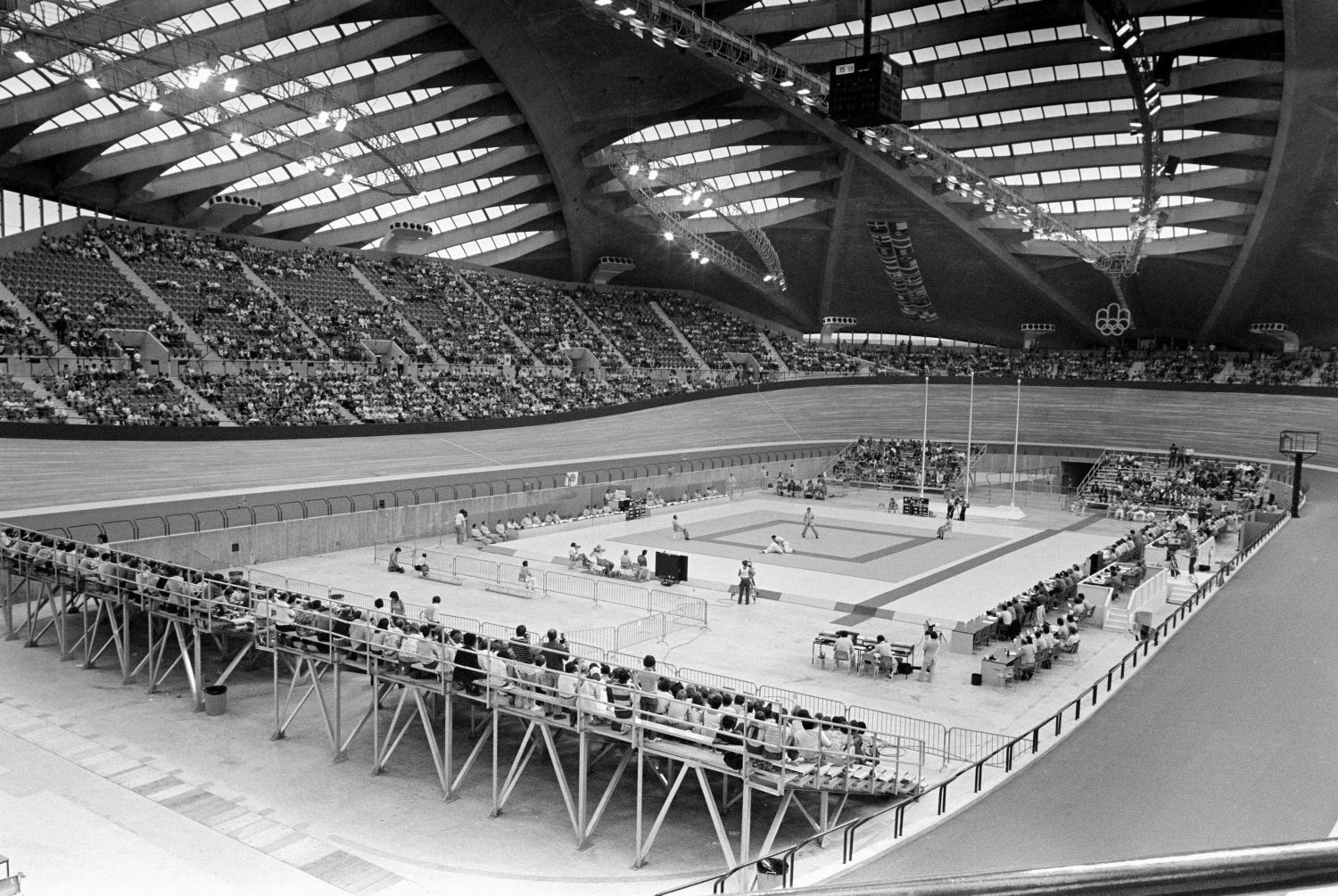 Par contre au niveau architectural et surtout de génie, le vélodrome a représenté un véritable défi technique. Avec les piscines, le stade et la tour, ces 4 bâtiments sculpturaux se complétaient merveilleusement dans un ensemble harmonieux aux lignes très avant-gardistes pour l’époque.