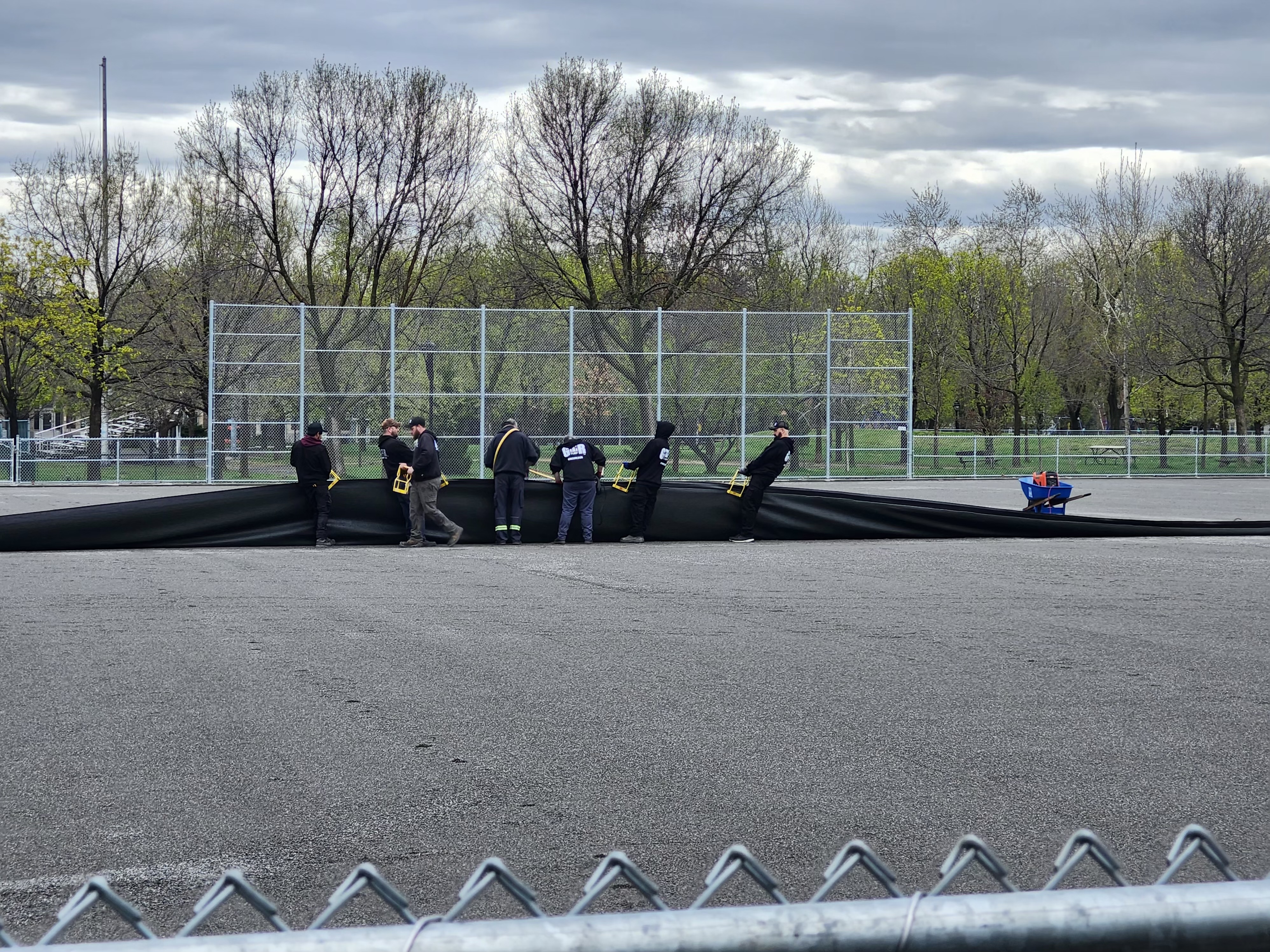Le remplacement d’un revêtement synthétique d’une telle envergure, jusqu’à près de 16 650 pieds carrés, nécessite du temps ainsi que les conditions météorologiques gagnantes. La météo printanière est favorable au succès de la pose du revêtement grâce à ses températures tempérées. Grâce à cette intervention, la surface de l’aire de jeu se refera une beauté pour que vous la retrouviez telle qu’elle était à ses débuts.