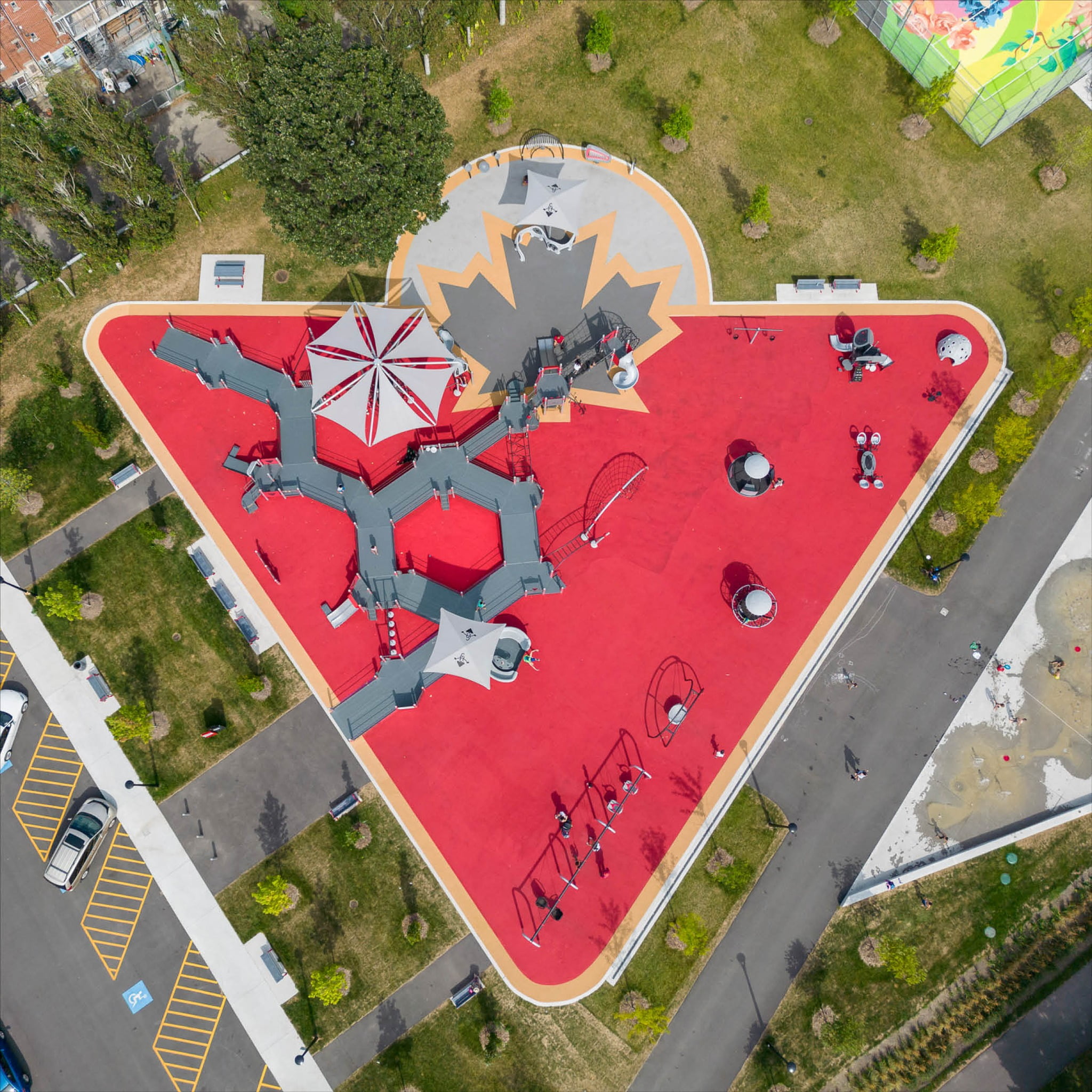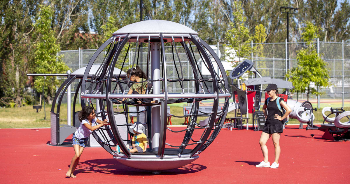 Le revêtement rouge de l’aire de jeux commandité par Canadian Tire inauguré en 2022 doit déjà être réparé…